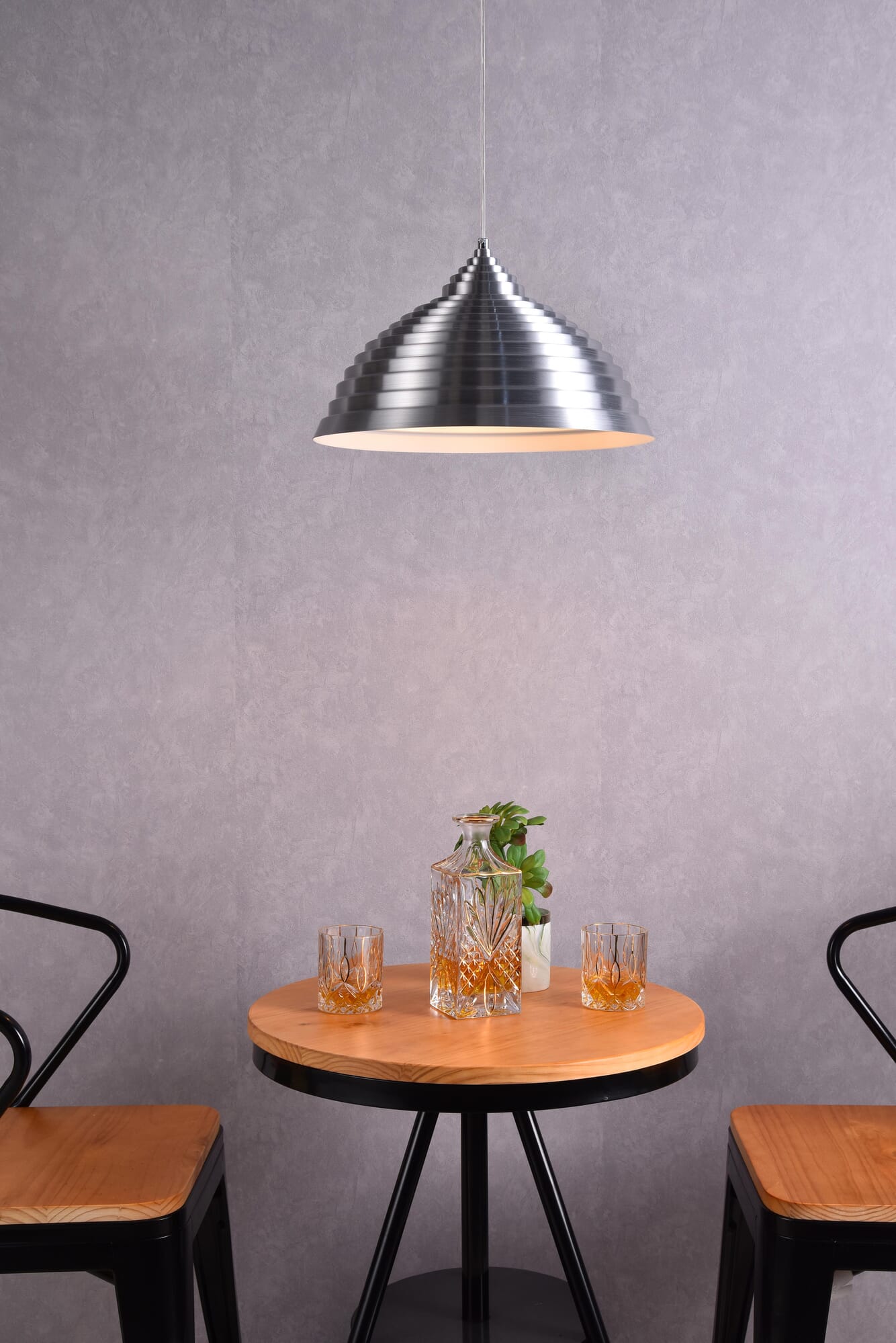 Dimensions Chain/Rod Length: 60" Length: 15.5" Width: 15.5" Height: 9.5" Maximum Height: 69.5" Wire Length: 60" Specifications Product Type: Pendants Hanging Device: Cord Voltage: 110V - 125V Dimmable: Yes Socket Type: E26 Number of Lights: 1 Wattage/Bulb: 40W Max/Nominal Watt: 40W Wire Included: Yes ETL: ETL Harware Material: Aluminum Fixture Material: Aluminum Product Shape: Dome Assembly Required: No Distressed Finish: no Hardware Finish: Burnished Nickel Bulb Included: No UL & ULC Standard: No Dry/Wet/Damp: Dry Weight: 1.7 Product Warranty: 1 year limited Shipment type: Small Parcel