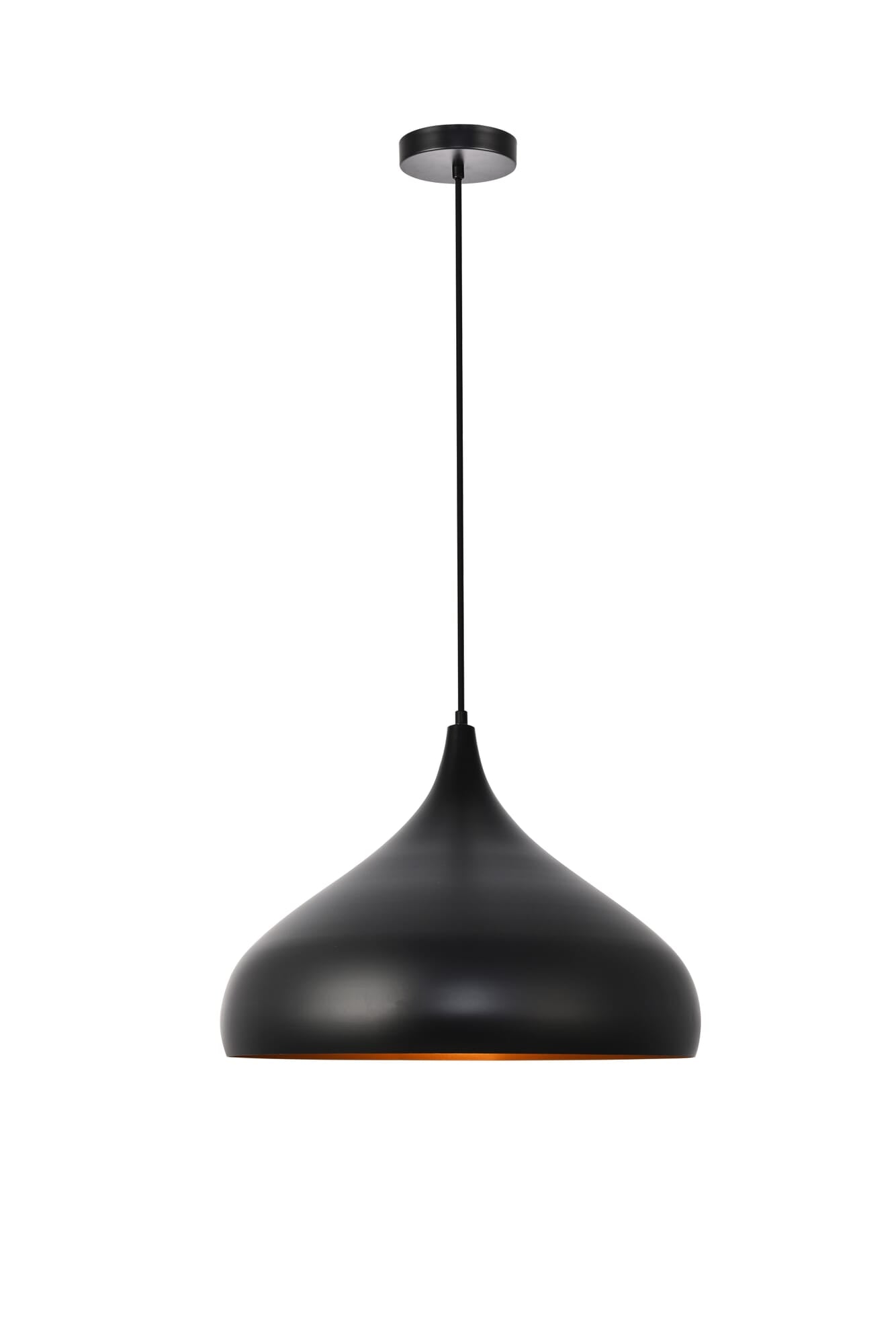 Dimensions Chain/Rod Length: 60" Length: 16.5" Width: 16.5" Height: 12" Maximum Height: 73" Wire Length: 59.1" Specifications Product Type: Pendants Hanging Device: Cord Voltage: 110V - 130 Dimmable: Yes Socket Type: E26 Number of Lights: 1 Wattage/Bulb: 40 Max/Nominal Watt: 40 Wire Included: Yes Bulb Shape: Medium; Bulb Not Provided Harware Material: Aluminum Fixture Material: Aluminum Product Shape: Pendants Assembly Required: No Hardware Finish: Black Bulb Included: No UL & ULC Standard: UL,ULC Dry/Wet/Damp: Dry Rated Weight: 2.1 Product Warranty: 1 year limited Shipment type: Small Parcel