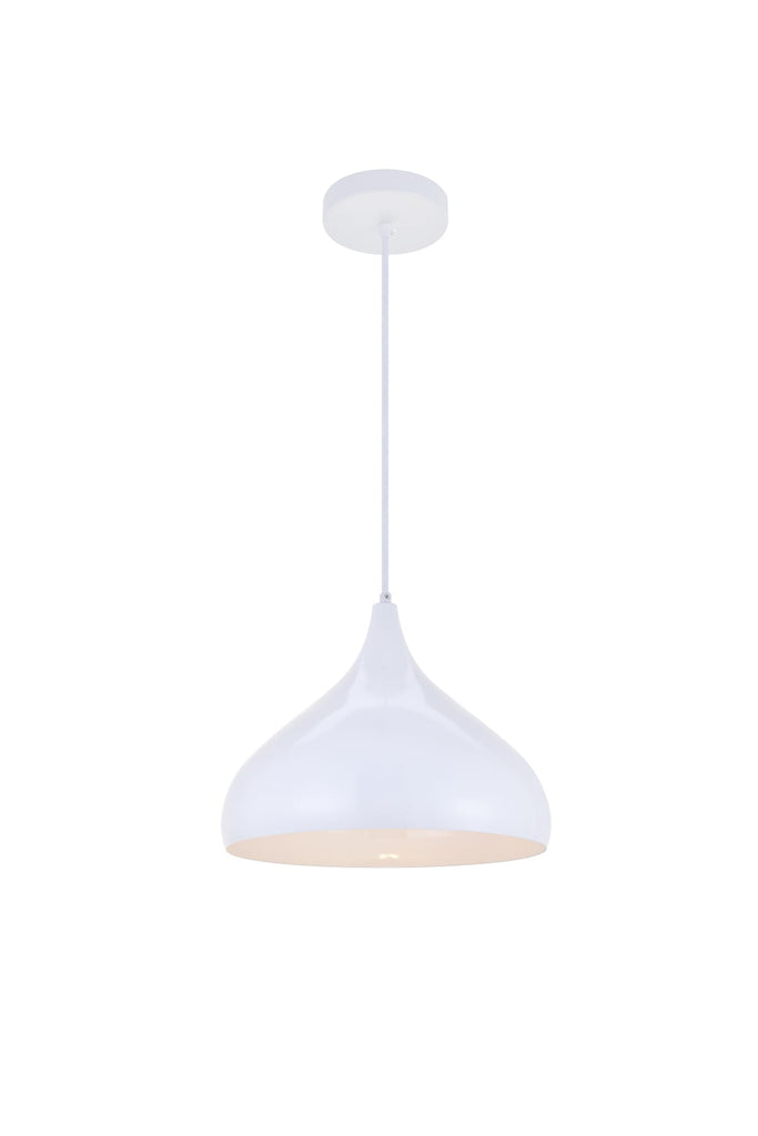 Dimensions Chain/Rod Length: 60" Length: 12.5" Width: 12.5" Height: 10" Maximum Height: 70" Wire Length: 60" Specifications Product Type: Pendants Hanging Device: Cord Voltage: 110V - 125V Dimmable: Yes Socket Type: E26 Number of Lights: 1 Wattage/Bulb: 40W Max/Nominal Watt: 40W Wire Included: Yes ETL: ETL Harware Material: Aluminum Fixture Material: Aluminum Product Shape: Dome Assembly Required: No Distressed Finish: no Hardware Finish: White Bulb Included: No UL & ULC Standard: No Dry/Wet/Damp: Dry Weight: 1.6 Product Warranty: 1 year limited Shipment type: Small Parcel