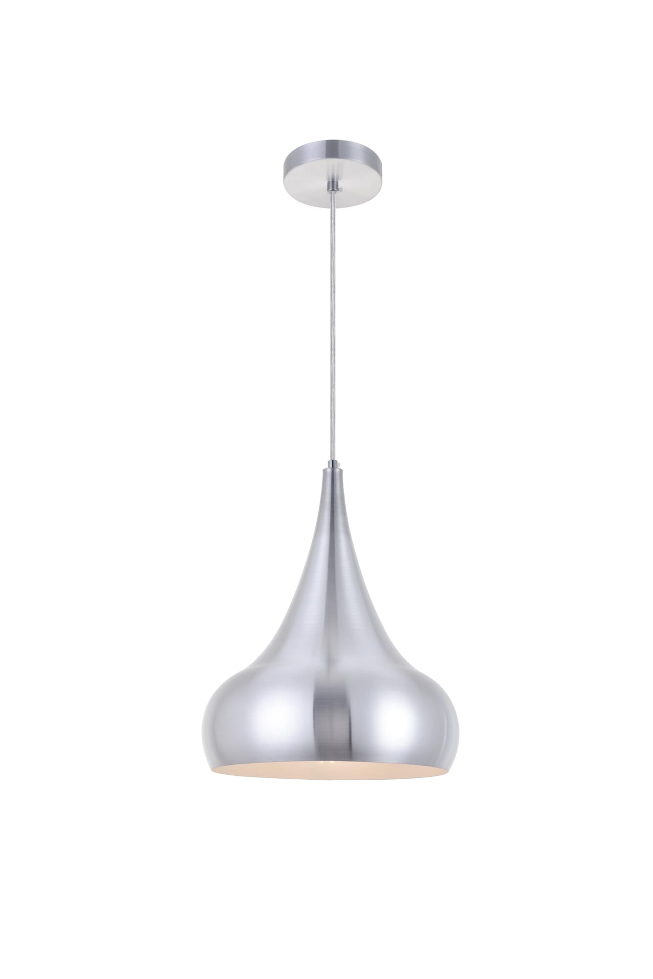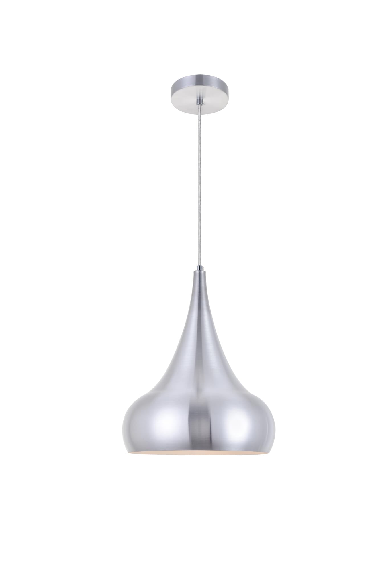 Dimensions Chain/Rod Length: 60" Length: 11.5" Width: 11.5" Height: 15" Maximum Height: 75" Wire Length: 60" Specifications Product Type: Pendants Hanging Device: Cord Voltage: 110V - 125V Dimmable: Yes Socket Type: E26 Number of Lights: 1 Wattage/Bulb: 40W Max/Nominal Watt: 40W Wire Included: Yes ETL: ETL Harware Material: Aluminum Fixture Material: Aluminum Product Shape: Tear Drop Assembly Required: No Distressed Finish: no Hardware Finish: Burnished Nickel Bulb Included: No UL & ULC Standard: No Dry/Wet/Damp: Dry Weight: 1.6 Product Warranty: 1 year limited Shipment type: Small Parcel