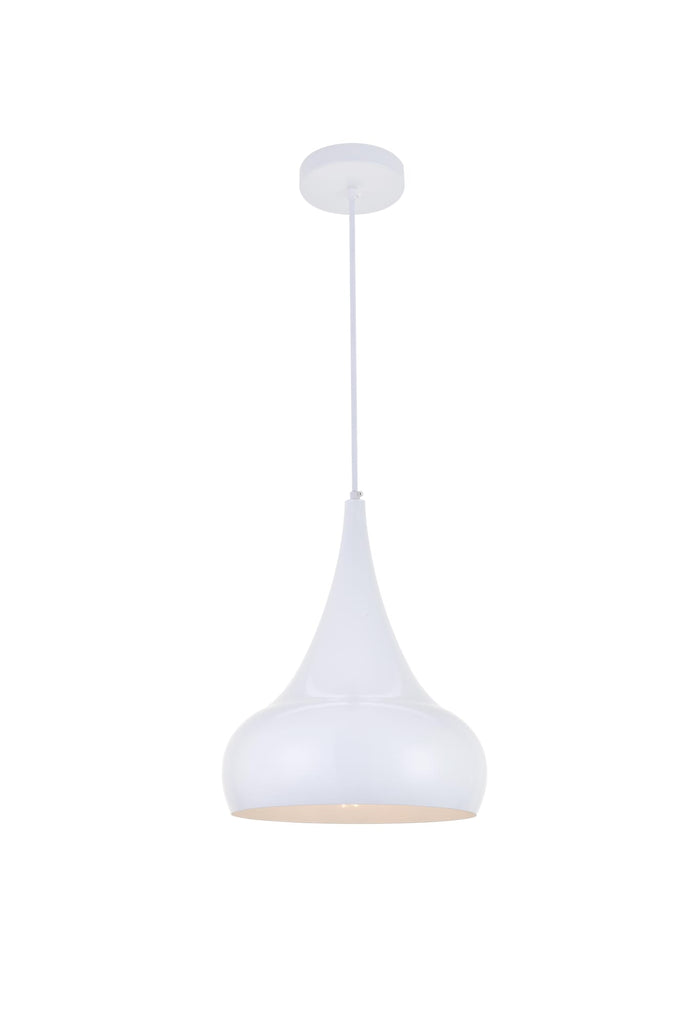 Dimensions Chain/Rod Length: 60" Length: 11.5" Width: 11.5" Height: 15" Maximum Height: 75" Wire Length: 60" Specifications Product Type: Pendants Hanging Device: Cord Voltage: 110V - 125V Dimmable: Yes Socket Type: E26 Number of Lights: 1 Wattage/Bulb: 40W Max/Nominal Watt: 40W Wire Included: Yes ETL: ETL Harware Material: Aluminum Fixture Material: Aluminum Product Shape: Tear Drop Assembly Required: No Distressed Finish: no Hardware Finish: White Bulb Included: No UL & ULC Standard: No Dry/Wet/Damp: Dry Weight: 1.6 Product Warranty: 1 year limited Shipment type: Small Parcel