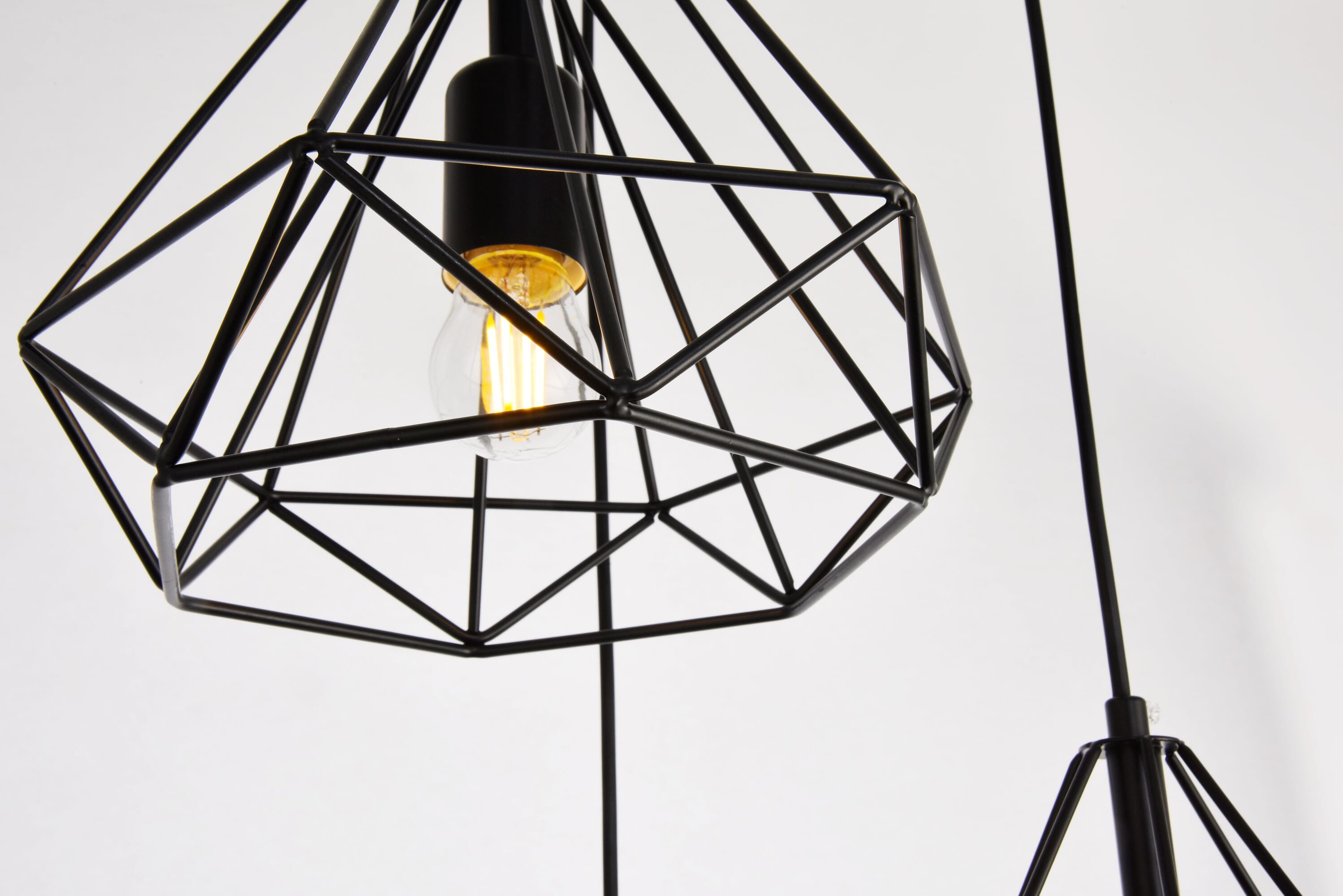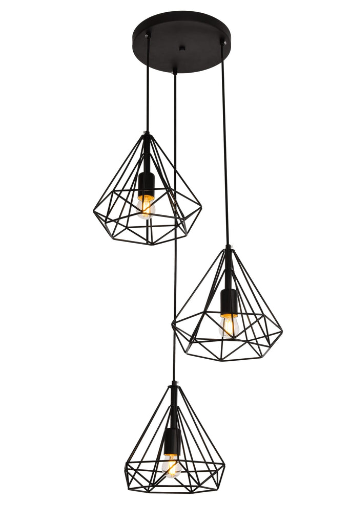 Dimensions Chain/Rod Length: 60" Length: 18.1" Width: 18.1" Height: 24.3" Maximum Height: 70" Wire Length: 60" Specifications Product Type: Pendants Hanging Device: Cord Voltage: 110V - 125V Dimmable: Yes Socket Type: E26 Number of Lights: 3 Wattage/Bulb: 40 Max/Nominal Watt: 120 Wire Included: Yes Bulb Shape: Medium; Bulb Not Provided Harware Material: Iron and Aluminum Fixture Material: Iron and Aluminum Product Shape: Pendants Assembly Required: No Hardware Finish: Black Bulb Included: No UL & ULC Standard: UL,ULC Dry/Wet/Damp: Dry Rated Weight: 4.8 Product Warranty: 1 year limited Shipment type: Small Parcel