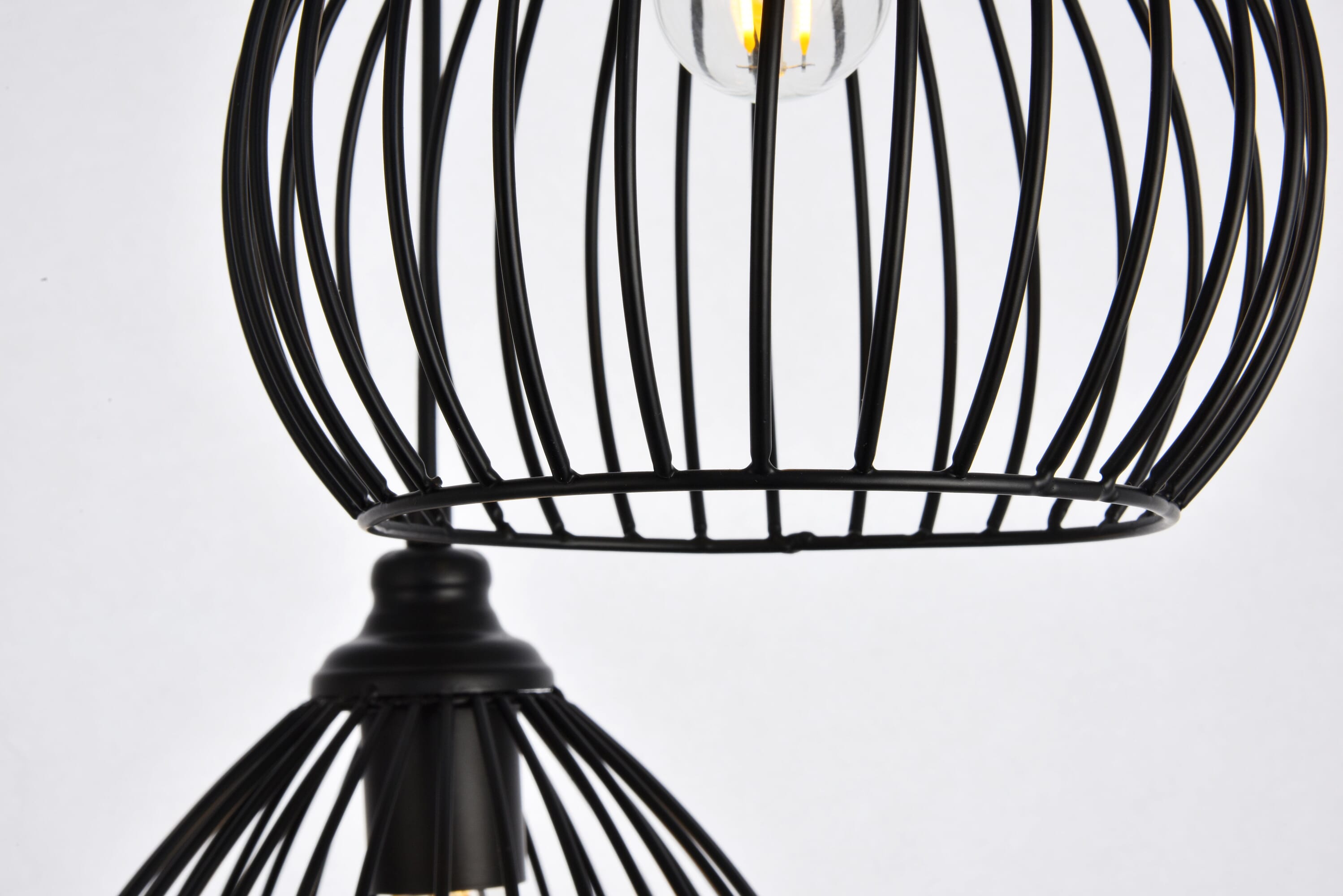 Dimensions Chain/Rod Length: 60" Length: 16.0" Width: 16.0" Height: 23.1" Maximum Height: 70" Wire Length: 60" Specifications Product Type: Pendants Hanging Device: Cord Voltage: 110V - 125V Dimmable: Yes Socket Type: E26 Number of Lights: 3 Wattage/Bulb: 40 Max/Nominal Watt: 120 Wire Included: Yes Bulb Shape: Medium; Bulb Not Provided Harware Material: Iron and Aluminum Fixture Material: Iron and Aluminum Product Shape: Pendants Assembly Required: No Hardware Finish: Black Bulb Included: No UL & ULC Standard: UL,ULC Dry/Wet/Damp: Dry Rated Weight: 4.5 Product Warranty: 1 year limited Shipment type: Small Parcel