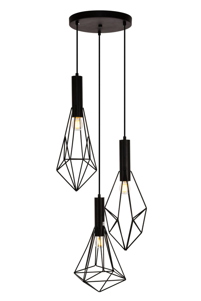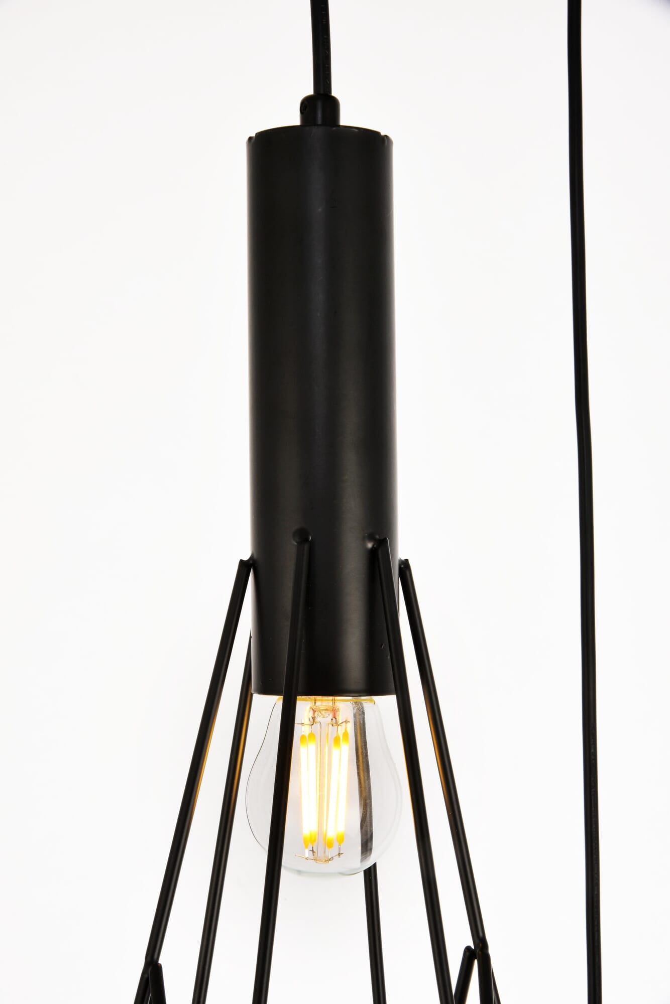 Dimensions Chain/Rod Length: 60" Length: 16.0" Width: 16.0" Height: 30.4" Maximum Height: 90" Wire Length: 60" Specifications Product Type: Pendants Hanging Device: Cord Voltage: 110V - 125V Dimmable: Yes Socket Type: E26 Number of Lights: 3 Wattage/Bulb: 40 Max/Nominal Watt: 120 Wire Included: Yes Bulb Shape: Medium; Bulb Not Provided Harware Material: Iron and Aluminum Fixture Material: Iron and Aluminum Product Shape: Pendants Assembly Required: No Hardware Finish: Black Bulb Included: No UL & ULC Standard: UL,ULC Dry/Wet/Damp: Dry Rated Weight: 4.5 Product Warranty: 1 year limited Shipment type: Small Parcel