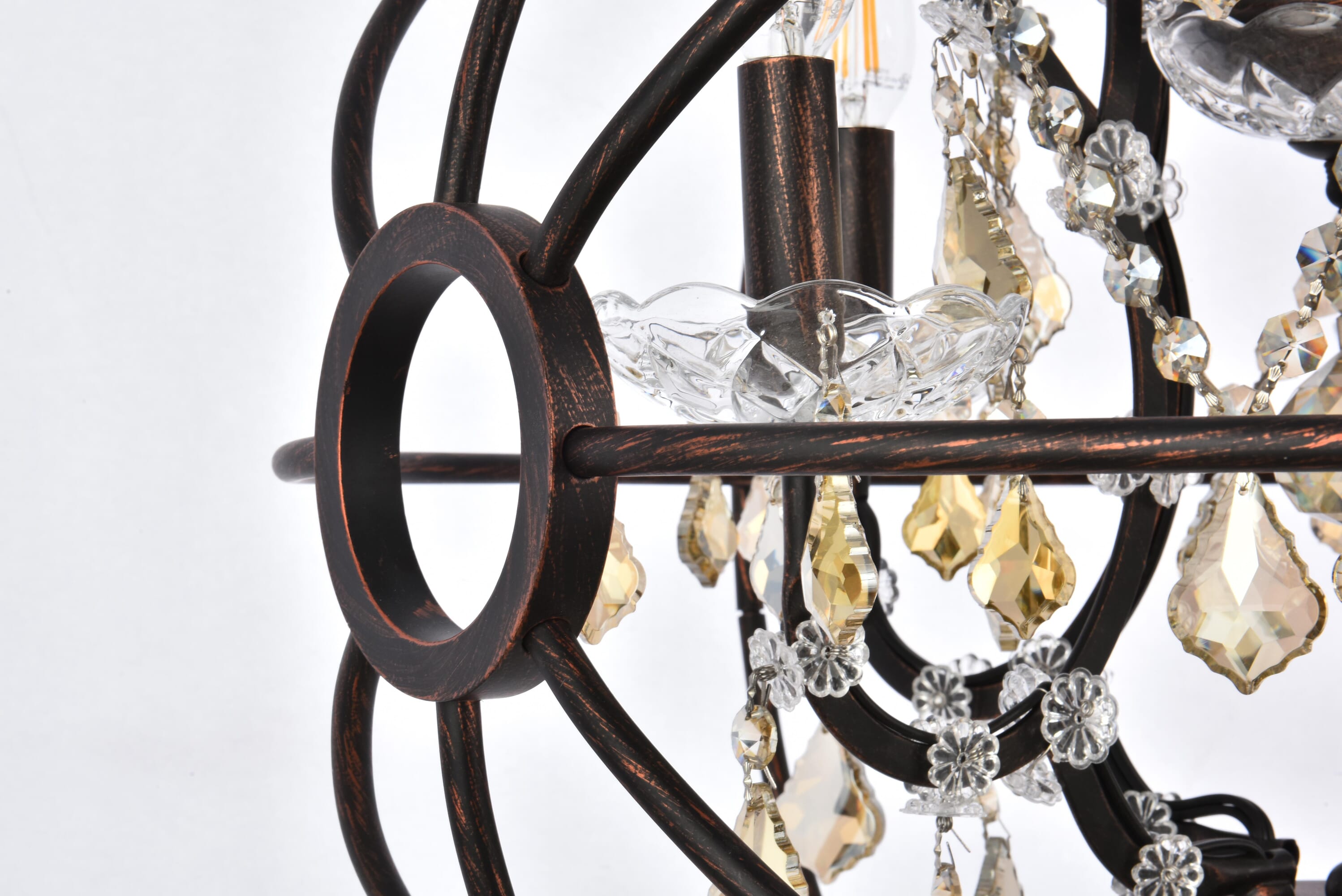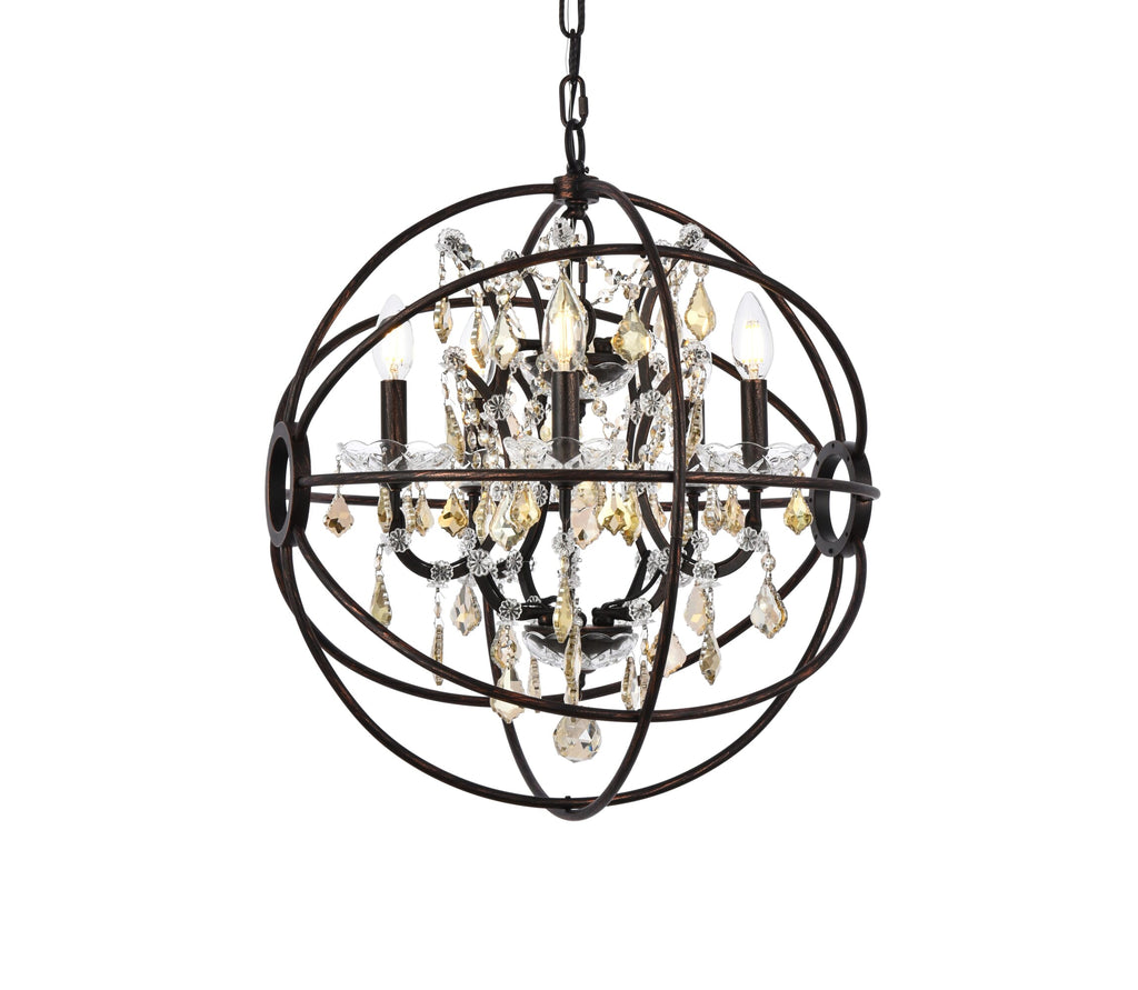 Dimensions Chain/Rod Length: 60" Length: 20" Width: 20" Height: 23" Maximum Height: 80" Wire Length: 141.73" Specifications Product Type: Pendants Hanging Device: Chain Voltage: 110V - 125V Dimmable: Yes Socket Type: E12 Number of Lights: 5 Wattage/Bulb: 60 Max/Nominal Watt: 300 Crystal/Glass Color: Golden Teak (Smoky) Wire Included: Yes Bulb Shape: B10 Harware Material: Brass Fixture Material: Steel and Glass Product Shape: Pendants Assembly Required: YES Hardware Finish: Dark Bronze Bulb Included: No UL & ULC Standard: UL,ULC Weight: 20.9 Product Warranty: 1 year limited Shipment type: Small Parcel