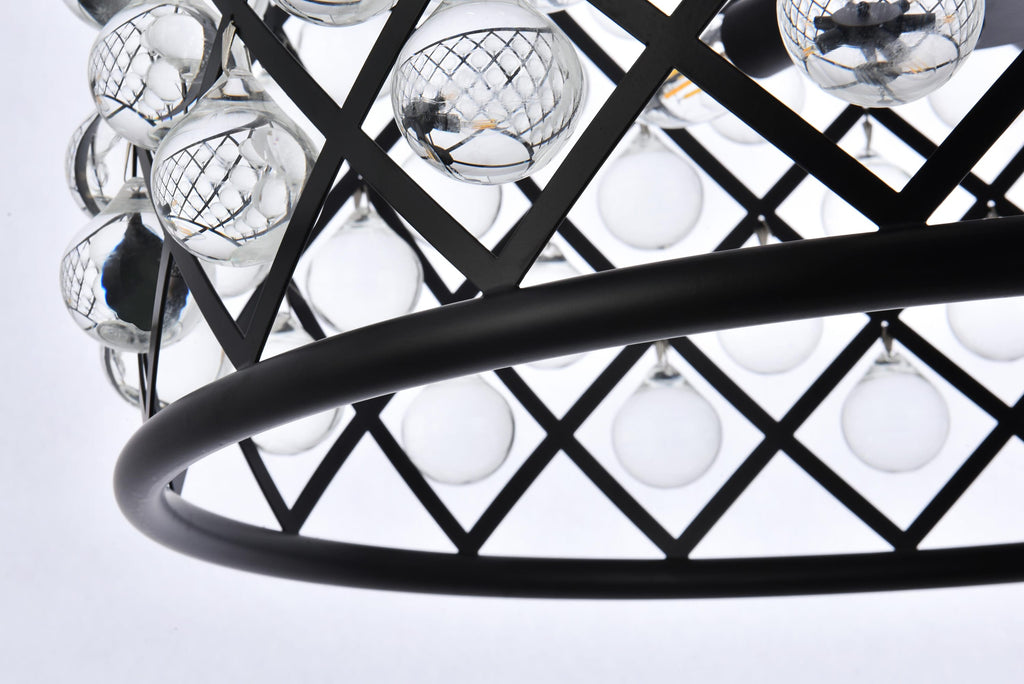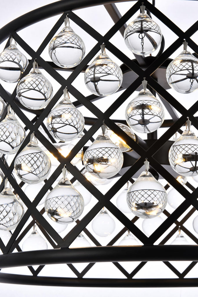 Dimensions Chain/Rod Length: 60" Length: 20" Width: 20" Height: 13" Maximum Height: 73" Wire Length: 141.73" Specifications Product Type: Pendants Hanging Device: Chain Voltage: 110V - 125V Dimmable: Yes Socket Type: E12 Number of Lights: 6 Wattage/Bulb: 60 Max/Nominal Watt: 360 Crystal/Glass Color: clear Wire Included: Yes Bulb Shape: B10 Harware Material: Steel Fixture Material: Steel Product Shape: Pendants Assembly Required: YES Hardware Finish: Matte Black Bulb Included: No UL & ULC Standard: UL,ULC Weight: 45 Product Warranty: 1 year limited Shipment type: Small Parcel