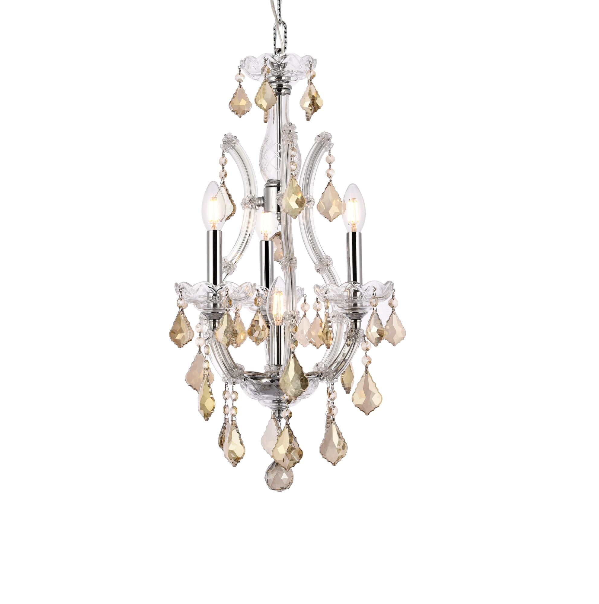 Dimensions Chain/Rod Length: 60" Length: 12" Width: 12" Height: 22" Maximum Height: 82" Wire Length: 141.73" Specifications Product Type: Pendants Hanging Device: Chain Voltage: 110V - 125V Dimmable: Yes Socket Type: E12 Number of Lights: 4 Wattage/Bulb: 40 Max/Nominal Watt: 160 Crystal/Glass Color: Golden Teak (Smoky) Wire Included: Yes Bulb Shape: B10 Harware Material: Steel Fixture Material: Steel and Glass Product Shape: Pendants Assembly Required: YES Hardware Finish: Chrome Bulb Included: No UL & ULC Standard: UL,ULC Weight: 21 Product Warranty: 1 year limited Shipment type: Small Parcel