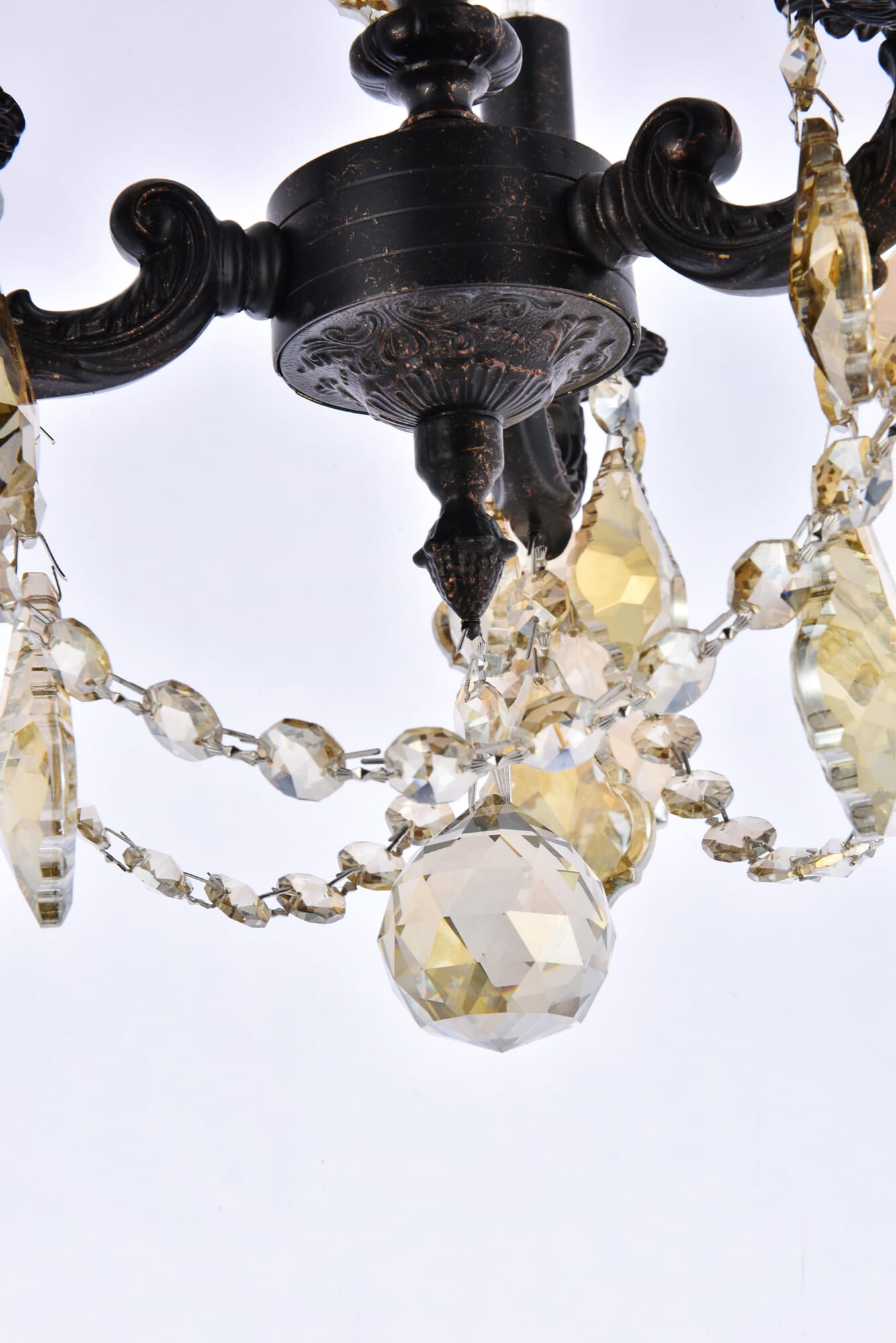 Dimensions Chain/Rod Length: 60" Length: 10" Width: 10" Height: 10" Maximum Height: 70" Wire Length: 141.73" Specifications Product Type: Pendants Hanging Device: Chain Voltage: 110V - 125V Dimmable: Yes Socket Type: E12 Number of Lights: 3 Wattage/Bulb: 40 Max/Nominal Watt: 120 Crystal/Glass Color: clear Wire Included: Yes Bulb Shape: B10 Harware Material: Brass Fixture Material: Brass and Crystal Product Shape: Pendants Assembly Required: YES Hardware Finish: Dark Bronze Bulb Included: No UL & ULC Standard: UL,ULC Weight: 12 Product Warranty: 1 year limited Shipment type: Small Parcel