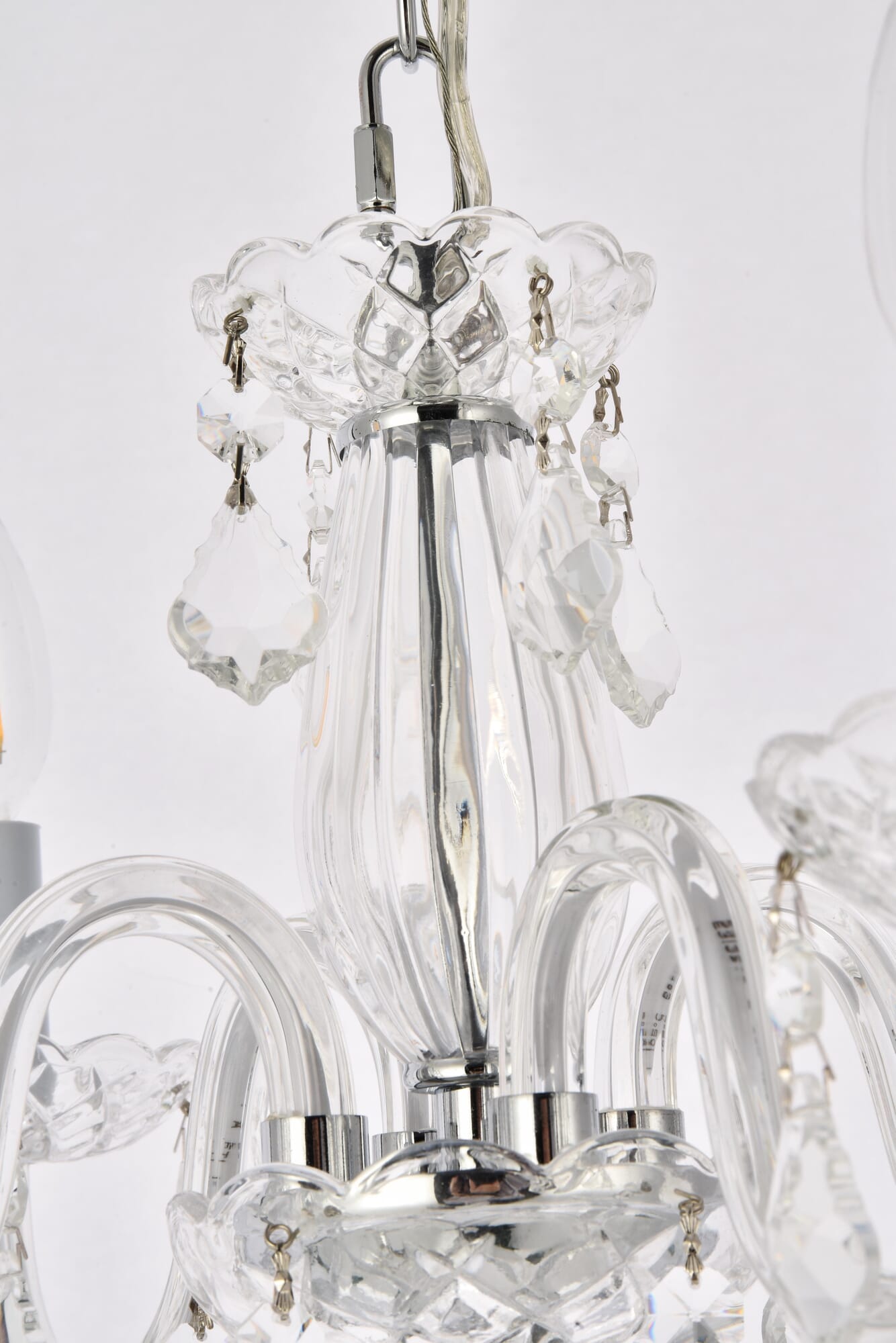 Dimensions Chain/Rod Length: 60" Length: 15" Width: 15" Height: 12" Maximum Height: 72" Wire Length: 82.5" Specifications Product Type: Pendants Hanging Device: Chain Voltage: 110V - 125V Dimmable: Yes Socket Type: E12 Number of Lights: 4 Wattage/Bulb: 40 Max/Nominal Watt: 160 Crystal/Glass Color: clear Wire Included: Yes Bulb Shape: B10 Harware Material: Steel Fixture Material: Steel and Glass Product Shape: Pendants Assembly Required: YES Hardware Finish: Chrome Bulb Included: No UL & ULC Standard: UL,ULC Weight: 14 Product Warranty: 1 year limited Shipment type: Small Parcel