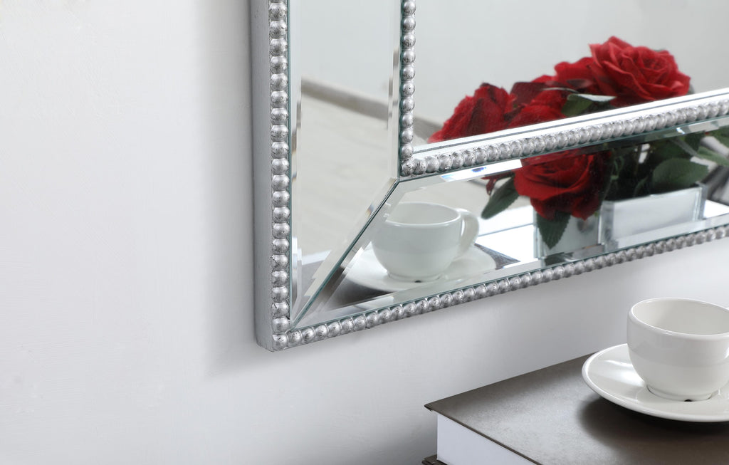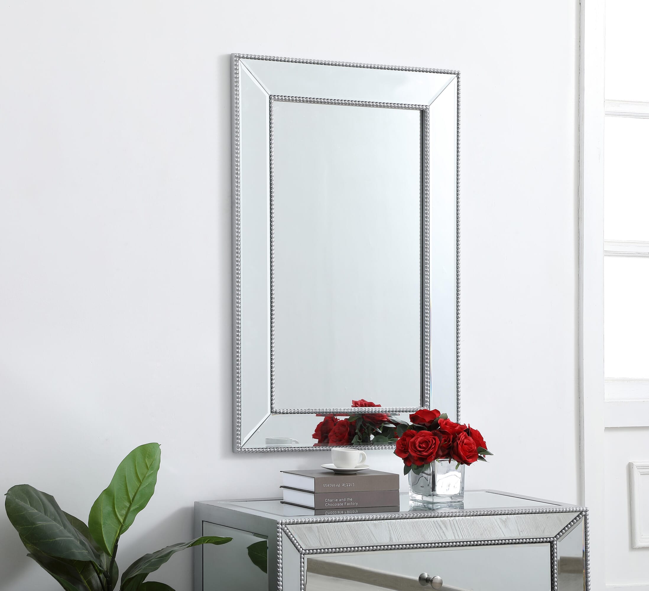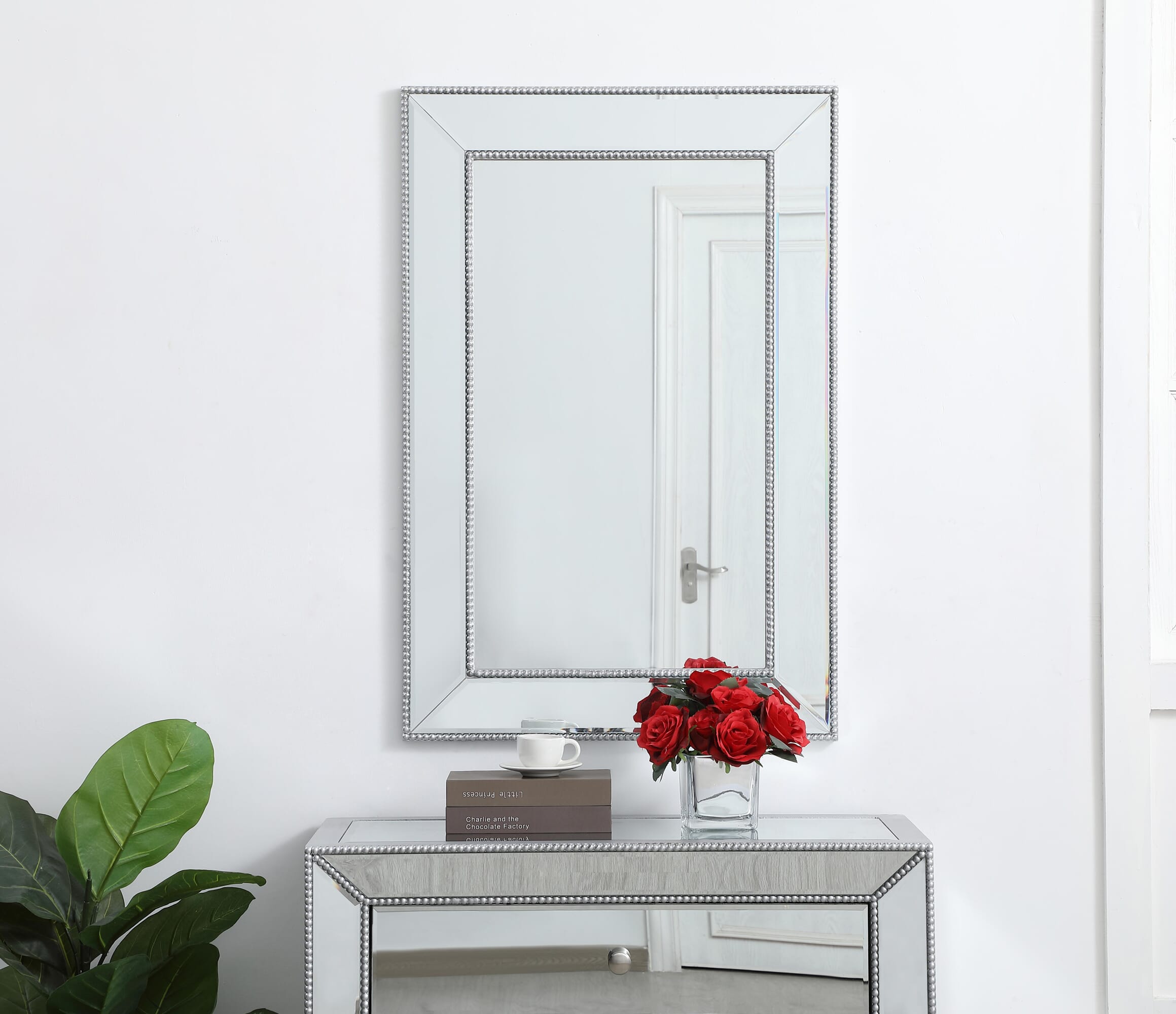 Dimensions Length: 36" Width: 1" Height: 24" Extension: 1" Specifications Product Type: Vanity Mirrors Wire Included: No Harware Material: METAL Fixture Material: MDF and Mirror Product Shape: Rectangle Assembly Required: NO Distressed Finish: YES Hardware Finish: black Mirror Frame Shape: Rectangle Mirror Hanging Orientation: Vertical/Horizontal Mirror Mounting: Metal Inset hanger Frameless: NO Weight: 15.435 Product Warranty: 1 year limited Shipment type: small parcel