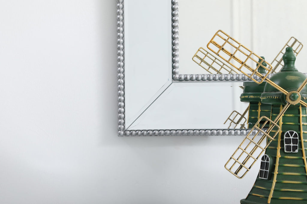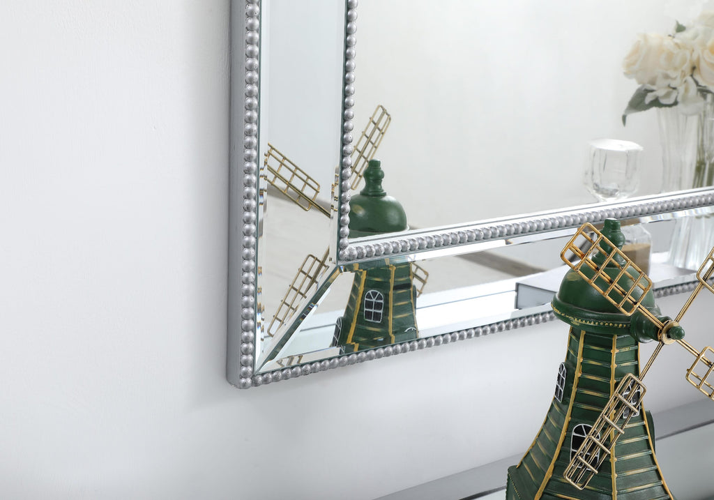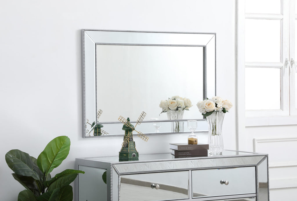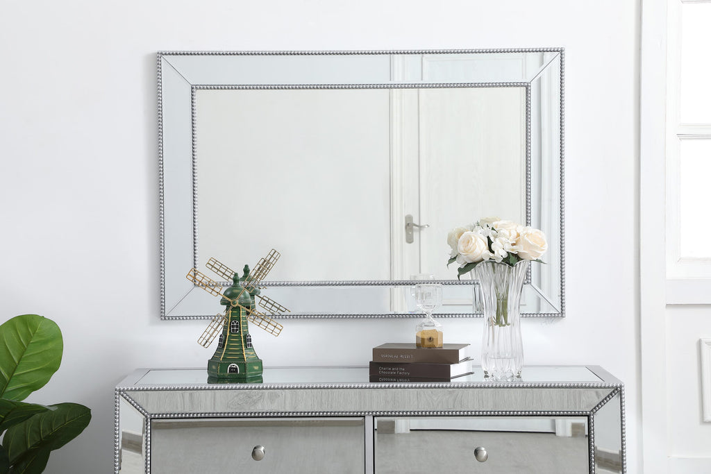 Dimensions Length: 42" Width: 1" Height: 28" Extension: 1" Specifications Product Type: Vanity Mirrors Wire Included: No Harware Material: METAL Fixture Material: MDF and Mirror Product Shape: Rectangle Assembly Required: NO Distressed Finish: YES Hardware Finish: black Mirror Frame Shape: Rectangle Mirror Hanging Orientation: Vertical/Horizontal Mirror Mounting: Metal Inset hanger Frameless: NO Weight: 22.05 Product Warranty: 1 year limited Shipment type: Oversized Ground