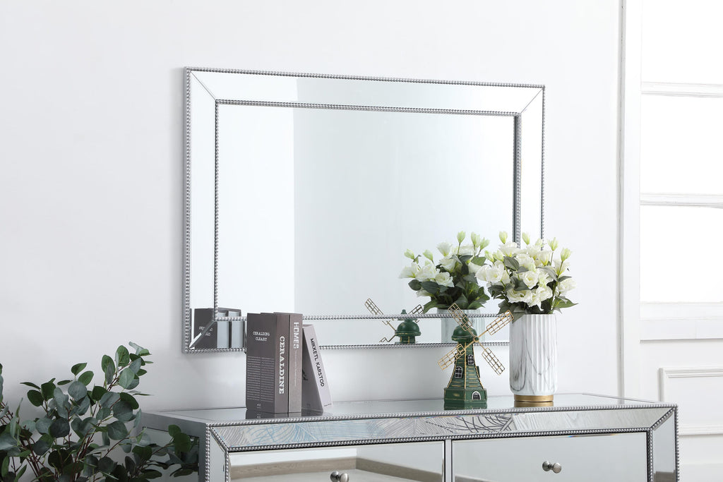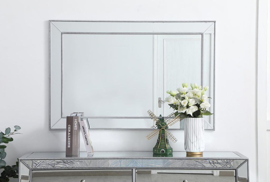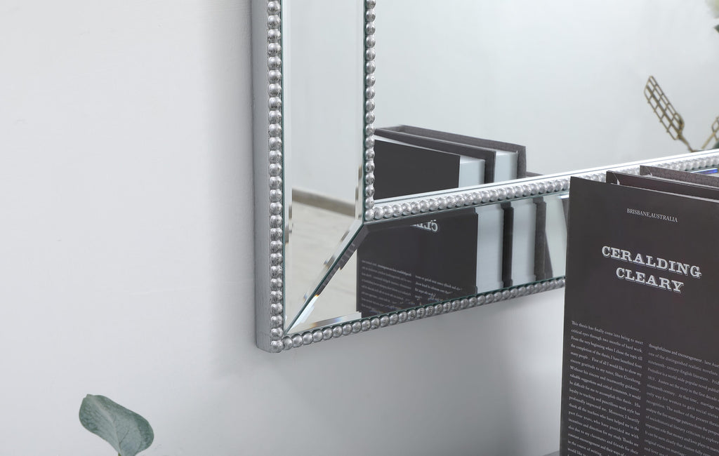 Dimensions Length: 48" Width: 1" Height: 32" Extension: 1" Specifications Product Type: Vanity Mirrors Wire Included: No Harware Material: METAL Fixture Material: MDF and Mirror Product Shape: Rectangle Assembly Required: NO Distressed Finish: YES Hardware Finish: black Mirror Frame Shape: Rectangle Mirror Hanging Orientation: Vertical/Horizontal Mirror Mounting: Metal Inset hanger Frameless: NO Weight: 33.075 Product Warranty: 1 year limited Shipment type: Oversized Ground