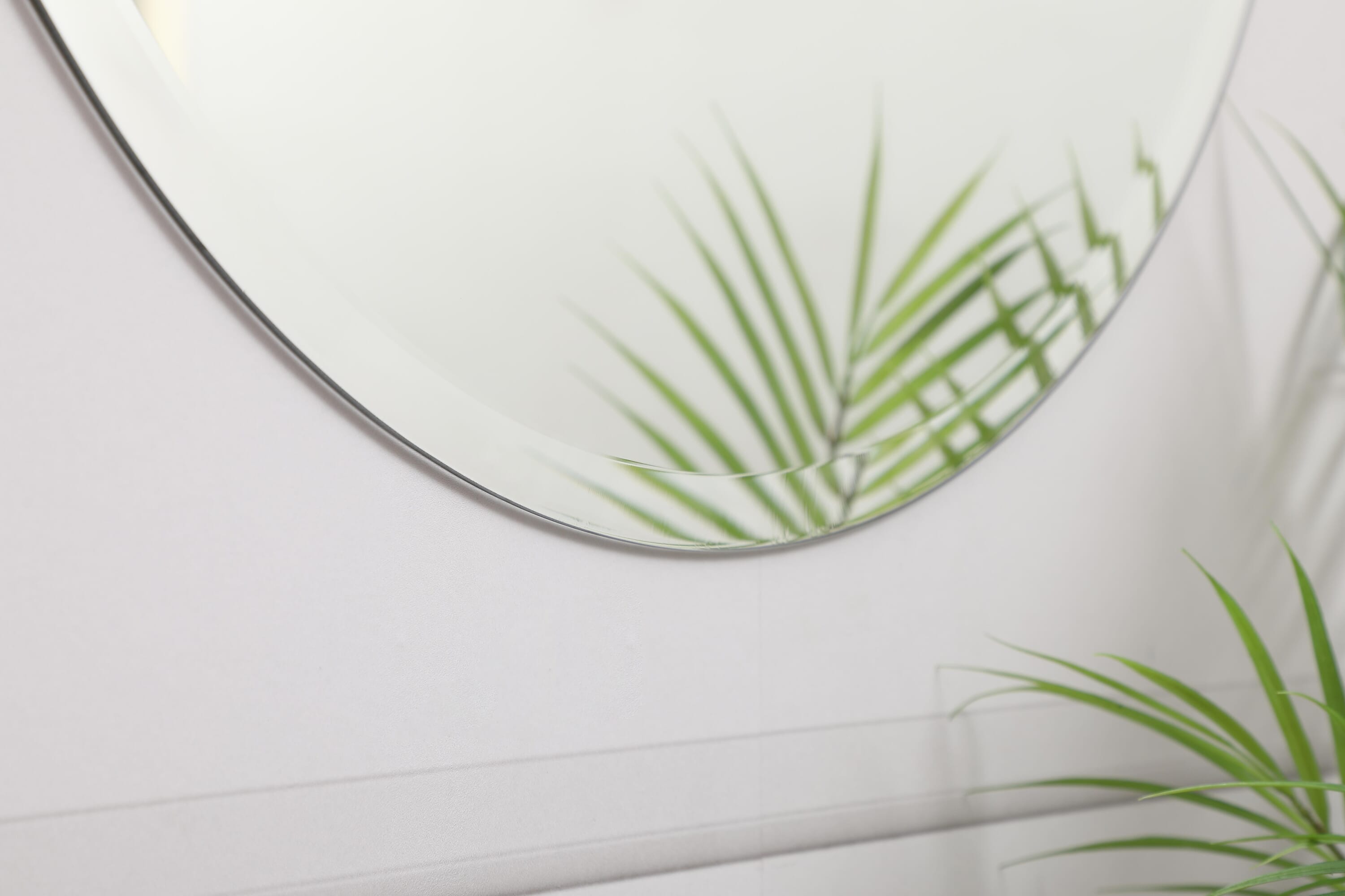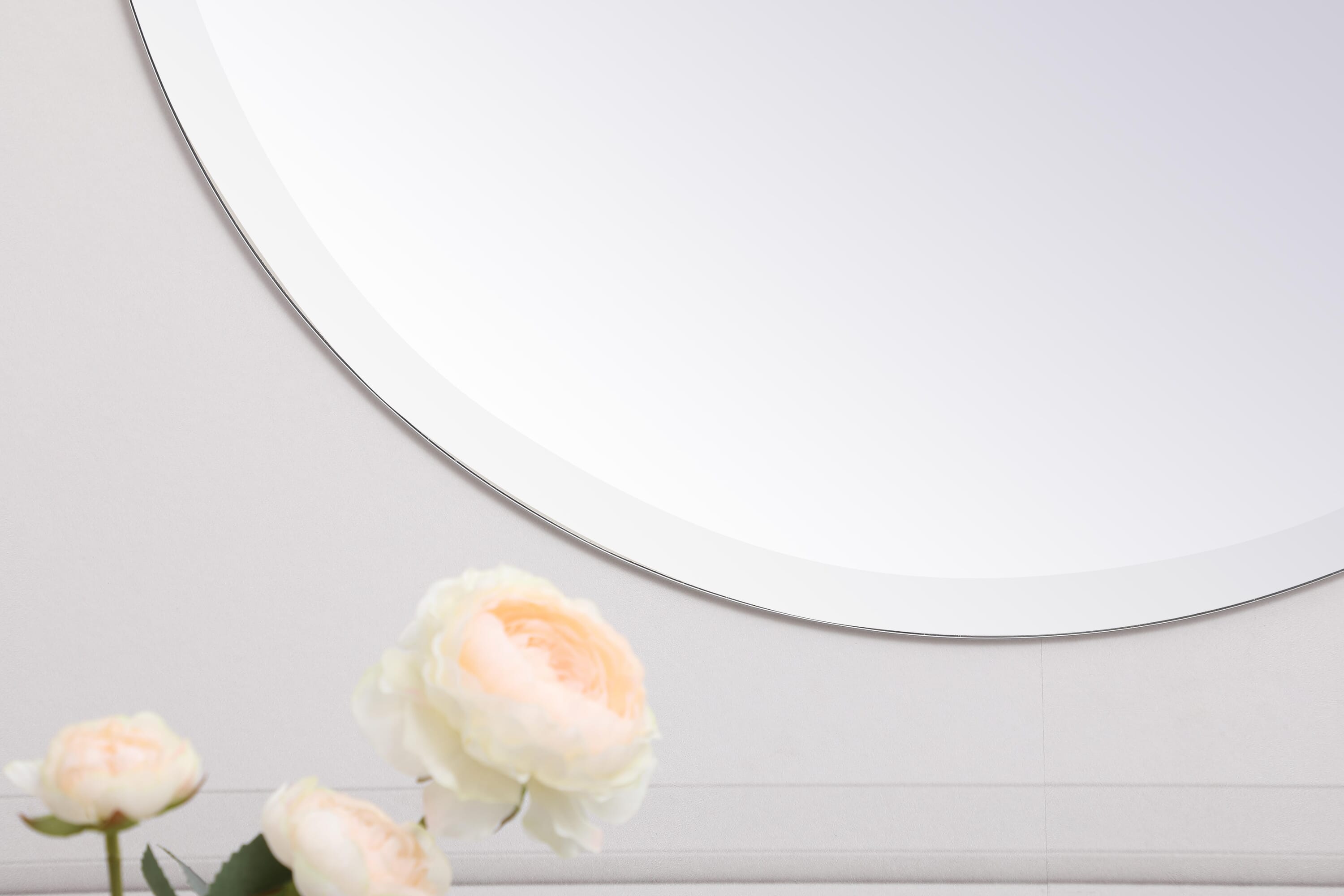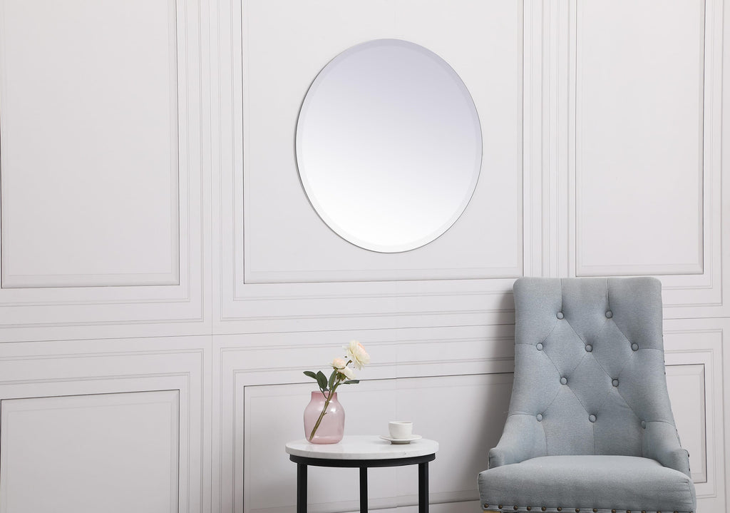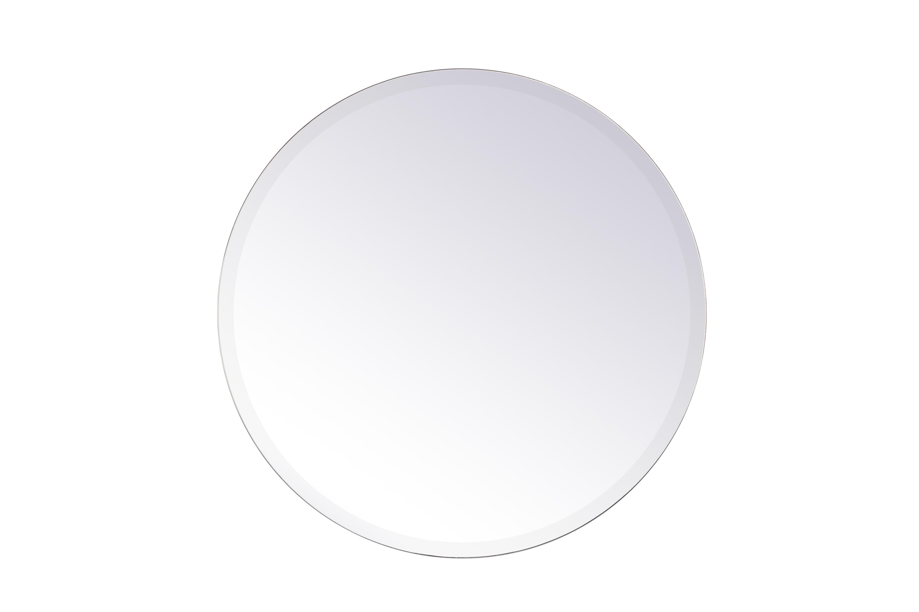 Dimensions Length: 24" Width: 0.25" Height: 24" Depth: 0.25" Specifications Product Type: Vanity Mirrors Wire Included: No Harware Material: metal Fixture Material: Mirror Product Shape: Round Assembly Required: No Distressed Finish: No Mirror Frame Shape: Round Mirror Hanging Orientation: Vertical and Horizontal Mirror Mounting: Metal Inset hanger Mirror Type: clear mirror Frameless: yes Weight: 7 Product Warranty: 1 year limited Shipment type: Small Parcel
