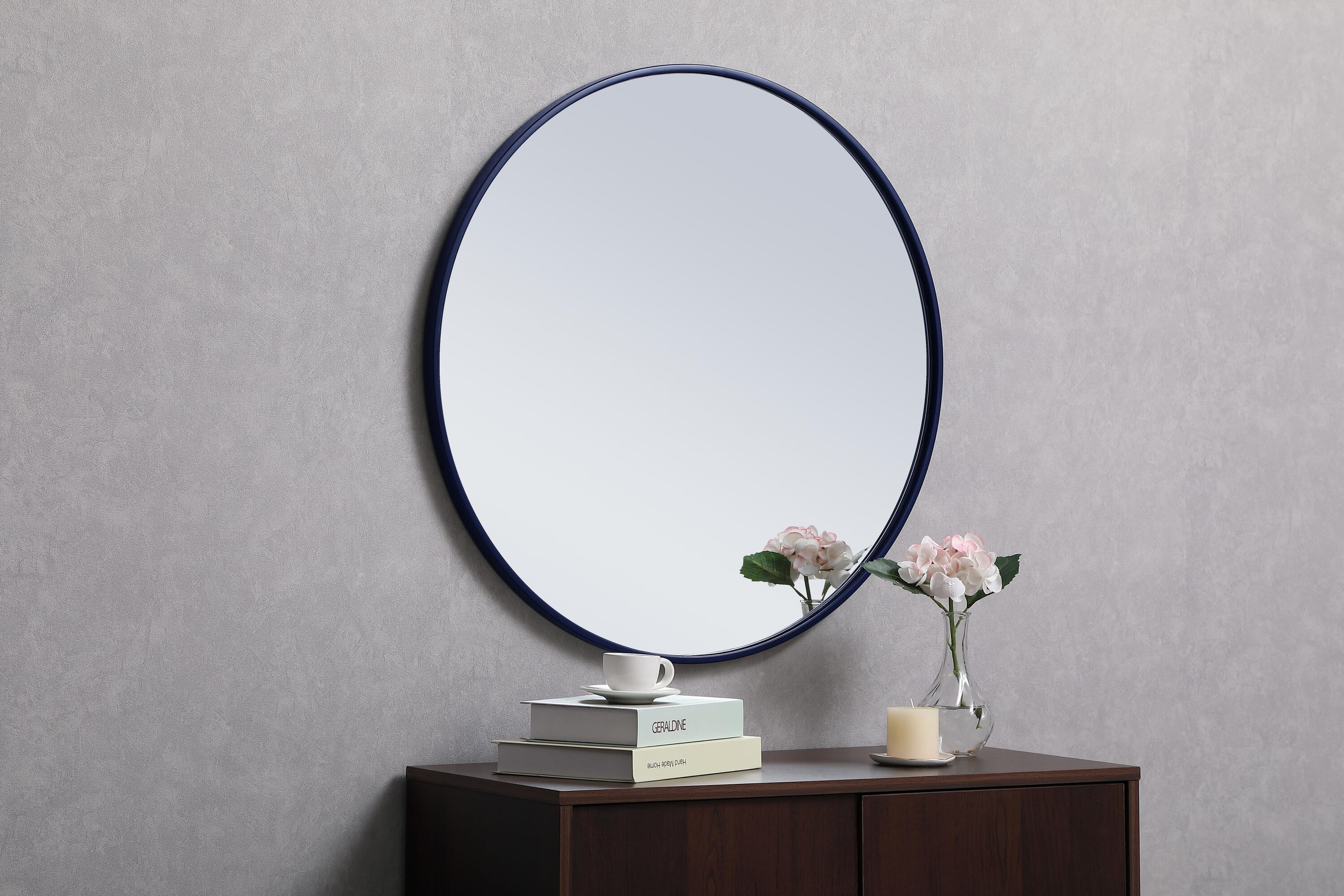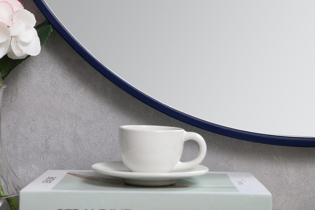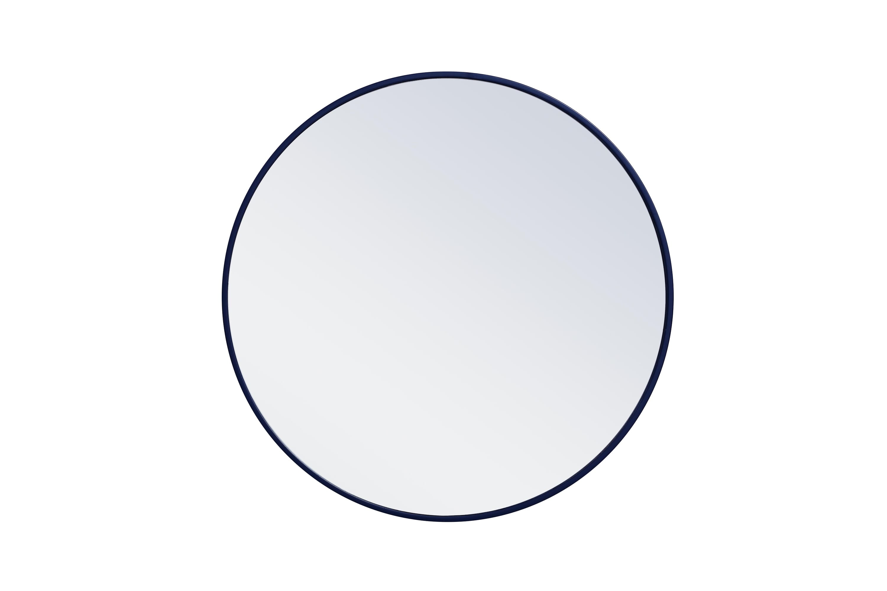 Dimensions Length: 28" Width: 1" Height: 28" Depth: 1" Specifications Product Type: Vanity Mirrors Wire Included: No Harware Material: metal Fixture Material: Metal and MDF Product Shape: Round Assembly Required: No Distressed Finish: No Mirror Frame Shape: Round Mirror Hanging Orientation: Vertical and Horizontal Mirror Mounting: Metal Inset hanger Mirror Type: clear mirror Frameless: No Weight: 14.1 Product Warranty: 1 year limited Shipment type: Small Parcel