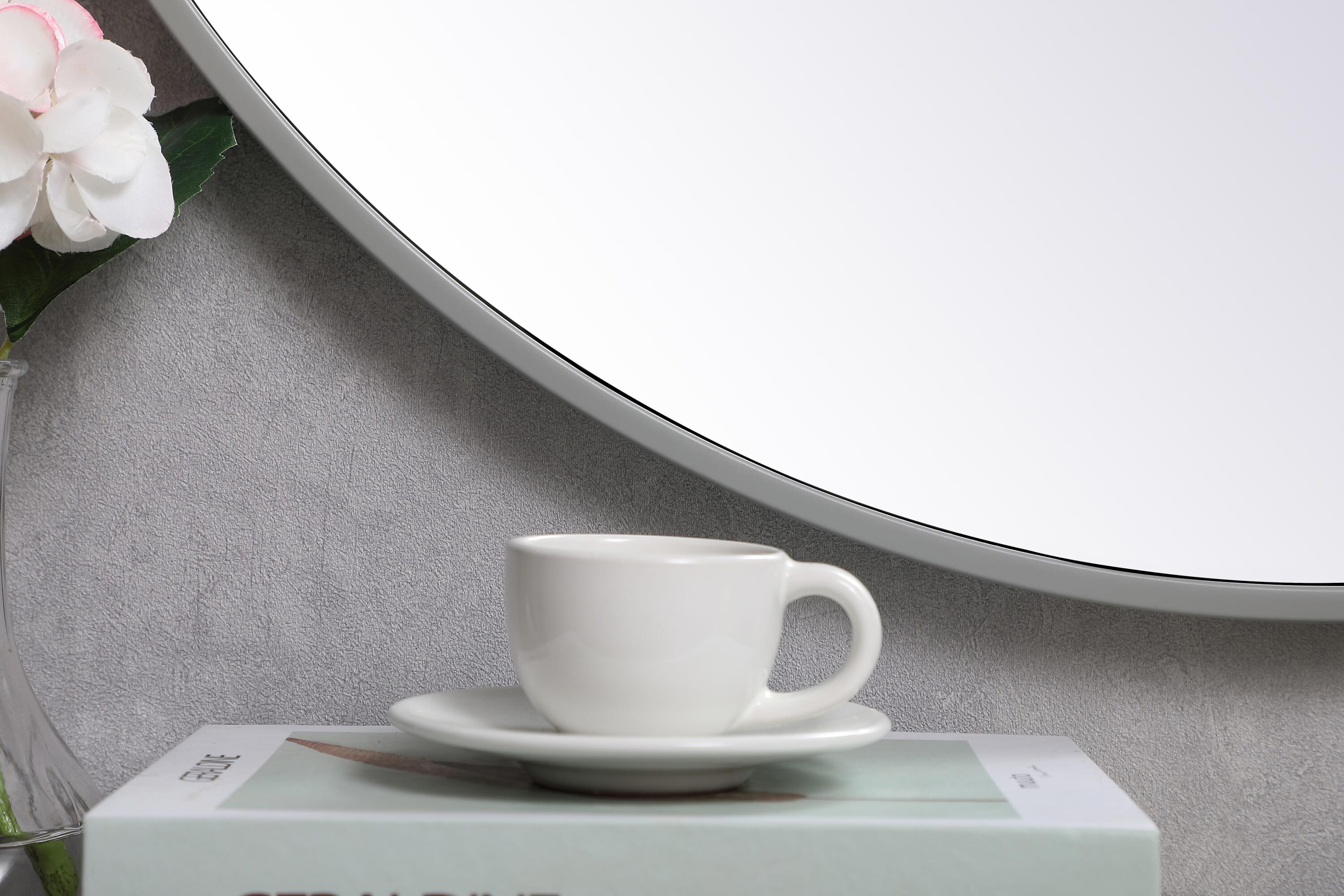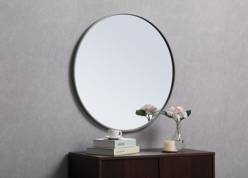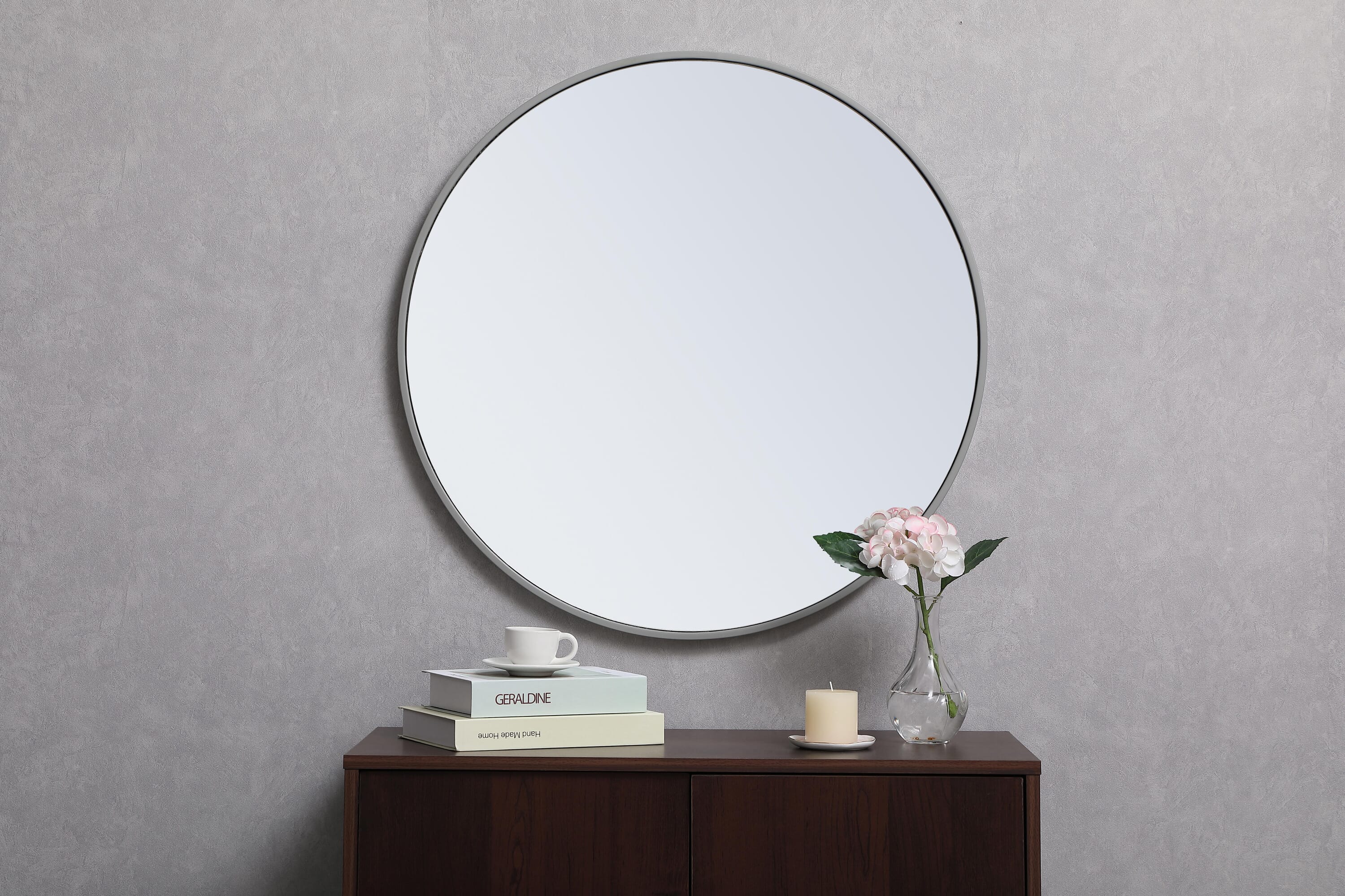 Dimensions Length: 28" Width: 1" Height: 28" Depth: 1" Specifications Product Type: Vanity Mirrors Wire Included: No Harware Material: metal Fixture Material: Metal and MDF Product Shape: Round Assembly Required: No Distressed Finish: No Mirror Frame Shape: Round Mirror Hanging Orientation: Vertical and Horizontal Mirror Mounting: Metal Inset hanger Mirror Type: clear mirror Frameless: No Weight: 14.1 Product Warranty: 1 year limited Shipment type: Small Parcel