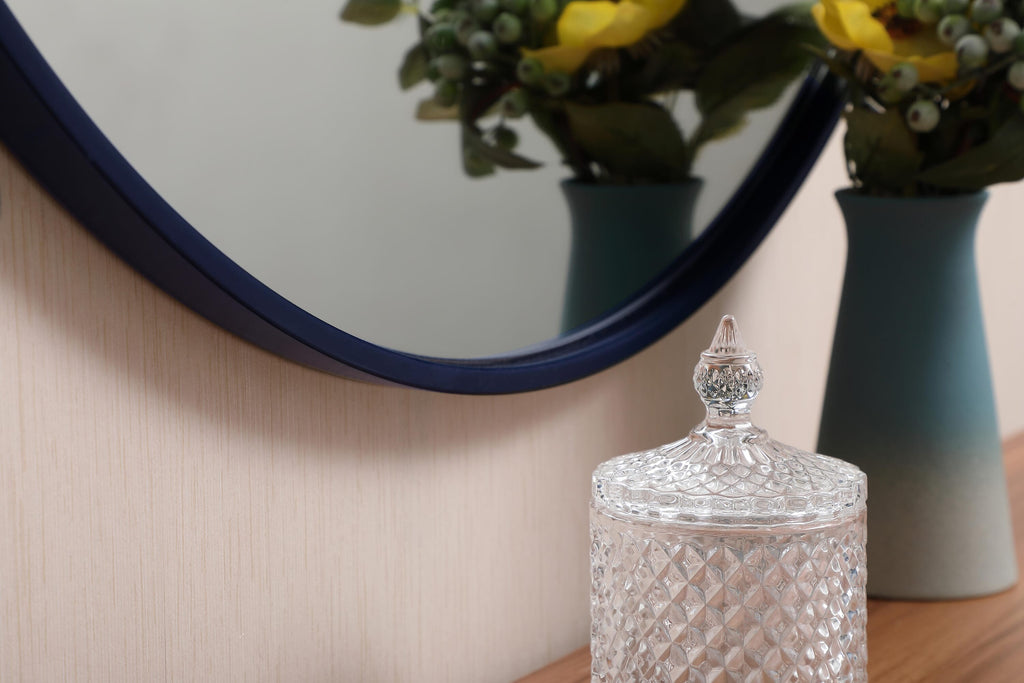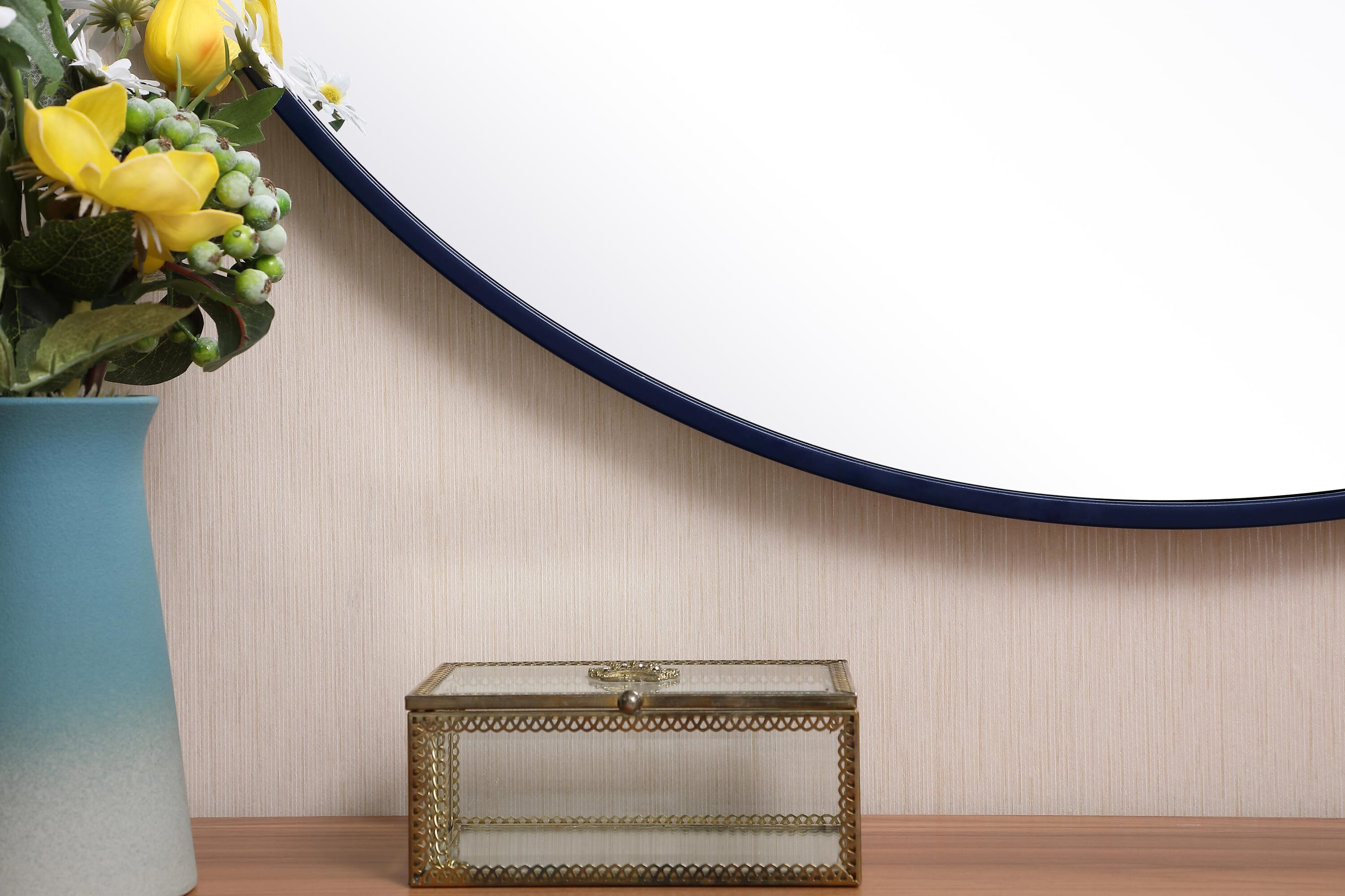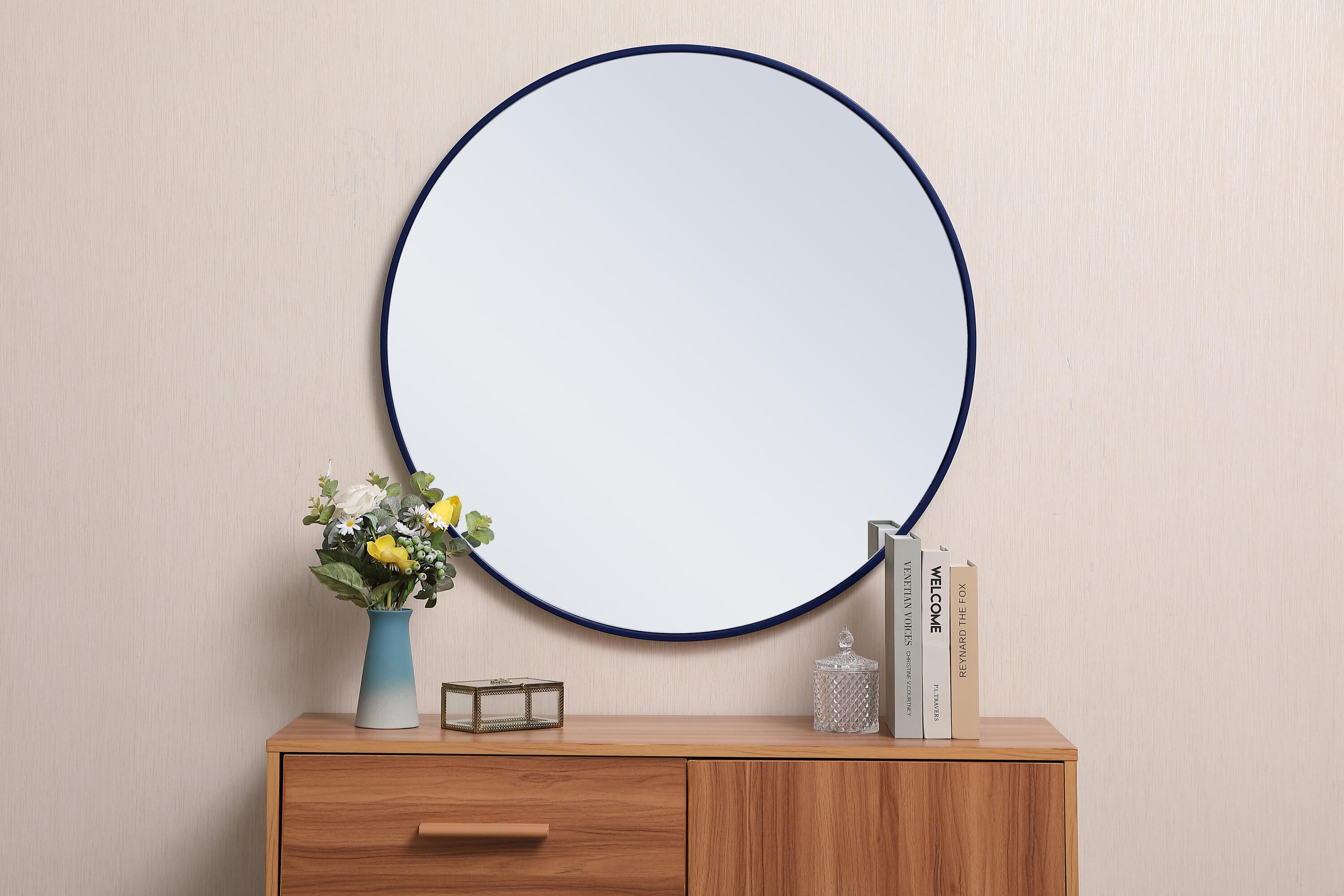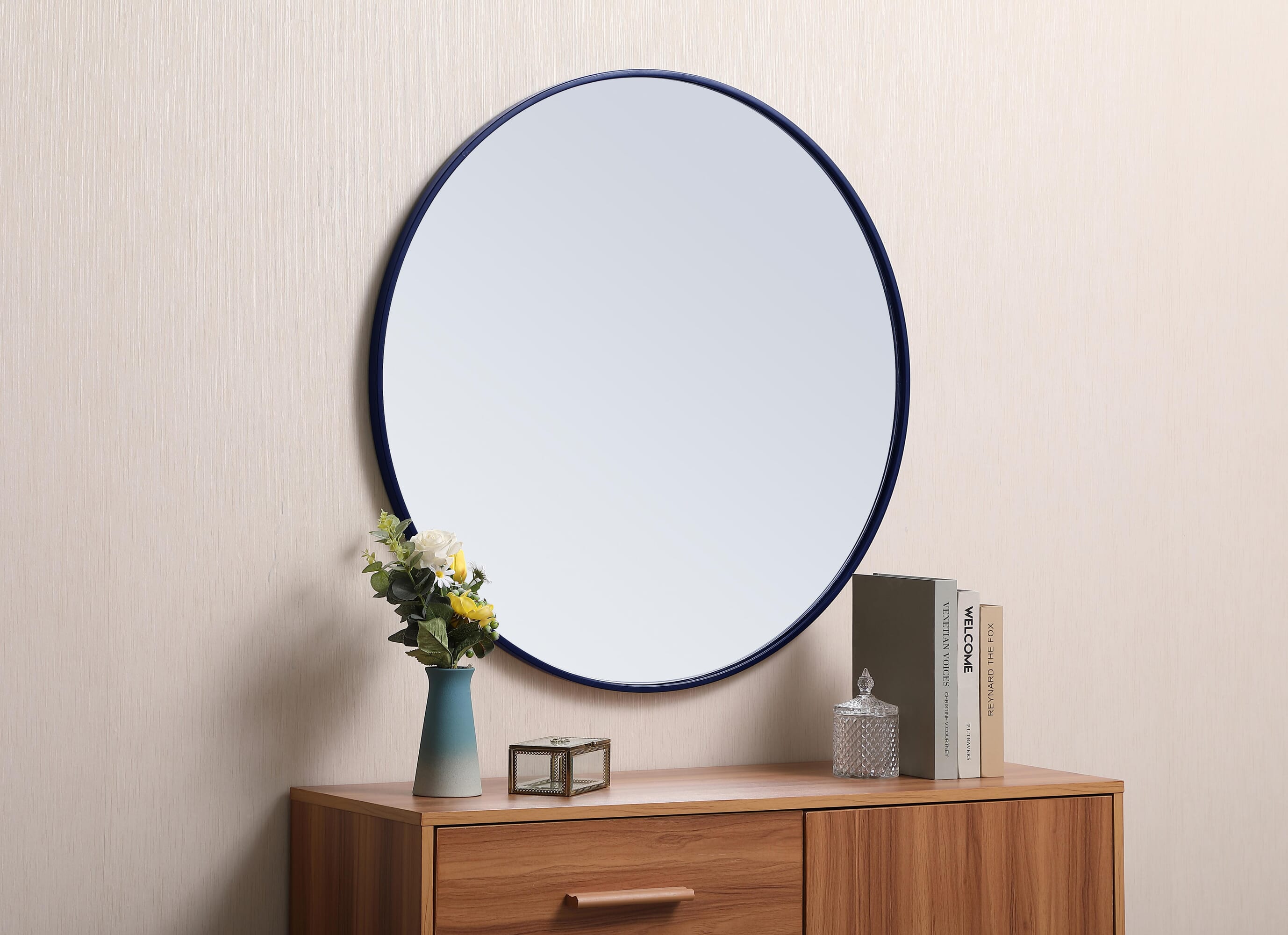 Dimensions Length: 32" Width: 1" Height: 32" Depth: 1" Specifications Product Type: Vanity Mirrors Wire Included: No Harware Material: metal Fixture Material: Metal and MDF Product Shape: Round Assembly Required: No Distressed Finish: No Mirror Frame Shape: Round Mirror Hanging Orientation: Vertical and Horizontal Mirror Mounting: Metal Inset hanger Mirror Type: clear mirror Frameless: No Weight: 17.8 Product Warranty: 1 year limited Shipment type: Small Parcel