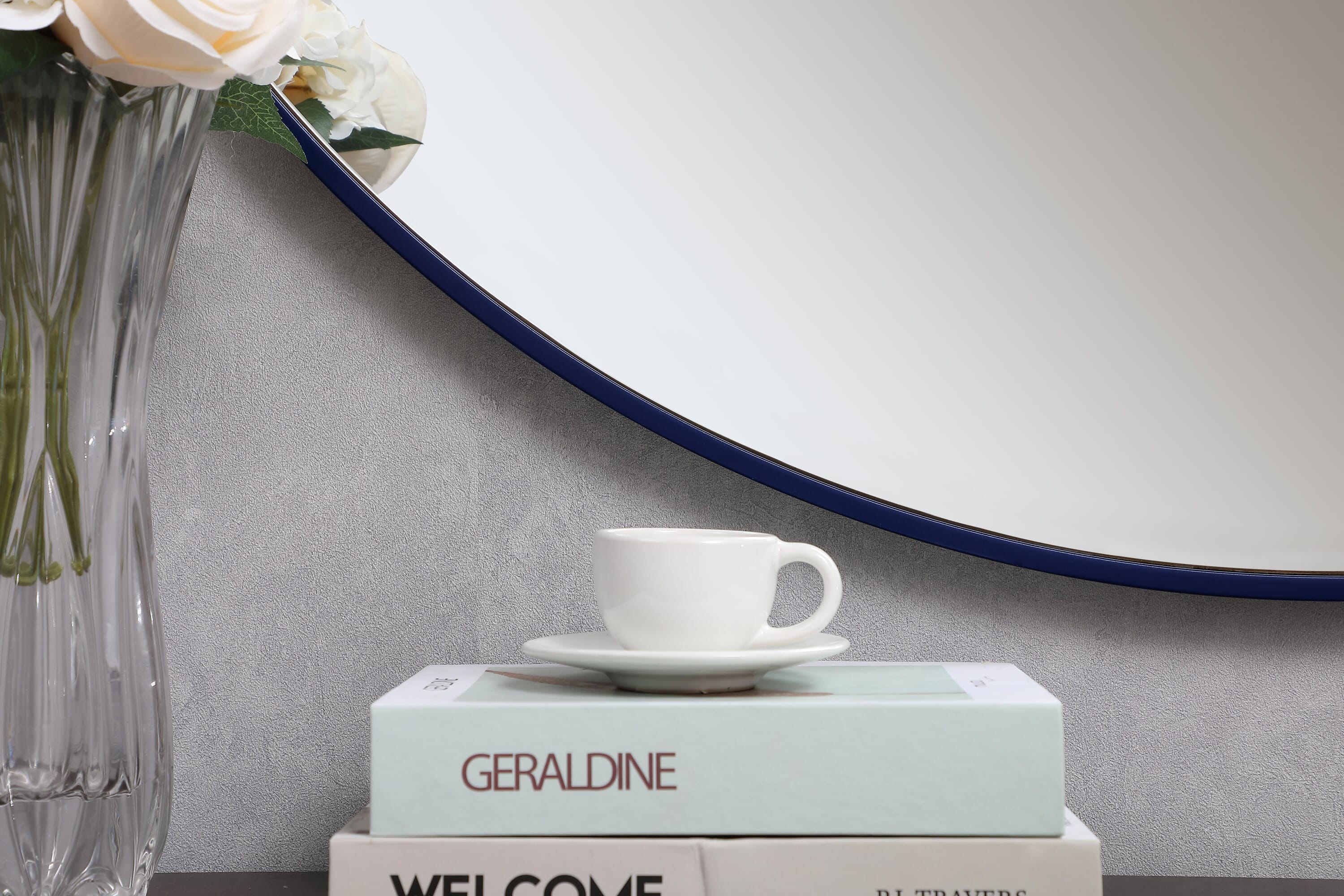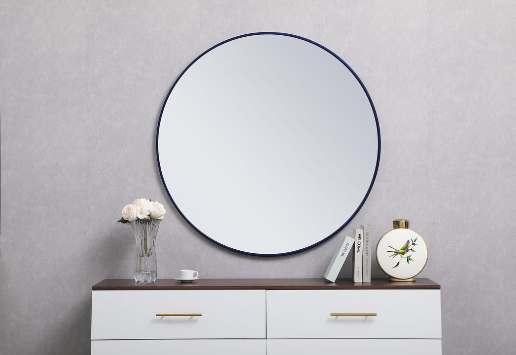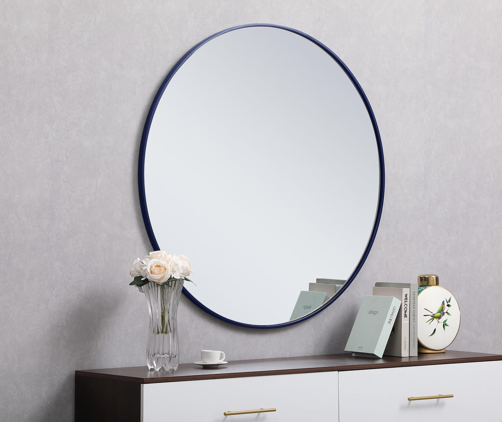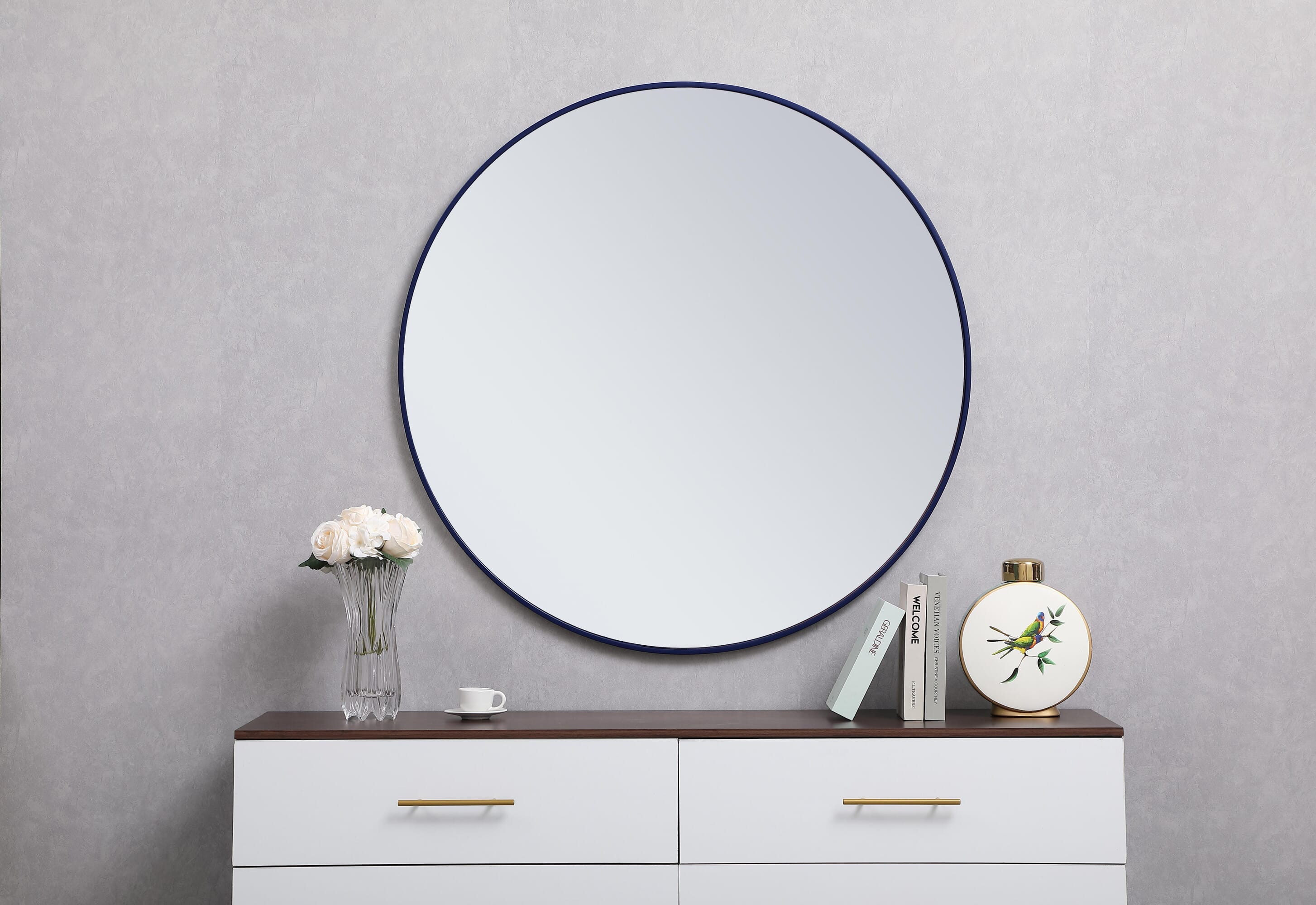Dimensions Length: 42" Width: 1" Height: 42" Depth: 1" Specifications Product Type: Vanity Mirrors Wire Included: No Harware Material: metal Fixture Material: Metal and MDF Product Shape: Round Assembly Required: No Distressed Finish: No Mirror Frame Shape: Round Mirror Hanging Orientation: Vertical and Horizontal Mirror Mounting: Metal Inset hanger Mirror Type: clear mirror Frameless: No Weight: 30.1 Product Warranty: 1 year limited Shipment type: Oversized Ground