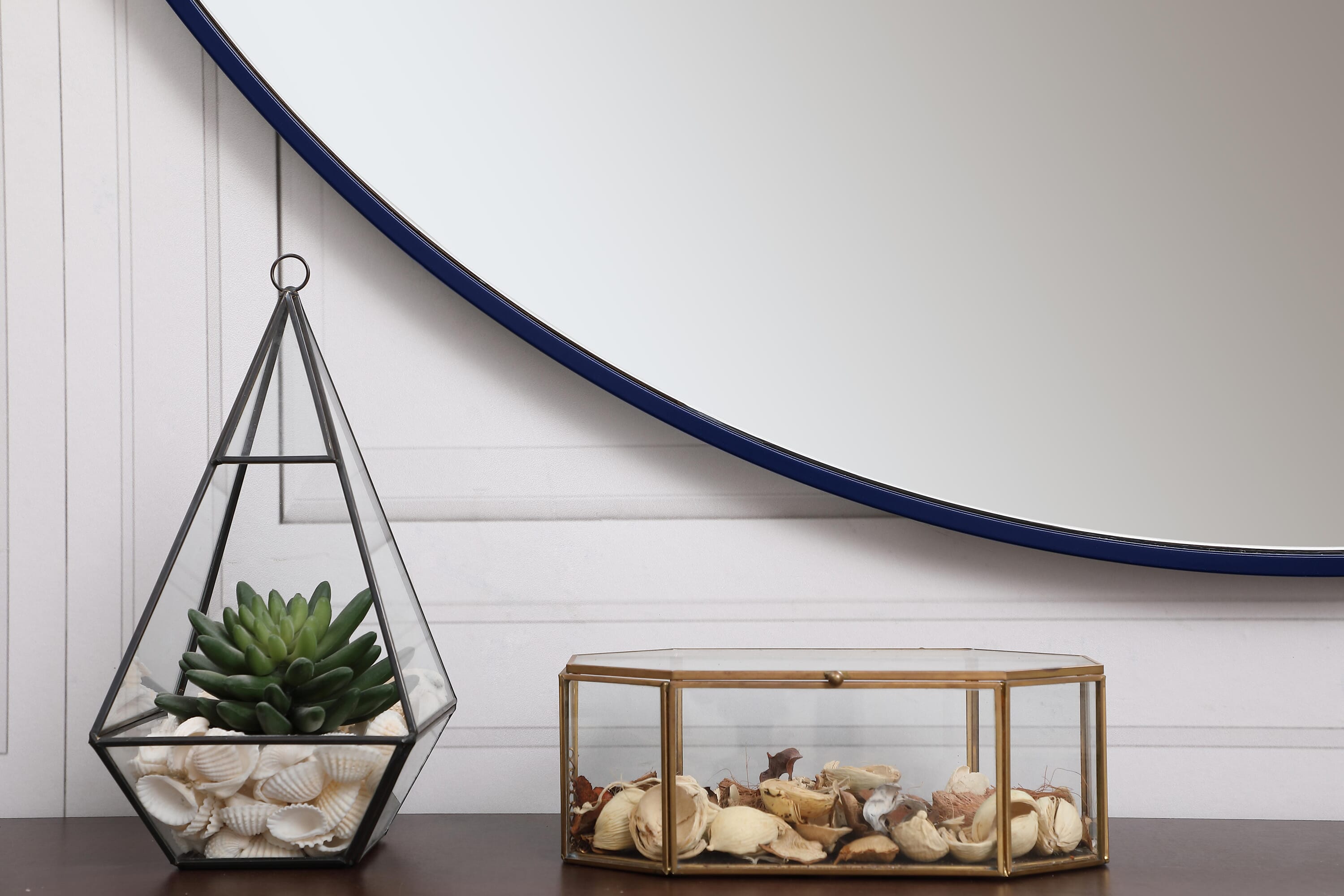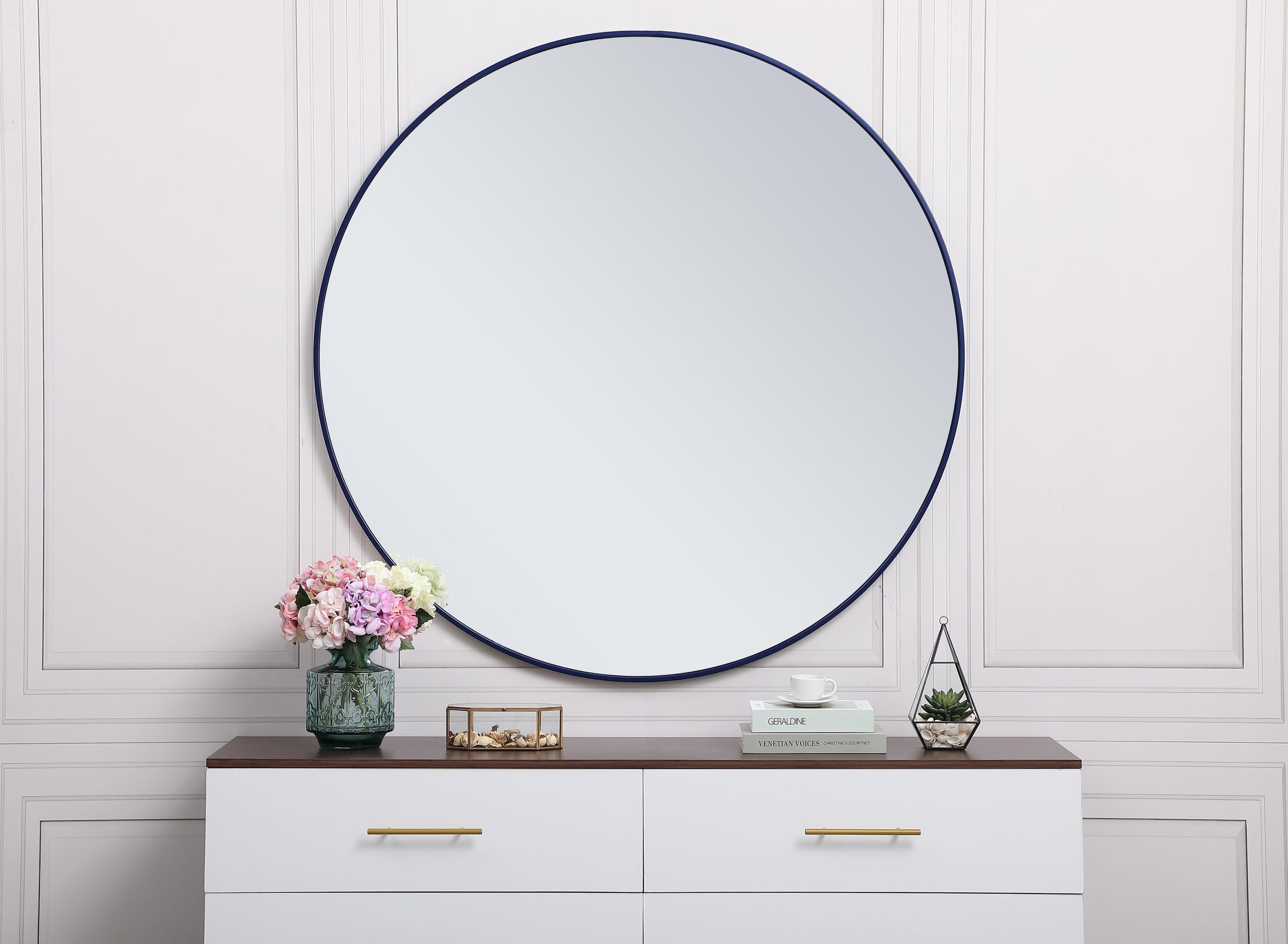 Dimensions Length: 48" Width: 1" Height: 48" Depth: 1" Specifications Product Type: Vanity Mirrors Wire Included: No Harware Material: metal Fixture Material: Metal and MDF Product Shape: Round Assembly Required: No Distressed Finish: No Mirror Frame Shape: Round Mirror Hanging Orientation: Vertical and Horizontal Mirror Mounting: Metal Inset hanger Mirror Type: clear mirror Frameless: No Weight: 38.2 Product Warranty: 1 year limited Shipment type: Oversized Ground