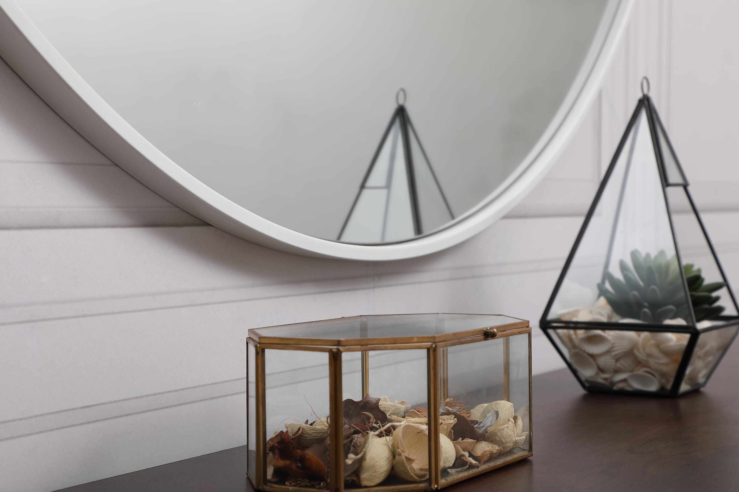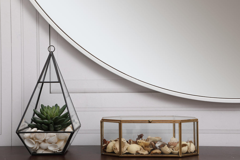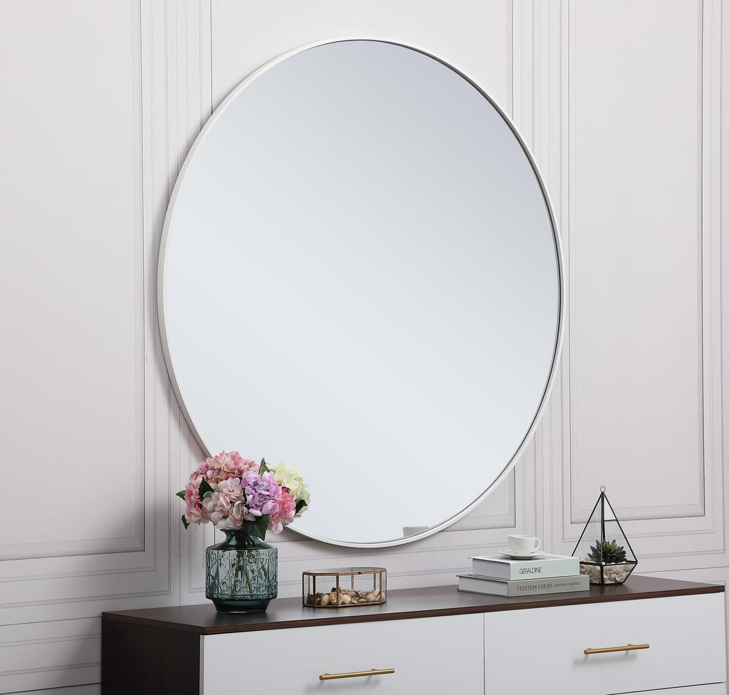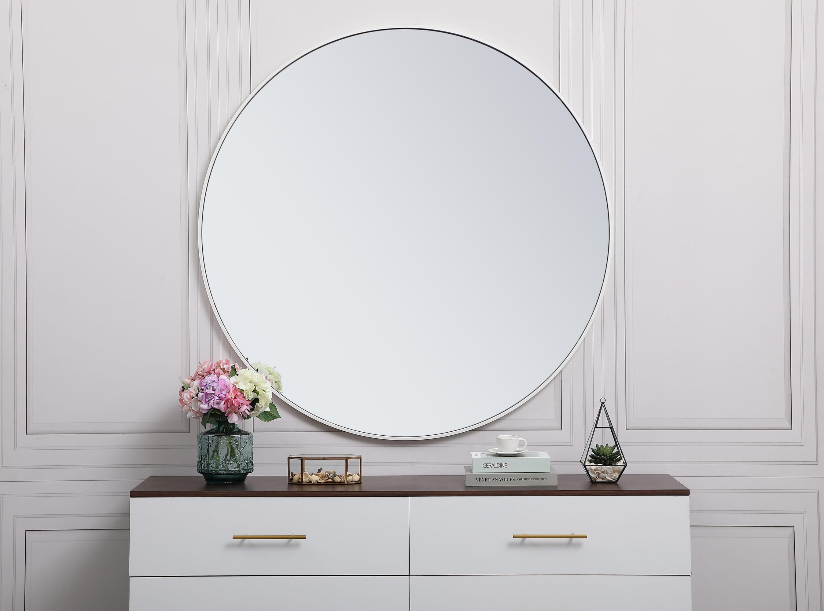 Dimensions Length: 48" Width: 1" Height: 48" Depth: 1" Specifications Product Type: Vanity Mirrors Wire Included: No Harware Material: metal Fixture Material: Metal and MDF Product Shape: Round Assembly Required: No Distressed Finish: No Mirror Frame Shape: Round Mirror Hanging Orientation: Vertical and Horizontal Mirror Mounting: Metal Inset hanger Mirror Type: clear mirror Frameless: No Weight: 38.2 Product Warranty: 1 year limited Shipment type: Oversized Ground