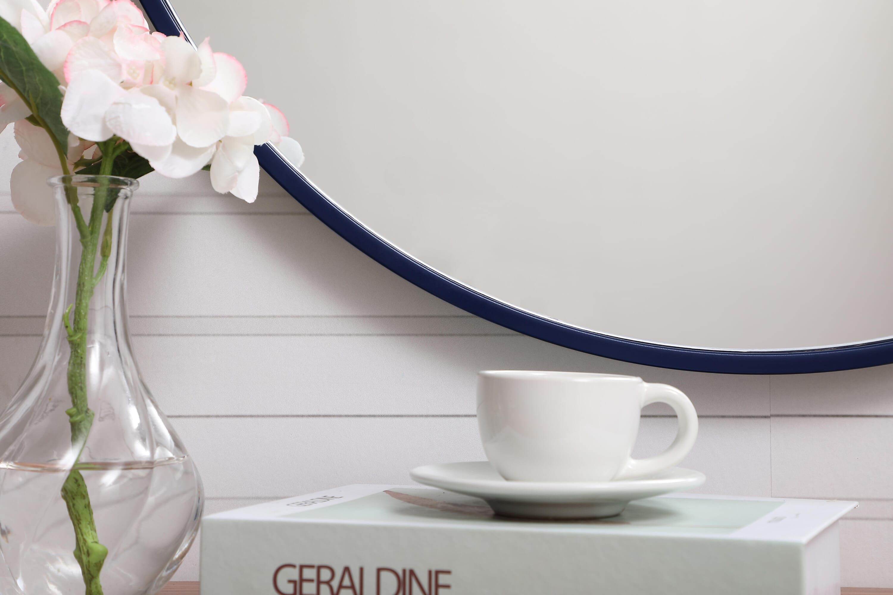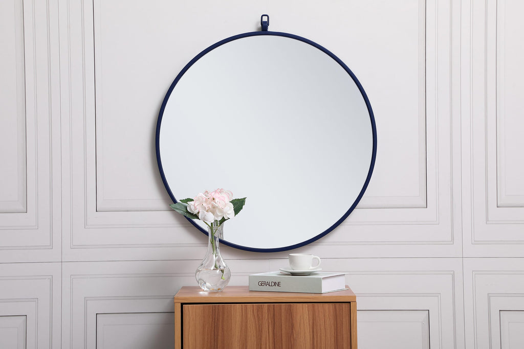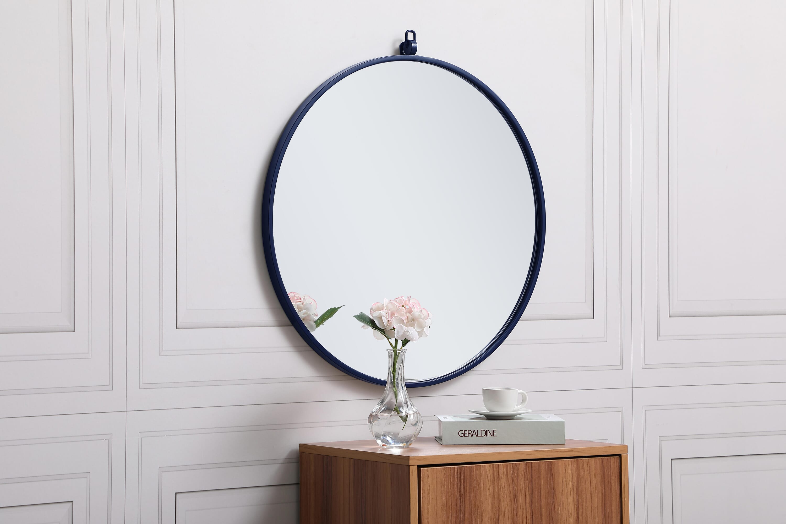 Dimensions Length: 24" Width: 1" Height: 24" Depth: 1" Specifications Product Type: Vanity Mirrors Wire Included: No Harware Material: metal Fixture Material: Metal and MDF Product Shape: Round Assembly Required: No Distressed Finish: No Mirror Frame Shape: Round Mirror Hanging Orientation: Vertical and Horizontal Mirror Mounting: Metal Inset hanger Mirror Type: clear mirror Frameless: No Weight: 10.6 Product Warranty: 1 year limited Shipment type: Small Parcel