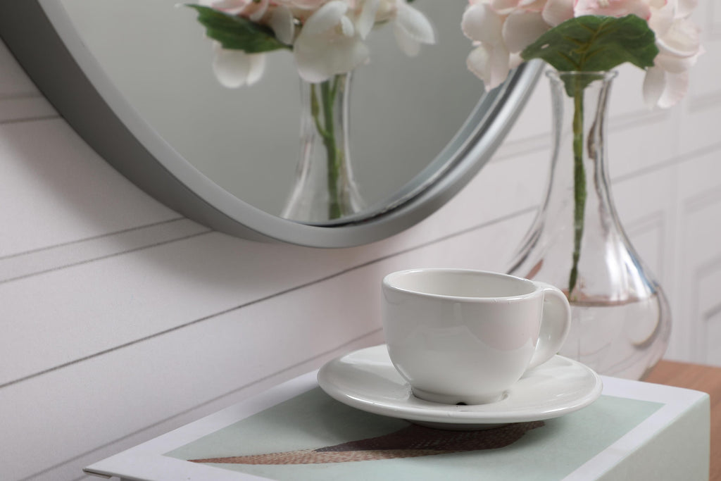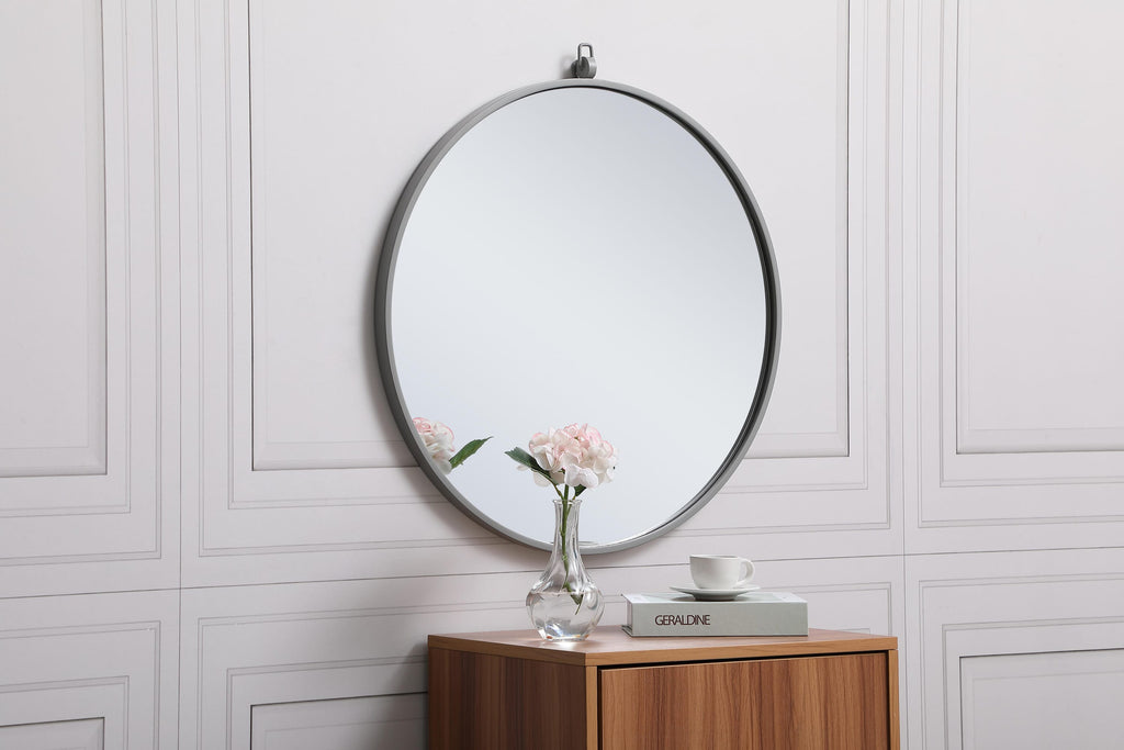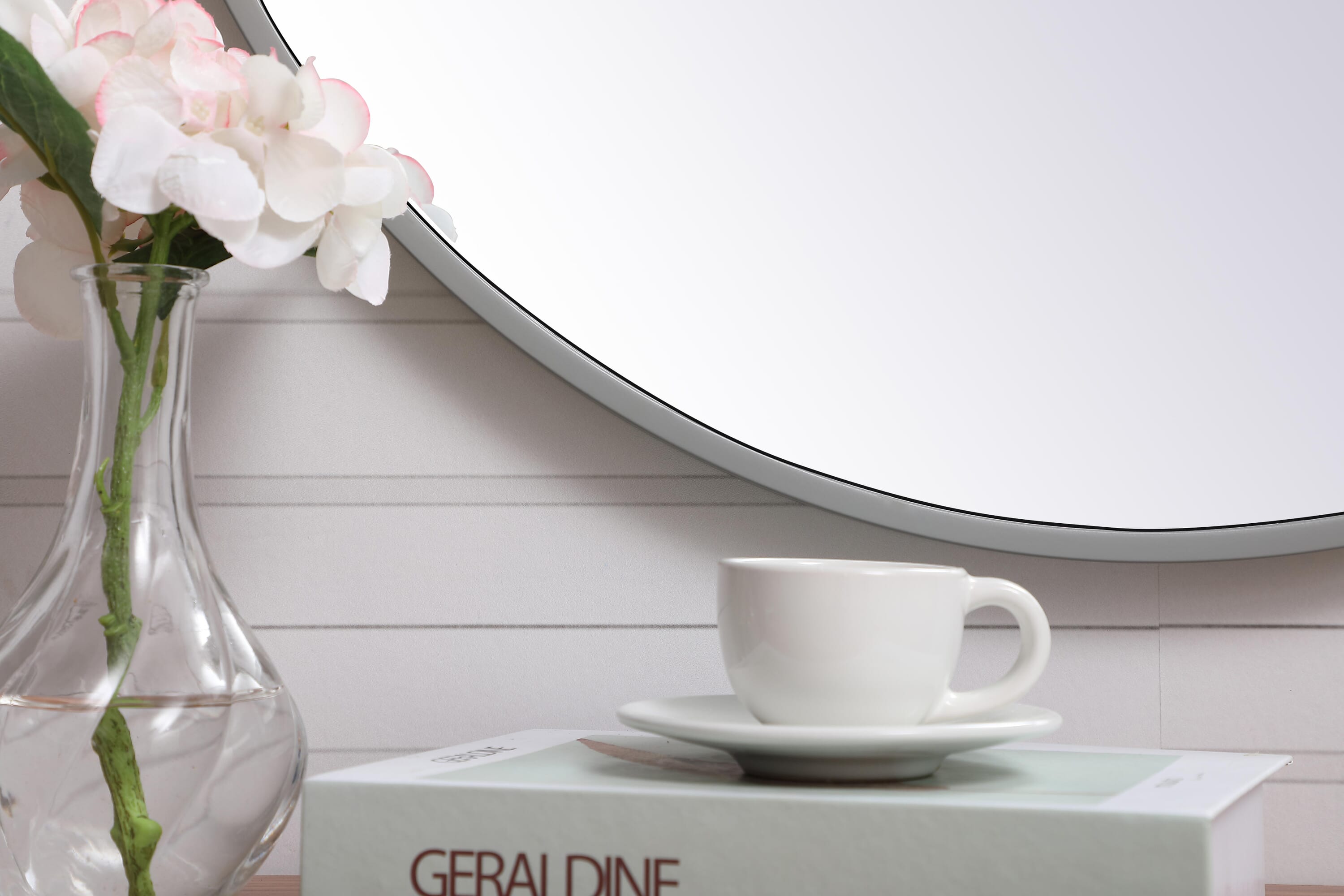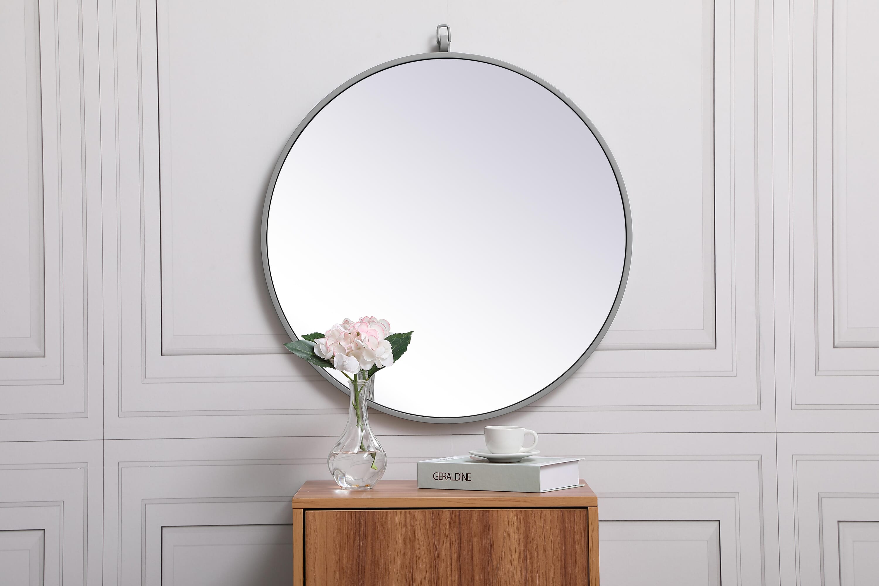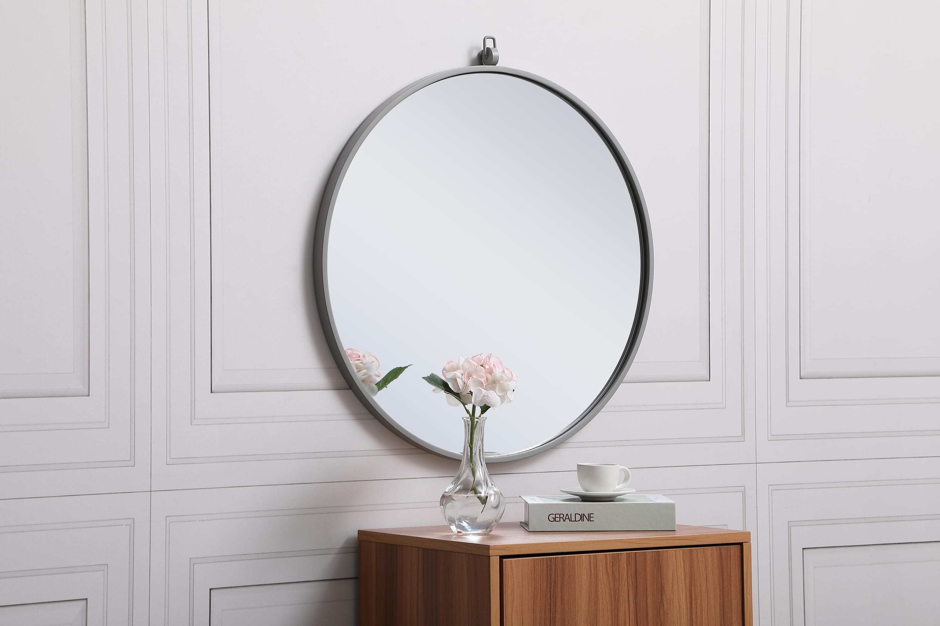 Dimensions Length: 24" Width: 1" Height: 24" Depth: 1" Specifications Product Type: Vanity Mirrors Wire Included: No Harware Material: metal Fixture Material: Metal and MDF Product Shape: Round Assembly Required: No Distressed Finish: No Mirror Frame Shape: Round Mirror Hanging Orientation: Vertical and Horizontal Mirror Mounting: Metal Inset hanger Mirror Type: clear mirror Frameless: No Weight: 10.6 Product Warranty: 1 year limited Shipment type: Small Parcel