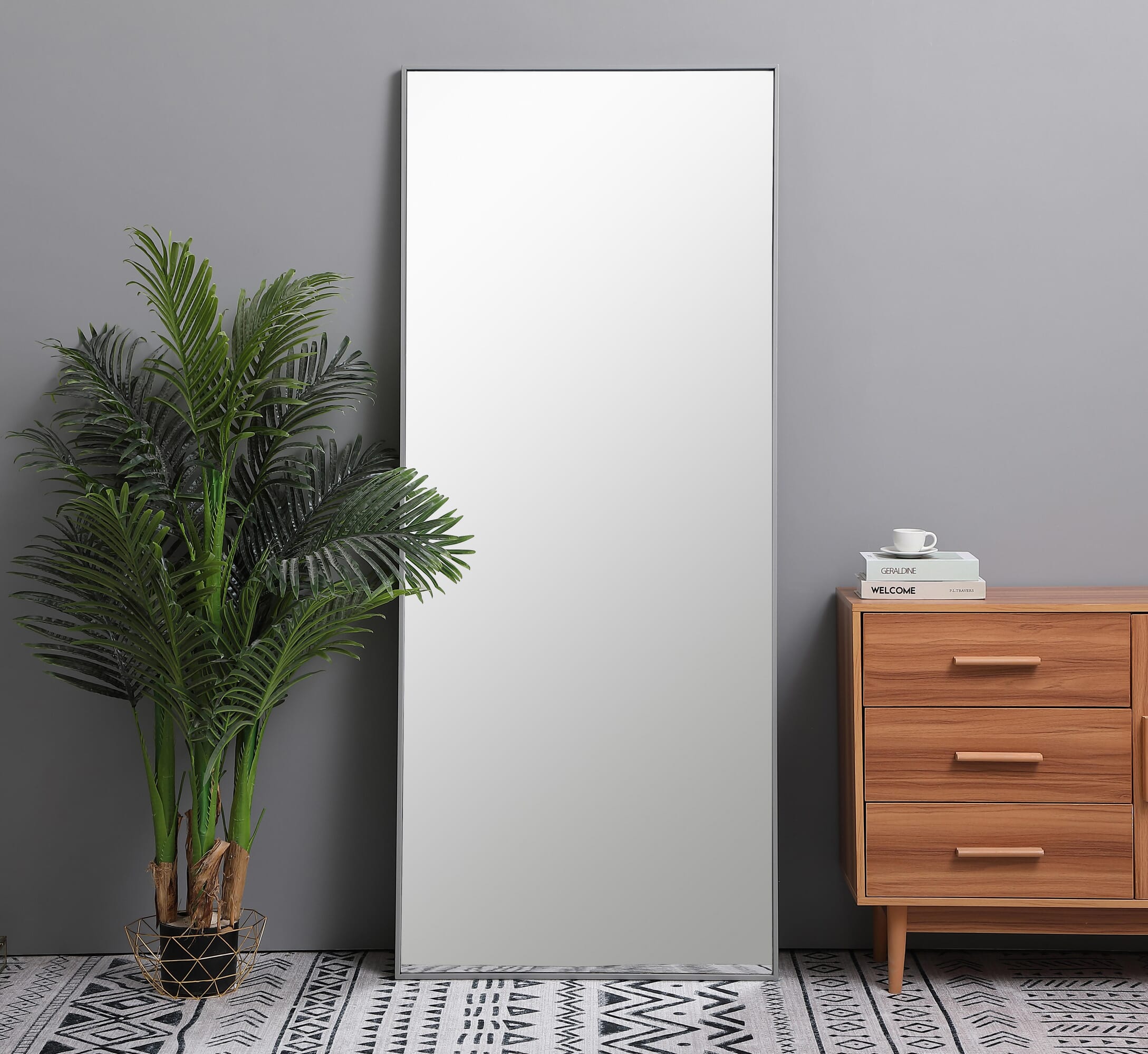 Dimensions Length: 30" Width: 1" Height: 72" Depth: 1" Specifications Product Type: Vanity Mirrors Wire Included: No Harware Material: metal Fixture Material: Metal and MDF Product Shape: Rectangle Assembly Required: No Distressed Finish: No Mirror Frame Shape: Rectangle Mirror Hanging Orientation: Vertical Mirror Mounting: Metal Inset hanger Mirror Type: clear mirror Frameless: No Weight: 42.5 Product Warranty: 1 year limited Shipment type: LTL