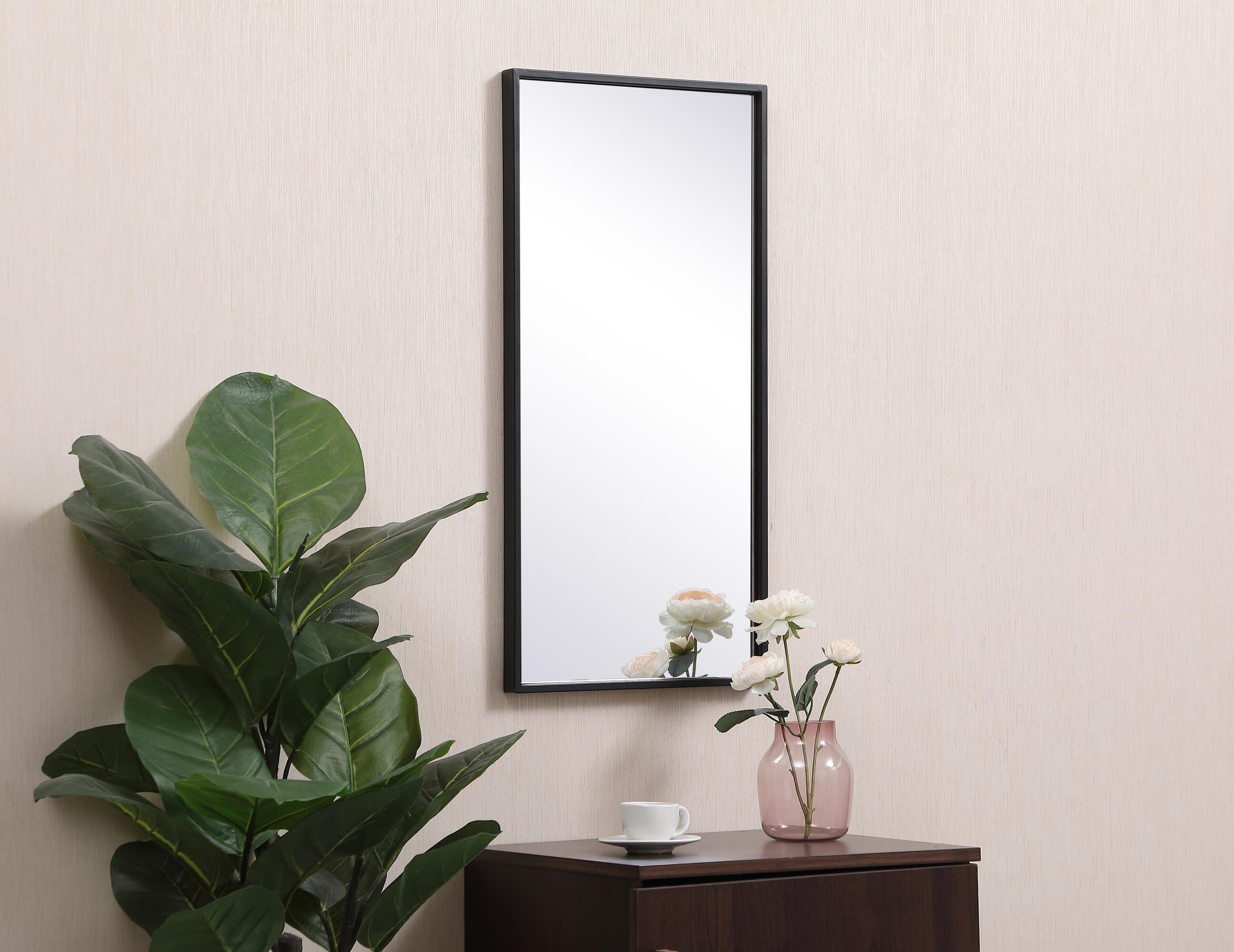 Dimensions Length: 28" Width: 1" Height: 14" Depth: 1" Specifications Product Type: Vanity Mirrors Wire Included: No Harware Material: Metal Fixture Material: Metal and MDF Product Shape: Rectangle Assembly Required: No Distressed Finish: No Mirror Frame Shape: Rectangle Mirror Hanging Orientation: Vertical and Horizontal Mirror Mounting: Metal Inset hanger Mirror Type: clear mirror Frameless: No Weight: 9 Product Warranty: 1 year limited Shipment type: Small Parcel