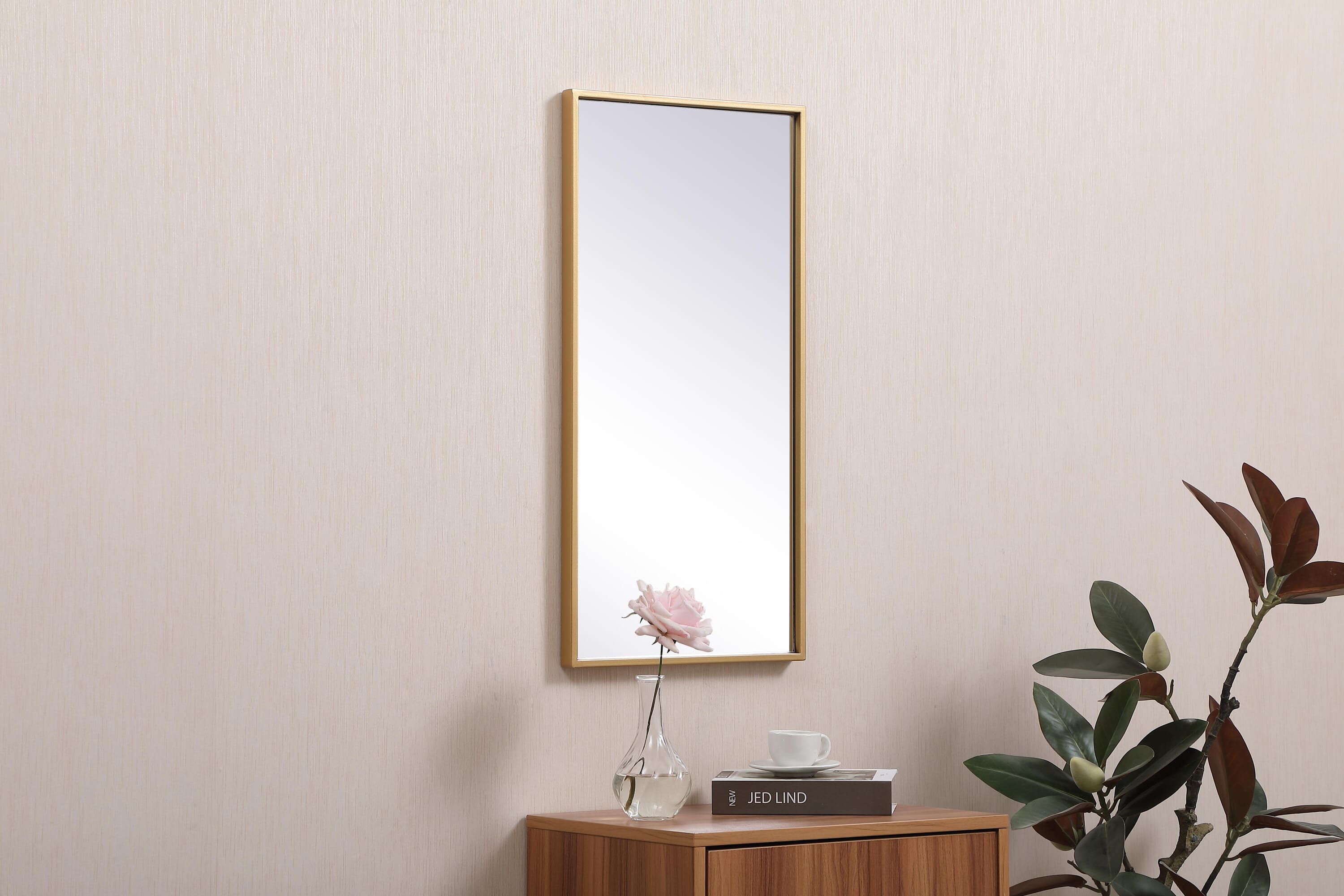 Dimensions Length: 28" Width: 1" Height: 14" Depth: 1" Specifications Product Type: Vanity Mirrors Wire Included: No Harware Material: Metal Fixture Material: Metal and MDF Product Shape: Rectangle Assembly Required: No Distressed Finish: No Mirror Frame Shape: Rectangle Mirror Hanging Orientation: Vertical and Horizontal Mirror Mounting: Metal Inset hanger Mirror Type: clear mirror Frameless: No Weight: 9 Product Warranty: 1 year limited Shipment type: Small Parcel