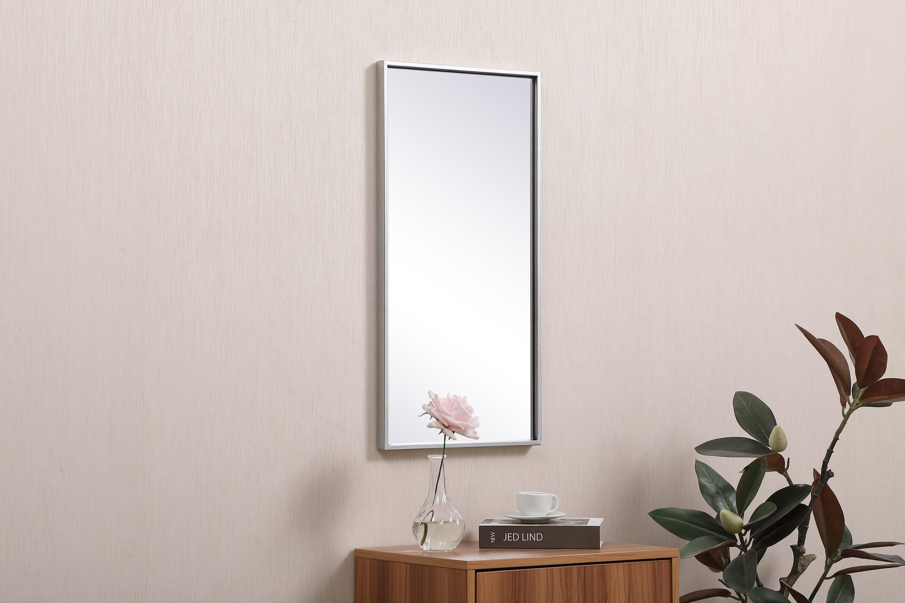 Dimensions Length: 28" Width: 1" Height: 14" Depth: 1" Specifications Product Type: Vanity Mirrors Wire Included: No Harware Material: Metal Fixture Material: Metal and MDF Product Shape: Rectangle Assembly Required: No Distressed Finish: No Mirror Frame Shape: Rectangle Mirror Hanging Orientation: Vertical and Horizontal Mirror Mounting: Metal Inset hanger Mirror Type: clear mirror Frameless: No Weight: 9 Product Warranty: 1 year limited Shipment type: Small Parcel