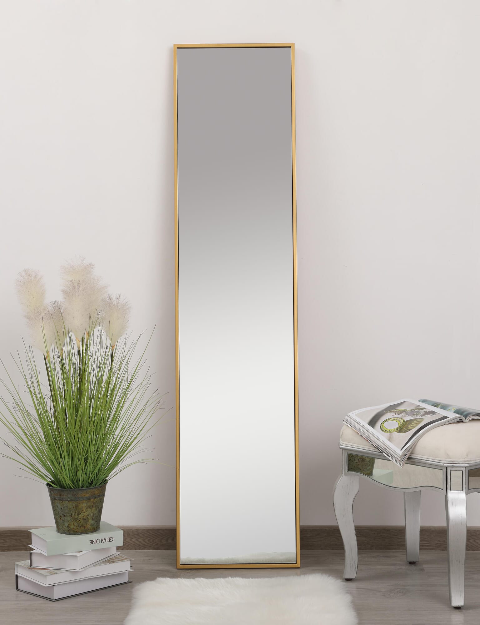 Dimensions Length: 14" Width: 1" Height: 60" Depth: 1" Specifications Product Type: Vanity Mirrors Wire Included: No Fixture Material: Metal, Glass, and Wood Product Shape: Rectangle Assembly Required: No Mirror Frame Shape: rectangle Mirror Hanging Orientation: Vertical and Horizontal Mirror Mounting: Metal Inset hanger Mirror Type: Clear mirror Frameless: No Weight: 25.6 Product Warranty: 1 year limited Shipment type: Small Parcel
