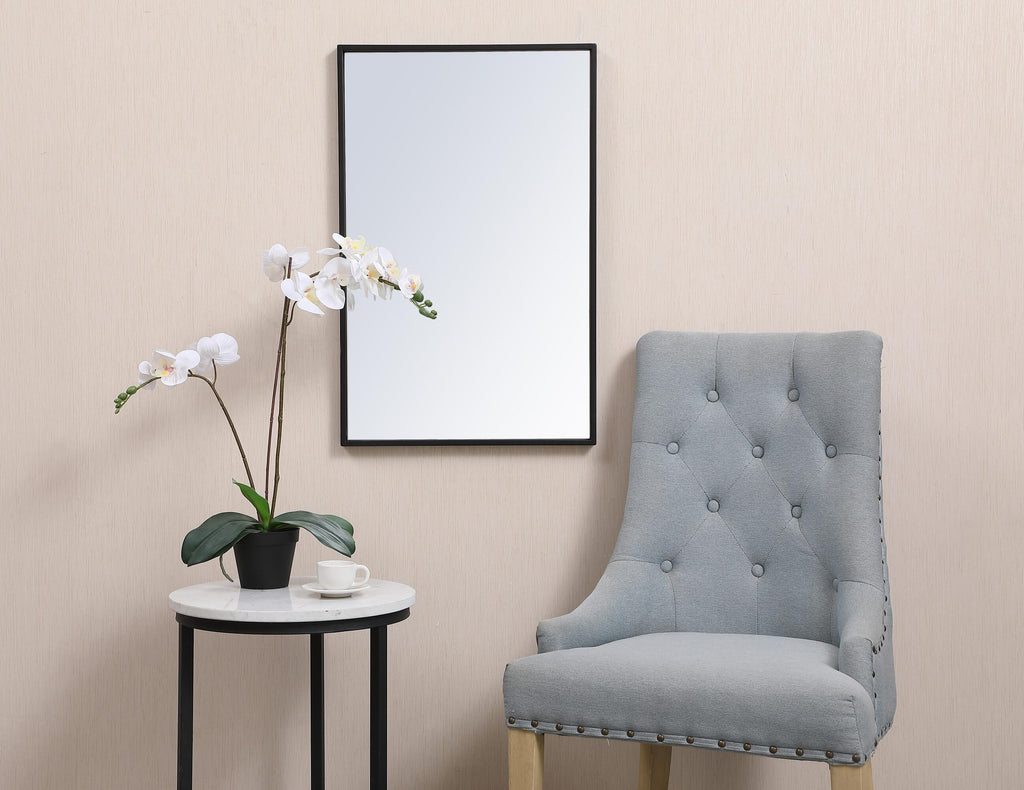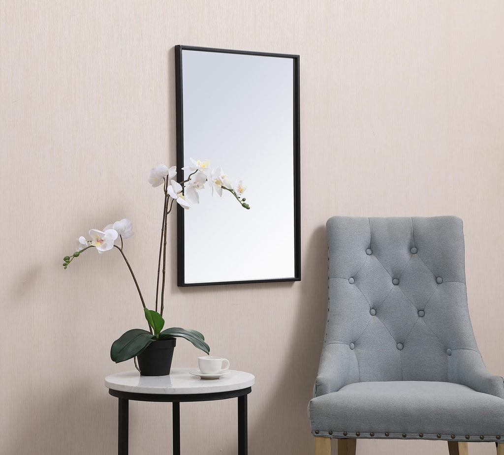 Dimensions Length: 28" Width: 1" Height: 18" Depth: 1" Specifications Product Type: Vanity Mirrors Wire Included: No Harware Material: Metal Fixture Material: Metal and MDF Product Shape: Rectangle Assembly Required: No Distressed Finish: No Mirror Frame Shape: Rectangle Mirror Hanging Orientation: Vertical and Horizontal Mirror Mounting: Metal Inset hanger Mirror Type: clear mirror Frameless: No Weight: 11.3 Product Warranty: 1 year limited Shipment type: Small Parcel