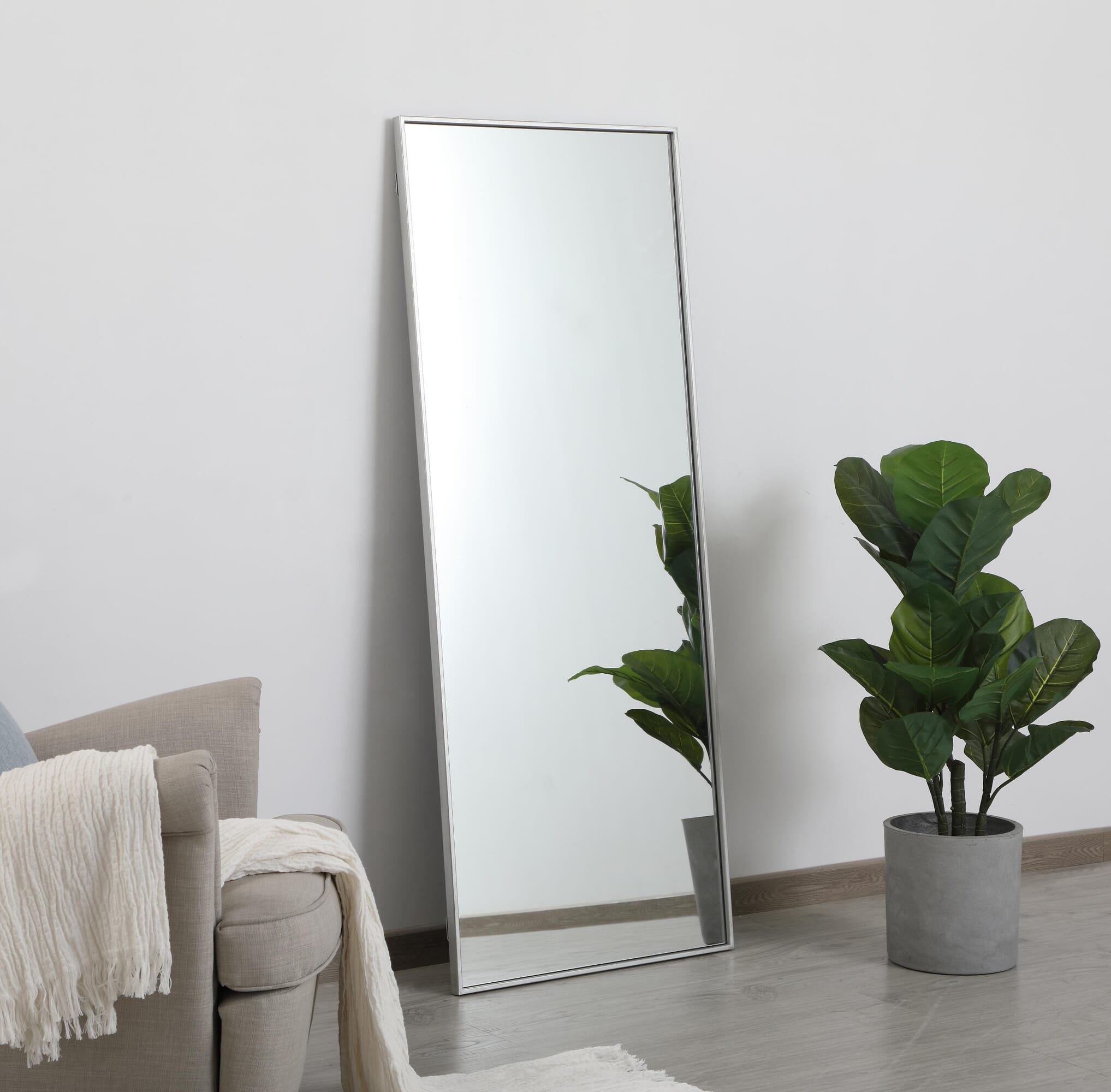 Dimensions Length: 24" Width: 1" Height: 60" Depth: 1" Specifications Product Type: Vanity Mirrors Wire Included: No Fixture Material: Metal, Glass, and Wood Product Shape: Rectangle Assembly Required: No Mirror Frame Shape: rectangle Mirror Hanging Orientation: Vertical and Horizontal Mirror Mounting: Metal Inset hanger Mirror Type: Clear mirror Frameless: No Weight: 34.6 Product Warranty: 1 year limited Shipment type: Oversized Ground