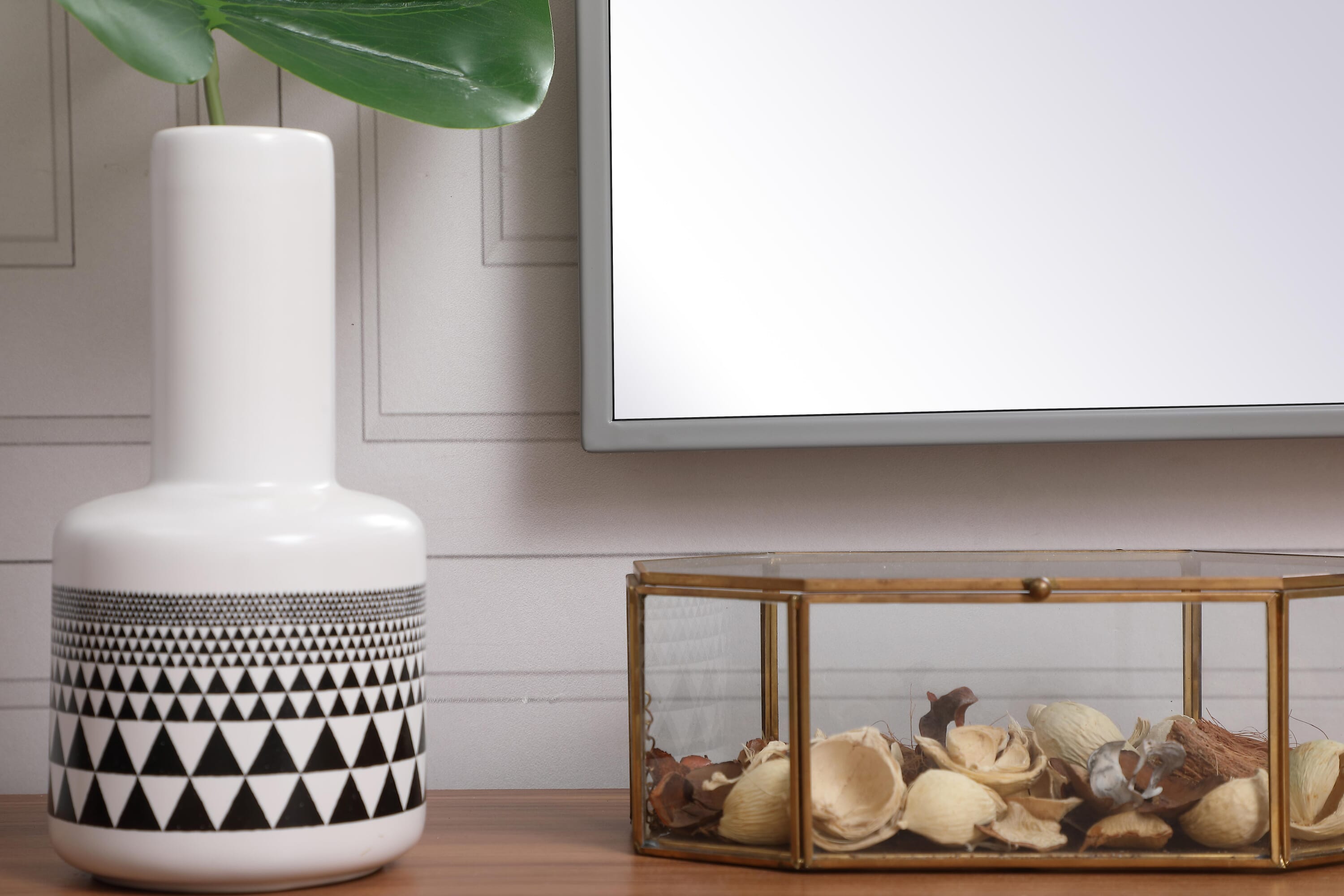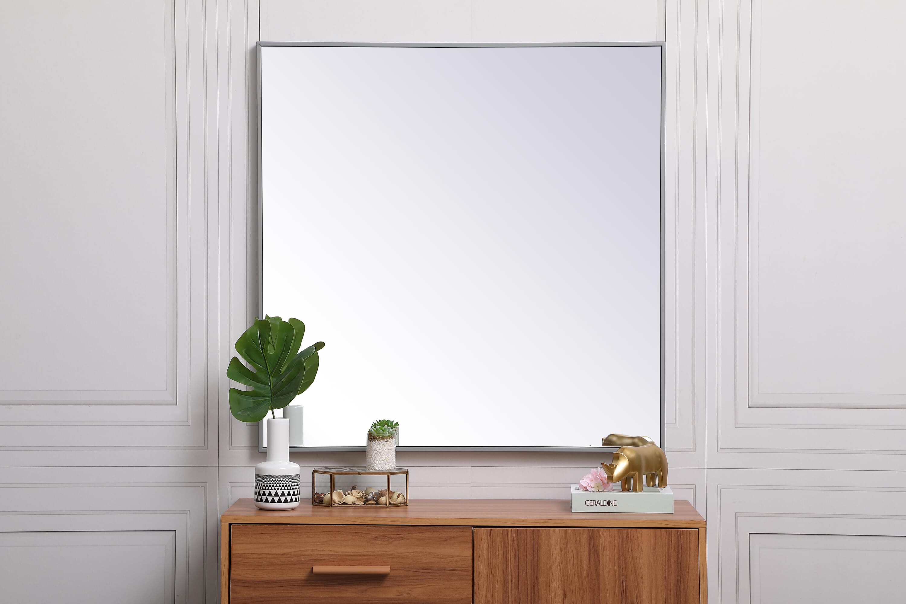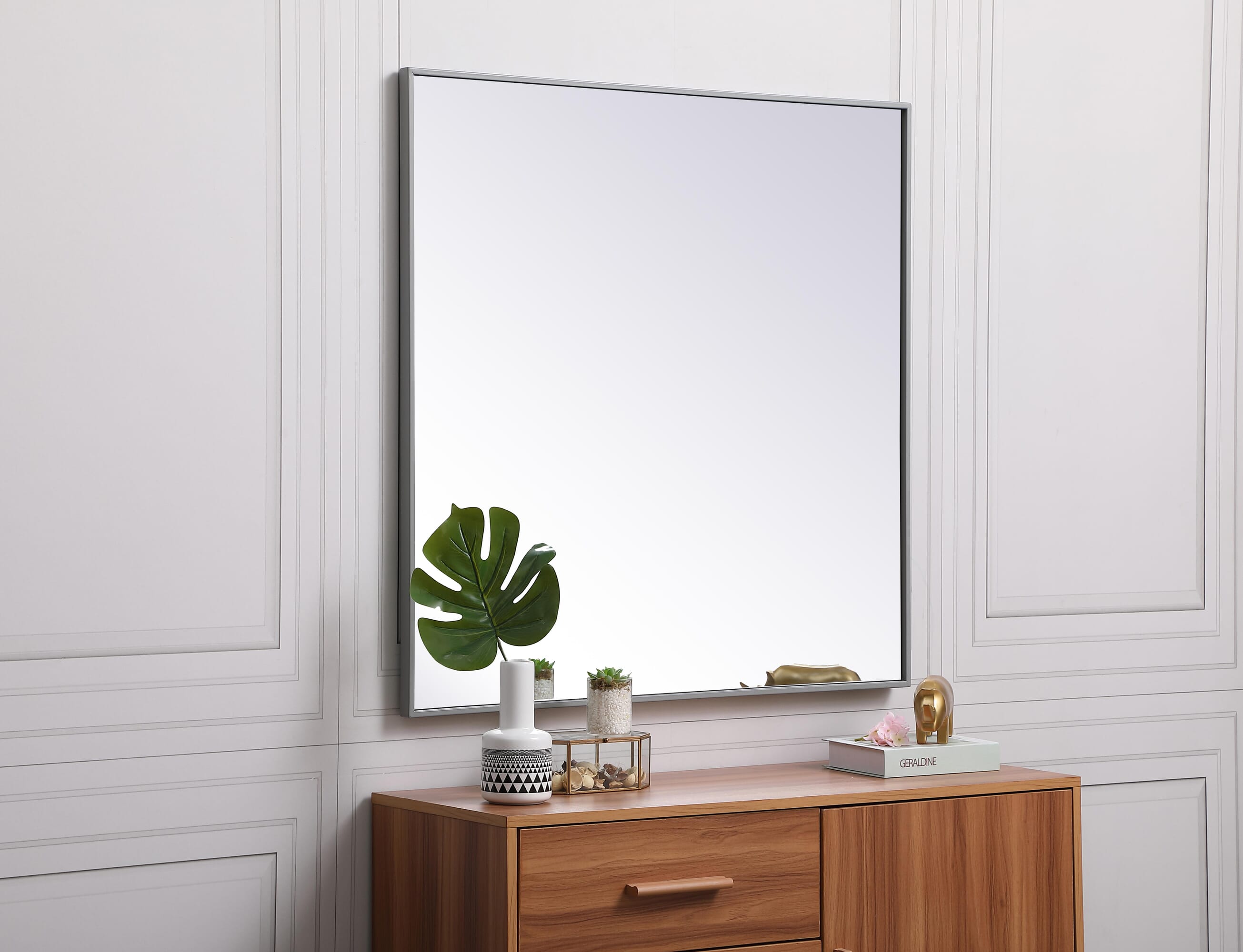 Dimensions Length: 36" Width: 1" Height: 36" Depth: 1" Specifications Product Type: Vanity Mirrors Wire Included: No Harware Material: metal Fixture Material: Metal and MDF Product Shape: Rectangle Assembly Required: No Distressed Finish: No Mirror Frame Shape: Rectangle Mirror Hanging Orientation: Vertical Mirror Mounting: Metal Inset hanger Mirror Type: clear mirror Frameless: No Weight: 26.3 Product Warranty: 1 year limited Shipment type: Small Parcel