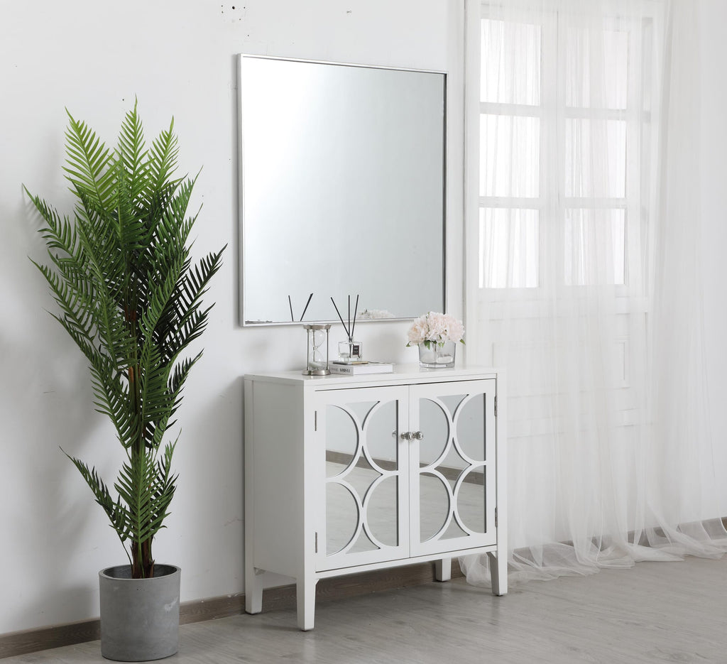 Dimensions Length: 36" Width: 1" Height: 36" Depth: 1" Specifications Product Type: Vanity Mirrors Wire Included: No Fixture Material: Metal, Glass, and Wood Product Shape: Square Assembly Required: No Mirror Frame Shape: square Mirror Hanging Orientation: Vertical and Horizontal Mirror Mounting: Metal Inset hanger Mirror Type: Clear mirror Frameless: No Weight: 22.44 Product Warranty: 1 year limited Shipment type: Oversized Ground