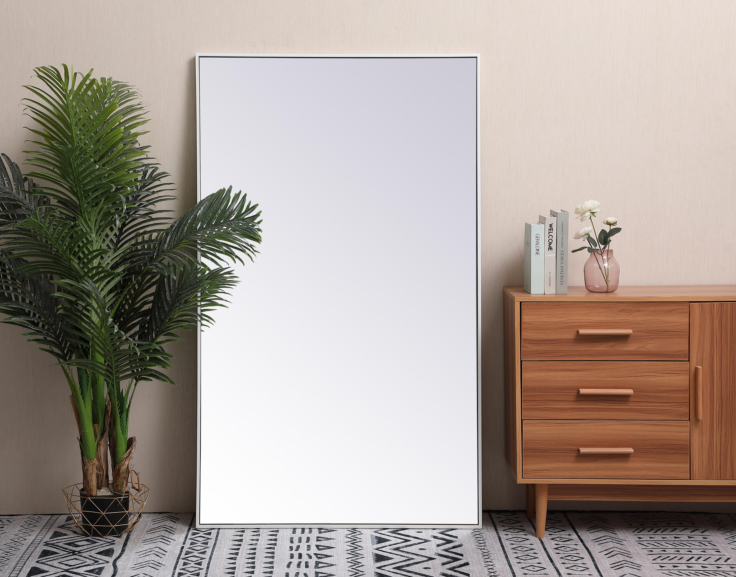 Dimensions Length: 36" Width: 1" Height: 60" Depth: 1" Specifications Product Type: Vanity Mirrors Wire Included: No Harware Material: metal Fixture Material: Metal and MDF Product Shape: Rectangle Assembly Required: No Distressed Finish: No Mirror Frame Shape: Rectangle Mirror Hanging Orientation: Vertical Mirror Mounting: Metal Inset hanger Mirror Type: clear mirror Frameless: No Weight: 42.5 Product Warranty: 1 year limited Shipment type: LTL