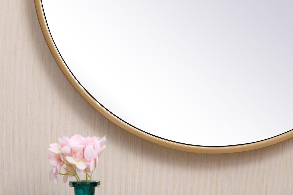 Dimensions Length: 18" Width: 1" Height: 18" Depth: 1" Specifications Product Type: Vanity Mirrors Wire Included: No Harware Material: metal Fixture Material: Metal and MDF Product Shape: Round Assembly Required: No Distressed Finish: No Mirror Frame Shape: Round Mirror Hanging Orientation: Vertical and Horizontal Mirror Mounting: Metal Inset hanger Mirror Type: clear mirror Frameless: No Weight: 6.3 Product Warranty: 1 year limited Shipment type: Small Parcel