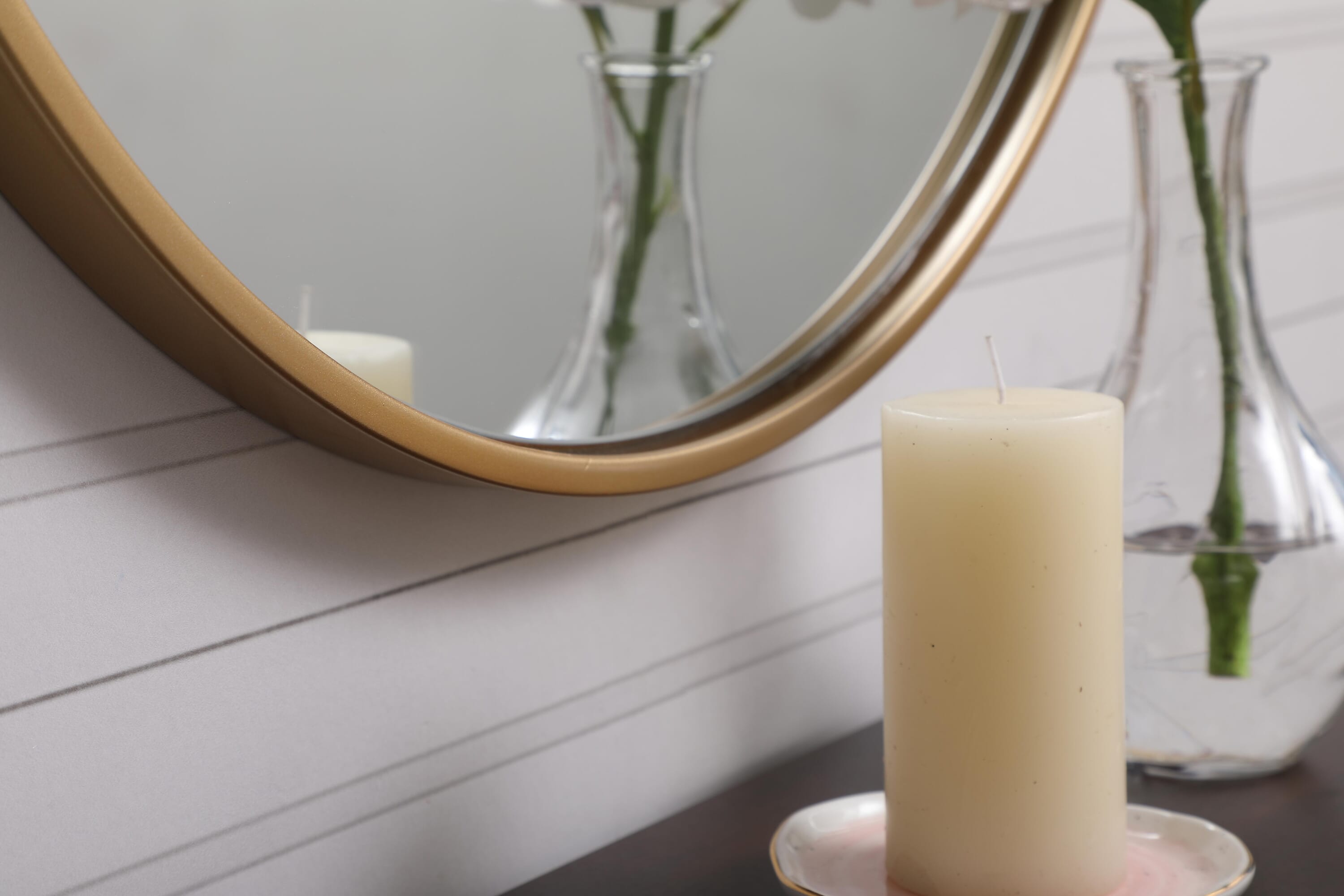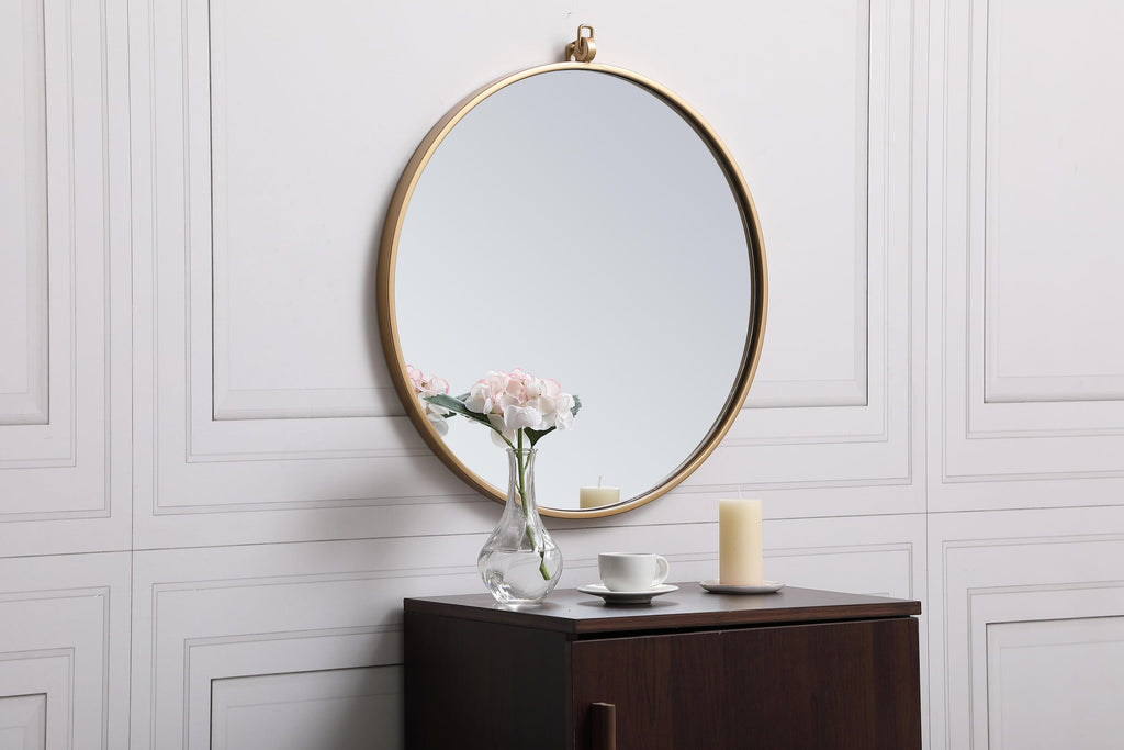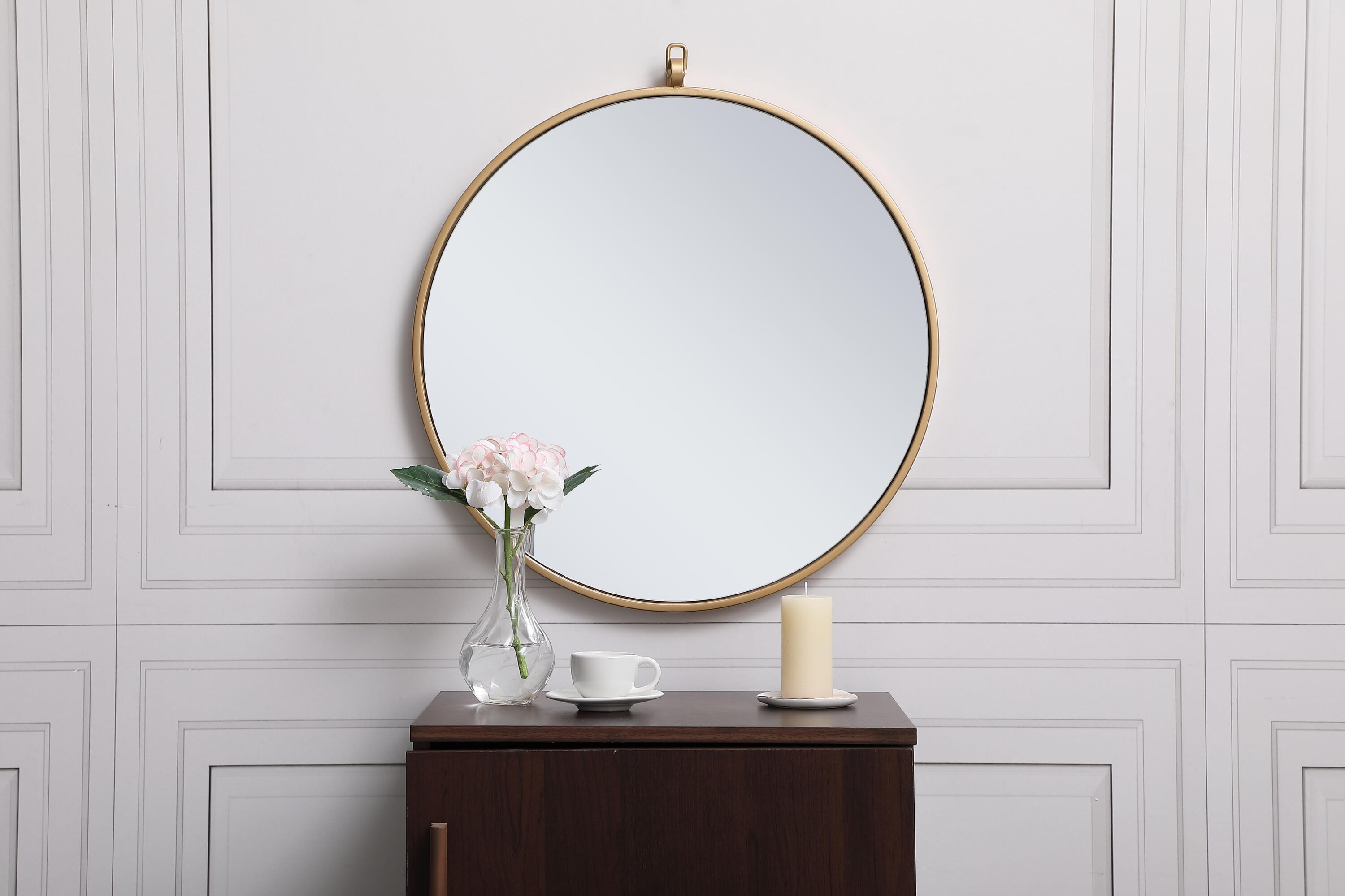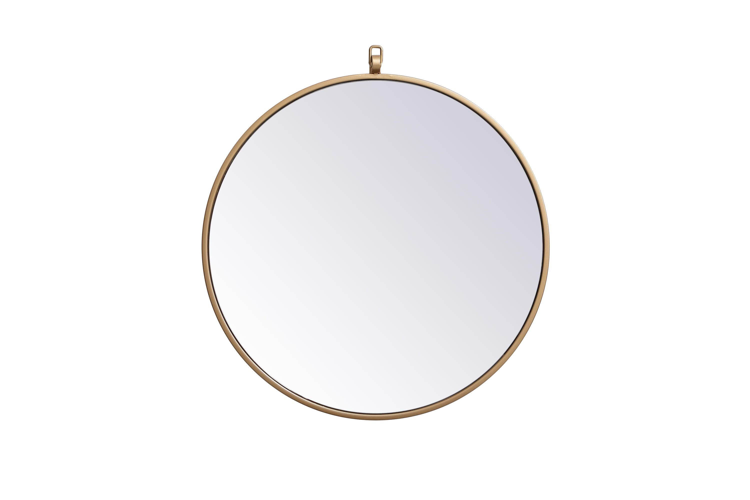 Dimensions Length: 21" Width: 1" Height: 21" Depth: 1" Specifications Product Type: Vanity Mirrors Wire Included: No Harware Material: metal Fixture Material: Metal and MDF Product Shape: Round Assembly Required: No Distressed Finish: No Mirror Frame Shape: Round Mirror Hanging Orientation: Vertical and Horizontal Mirror Mounting: Metal Inset hanger Mirror Type: clear mirror Frameless: No Weight: 8 Product Warranty: 1 year limited Shipment type: Small Parcel
