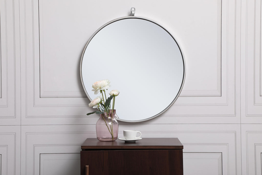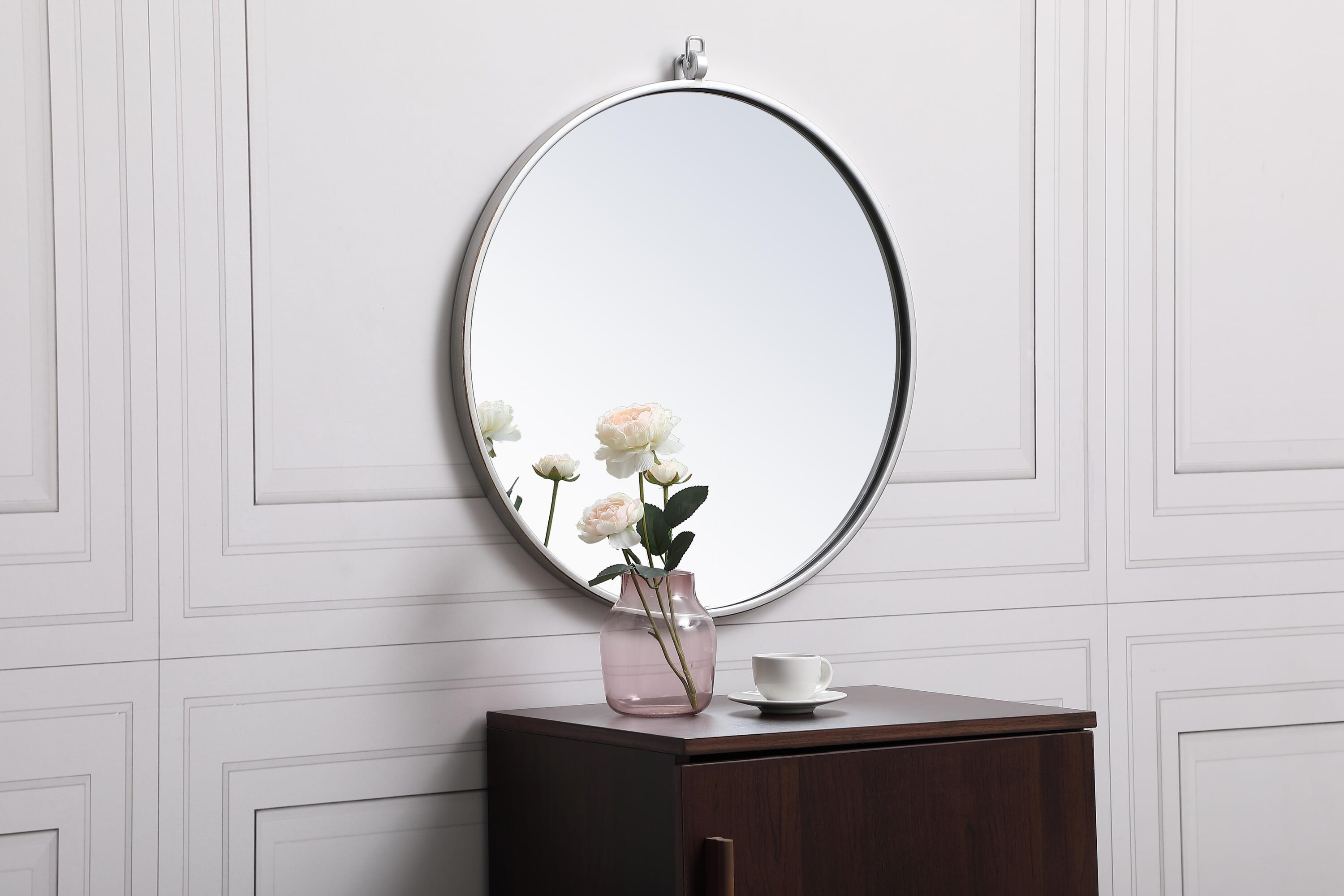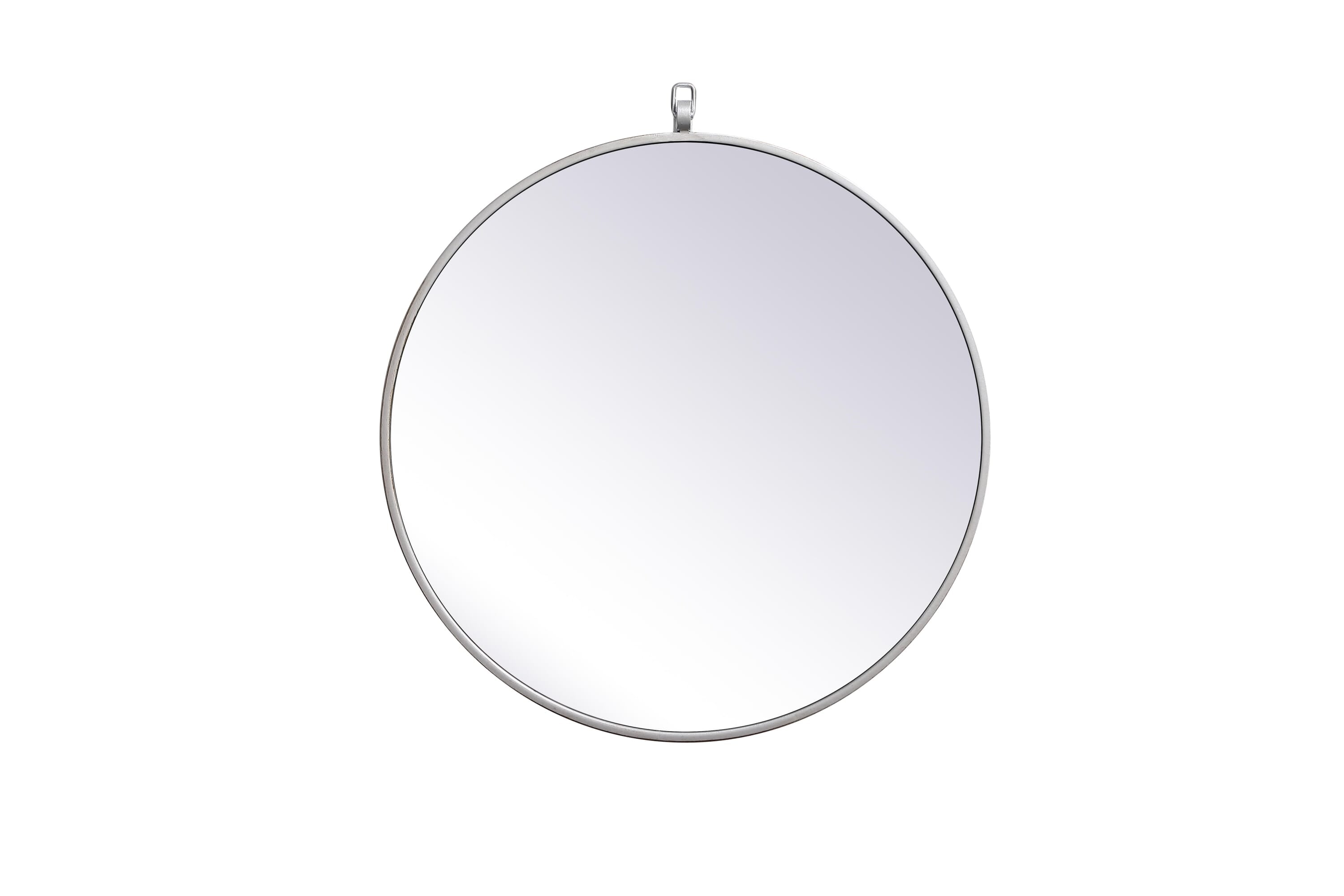 Dimensions Length: 21" Width: 1" Height: 21" Depth: 1" Specifications Product Type: Vanity Mirrors Wire Included: No Harware Material: metal Fixture Material: Metal and MDF Product Shape: Round Assembly Required: No Distressed Finish: No Mirror Frame Shape: Round Mirror Hanging Orientation: Vertical and Horizontal Mirror Mounting: Metal Inset hanger Mirror Type: clear mirror Frameless: No Weight: 8 Product Warranty: 1 year limited Shipment type: Small Parcel