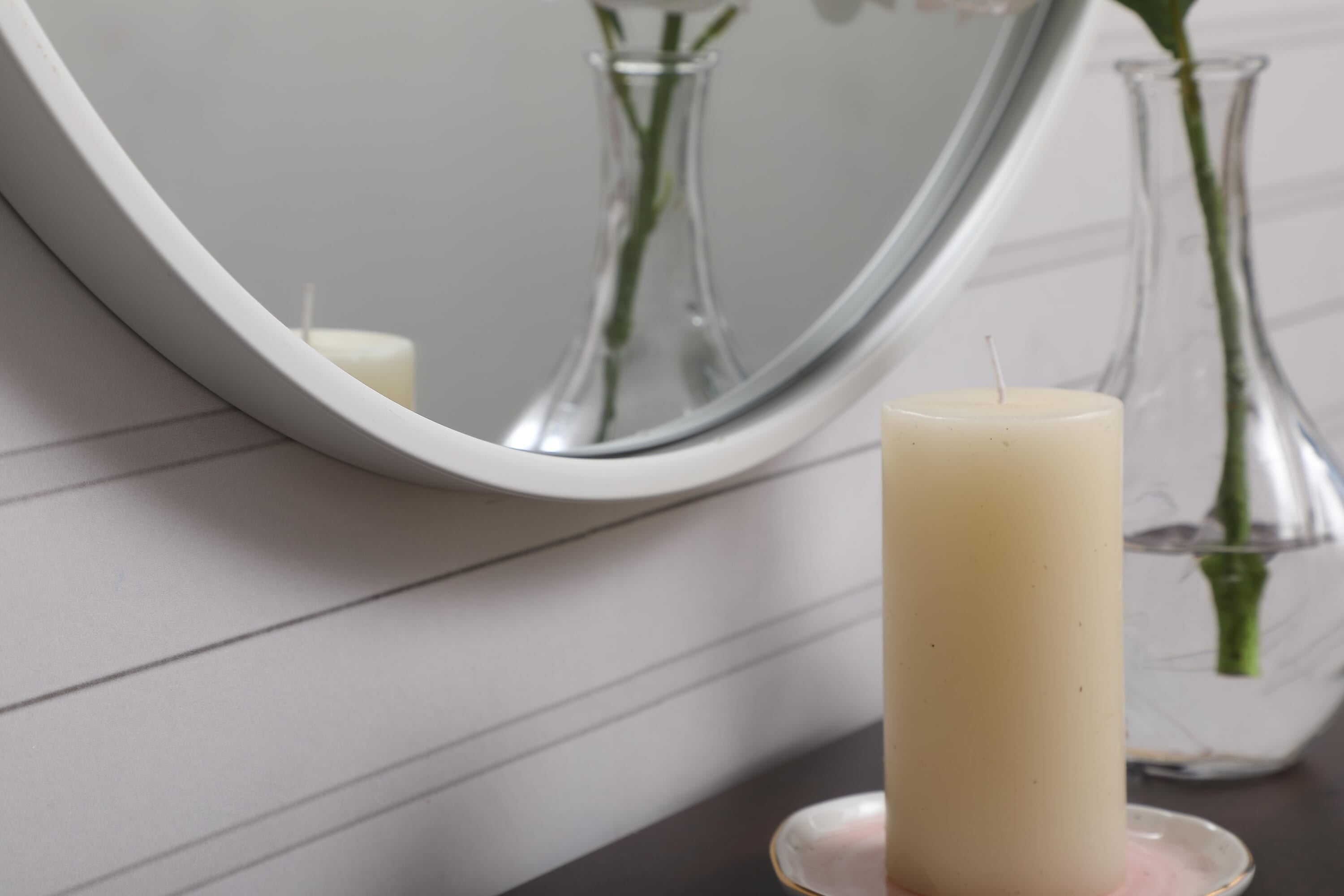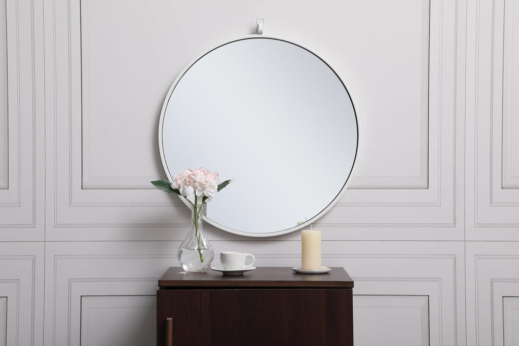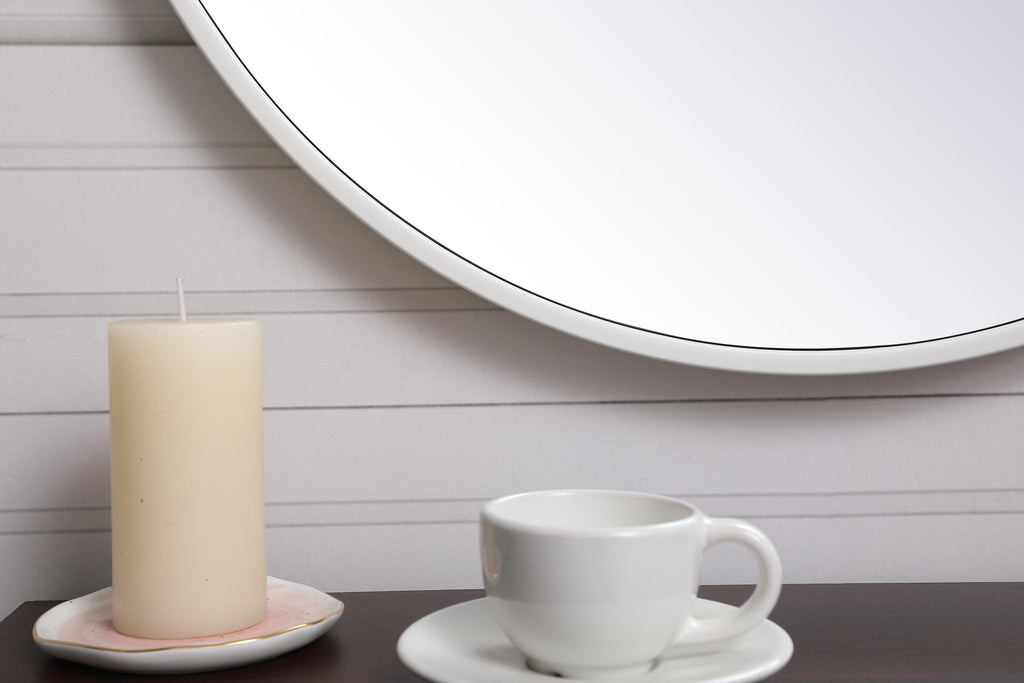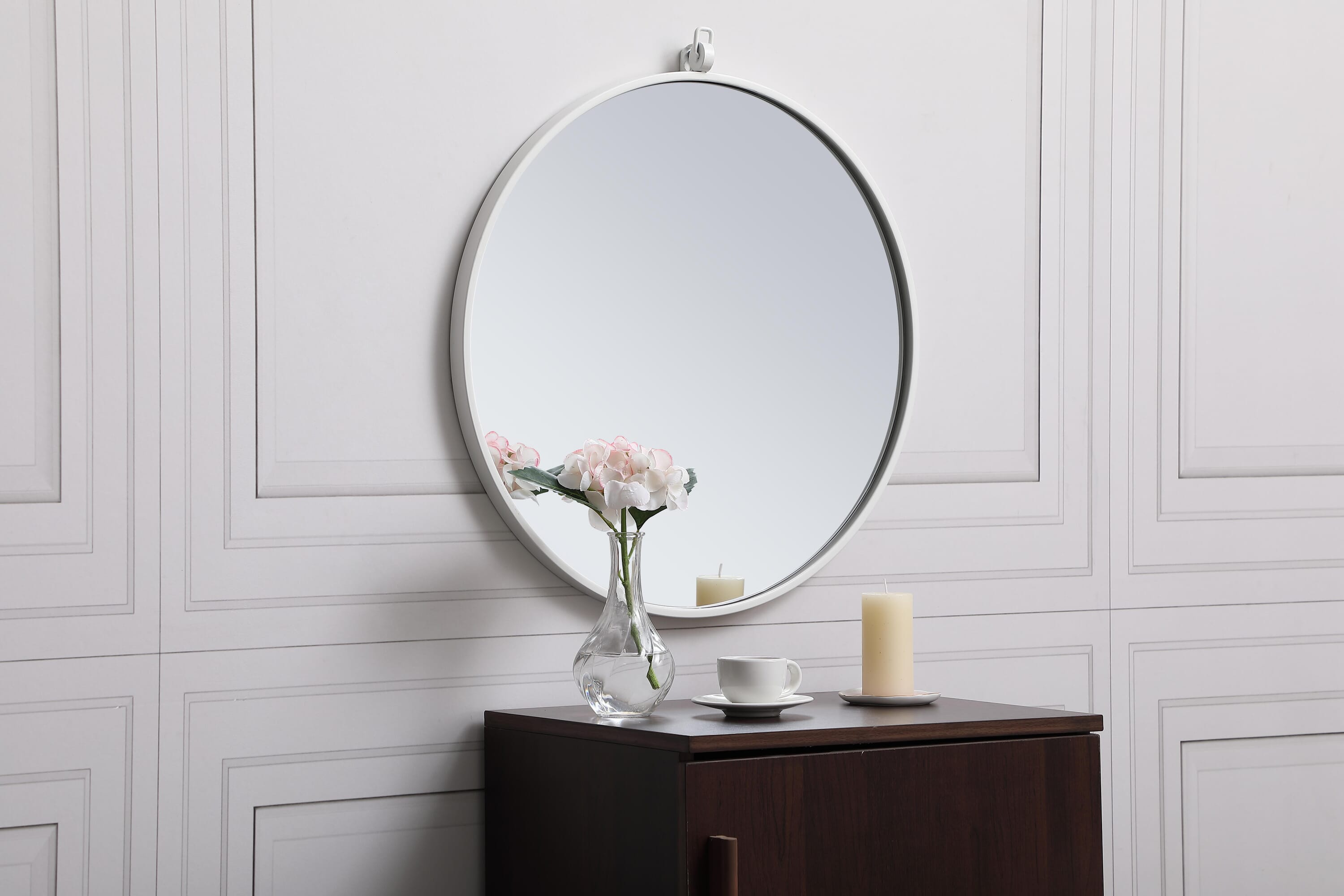 Dimensions Length: 21" Width: 1" Height: 21" Depth: 1" Specifications Product Type: Vanity Mirrors Wire Included: No Harware Material: metal Fixture Material: Metal and MDF Product Shape: Round Assembly Required: No Distressed Finish: No Mirror Frame Shape: Round Mirror Hanging Orientation: Vertical and Horizontal Mirror Mounting: Metal Inset hanger Mirror Type: clear mirror Frameless: No Weight: 8 Product Warranty: 1 year limited Shipment type: Small Parcel