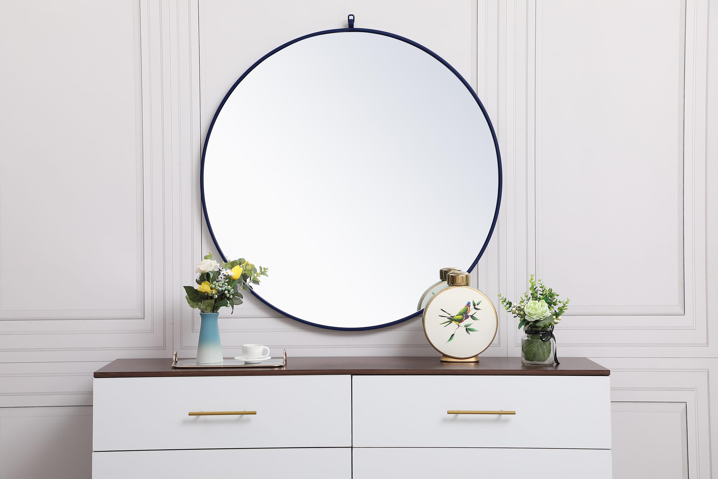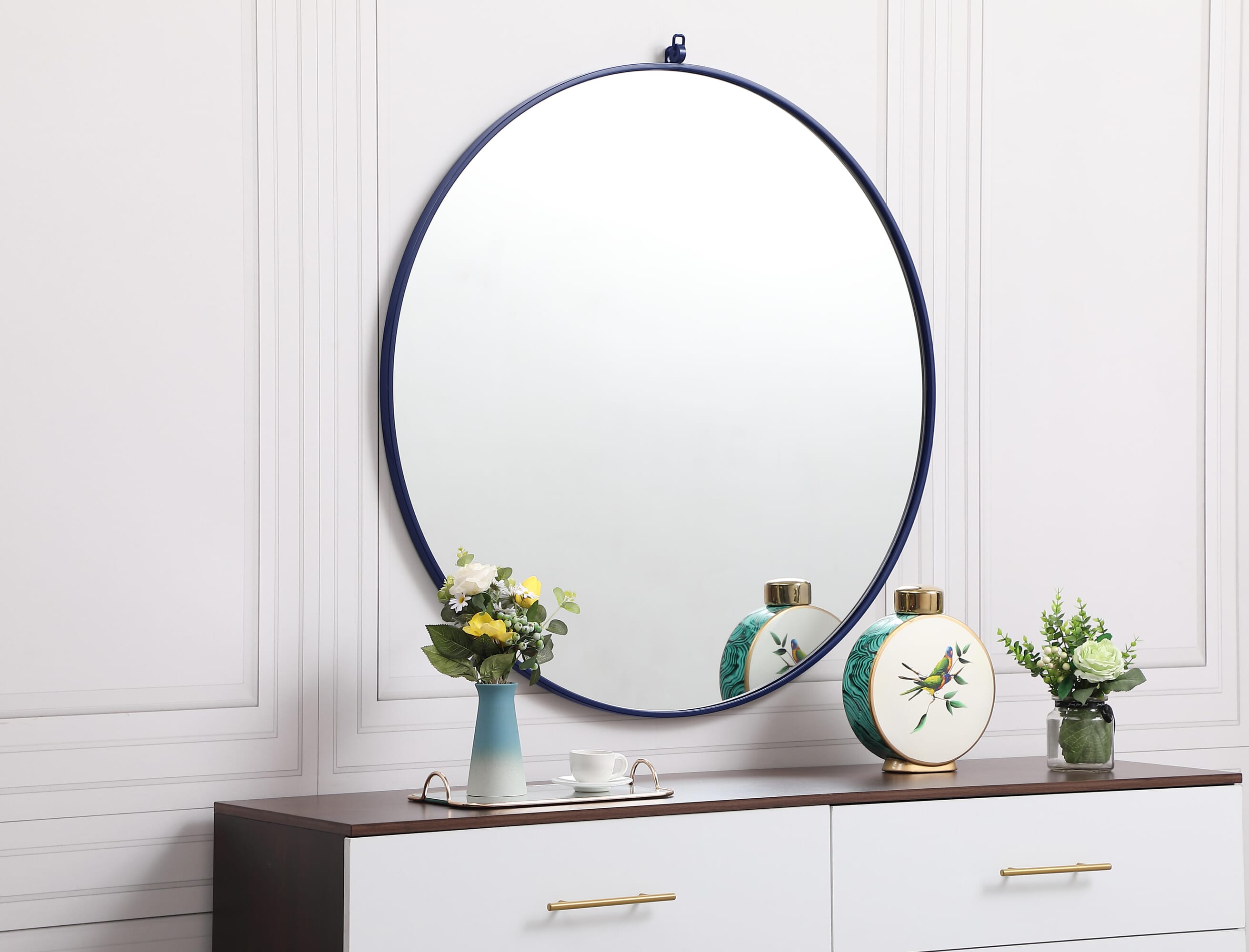 Dimensions Length: 39" Width: 1" Height: 39" Depth: 1" Specifications Product Type: Vanity Mirrors Wire Included: No Harware Material: metal Fixture Material: Metal and MDF Product Shape: Round Assembly Required: No Distressed Finish: No Mirror Frame Shape: Round Mirror Hanging Orientation: Vertical and Horizontal Mirror Mounting: Metal Inset hanger Mirror Type: clear mirror Frameless: No Weight: 24.3 Product Warranty: 1 year limited Shipment type: Oversized Ground