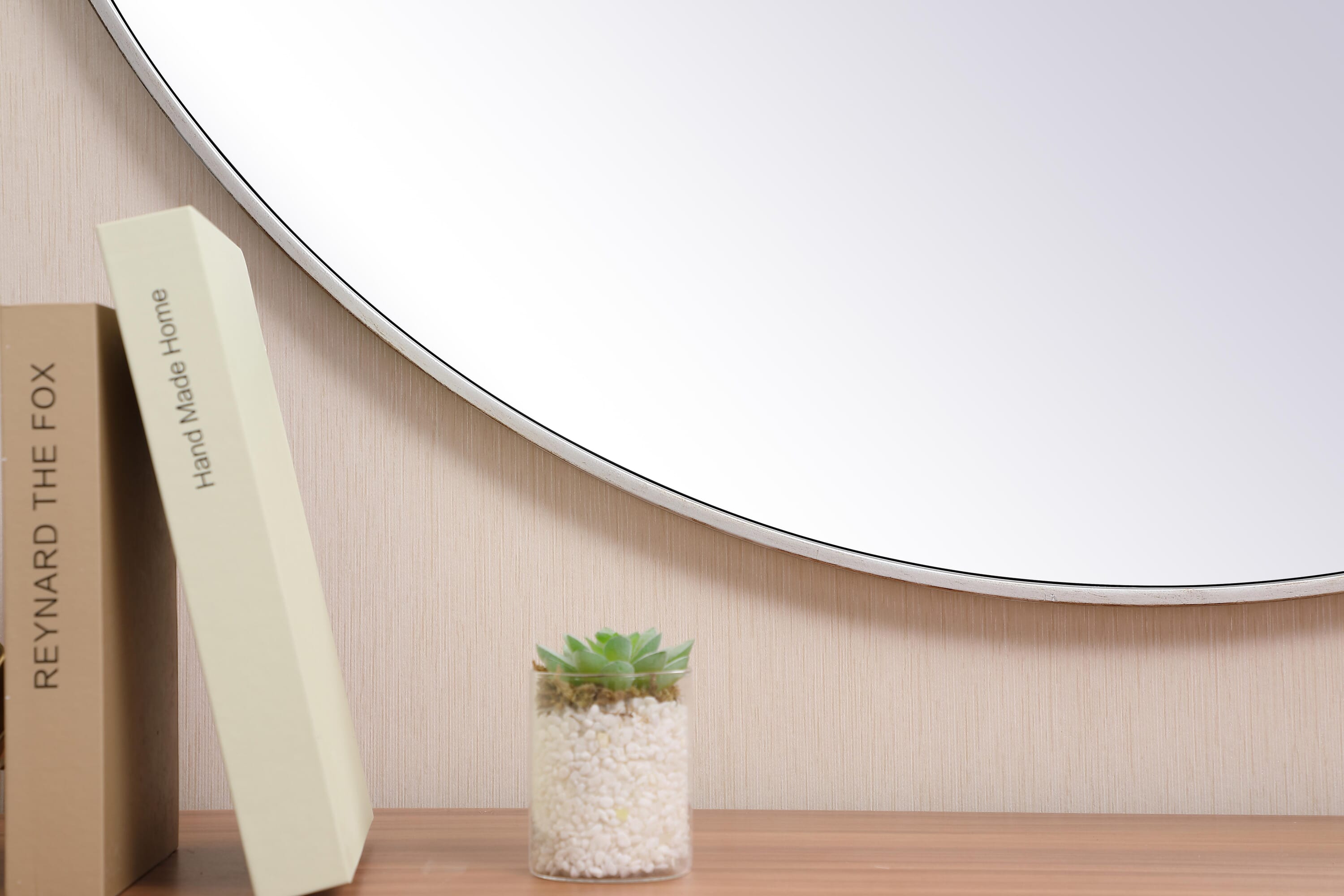 Dimensions Length: 45" Width: 1" Height: 45" Depth: 1" Specifications Product Type: Vanity Mirrors Wire Included: No Harware Material: metal Fixture Material: Metal and MDF Product Shape: Round Assembly Required: No Distressed Finish: No Mirror Frame Shape: Round Mirror Hanging Orientation: Vertical and Horizontal Mirror Mounting: Metal Inset hanger Mirror Type: clear mirror Frameless: No Weight: 31.8 Product Warranty: 1 year limited Shipment type: Oversized Ground