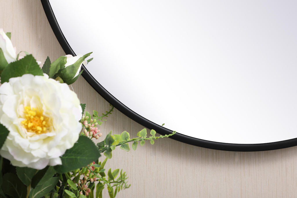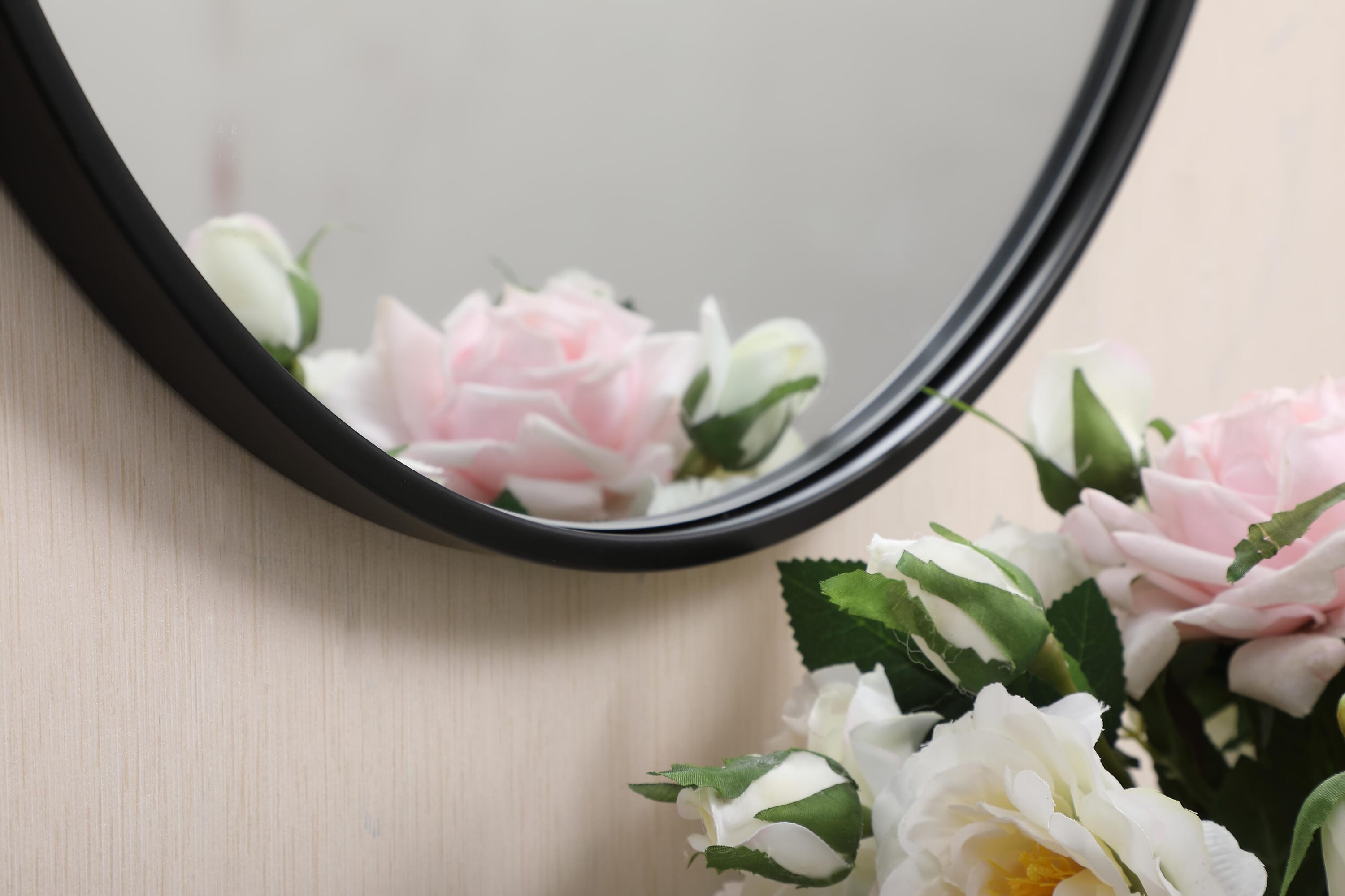Dimensions Length: 21" Width: 1" Height: 21" Depth: 1" Specifications Product Type: Vanity Mirrors Wire Included: No Harware Material: metal Fixture Material: Metal and MDF Product Shape: Round Assembly Required: No Distressed Finish: No Mirror Frame Shape: Round Mirror Hanging Orientation: Vertical and Horizontal Mirror Mounting: Metal Inset hanger Mirror Type: clear mirror Frameless: No Weight: 7.9 Product Warranty: 1 year limited Shipment type: Small Parcel