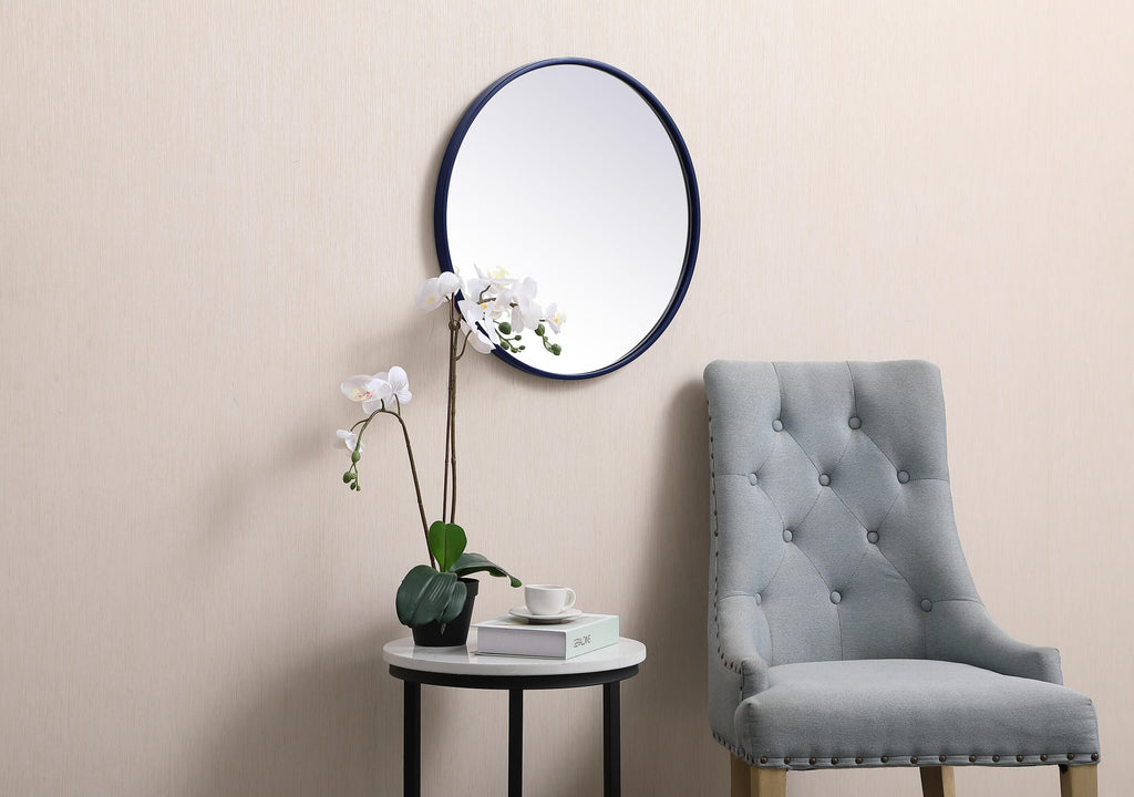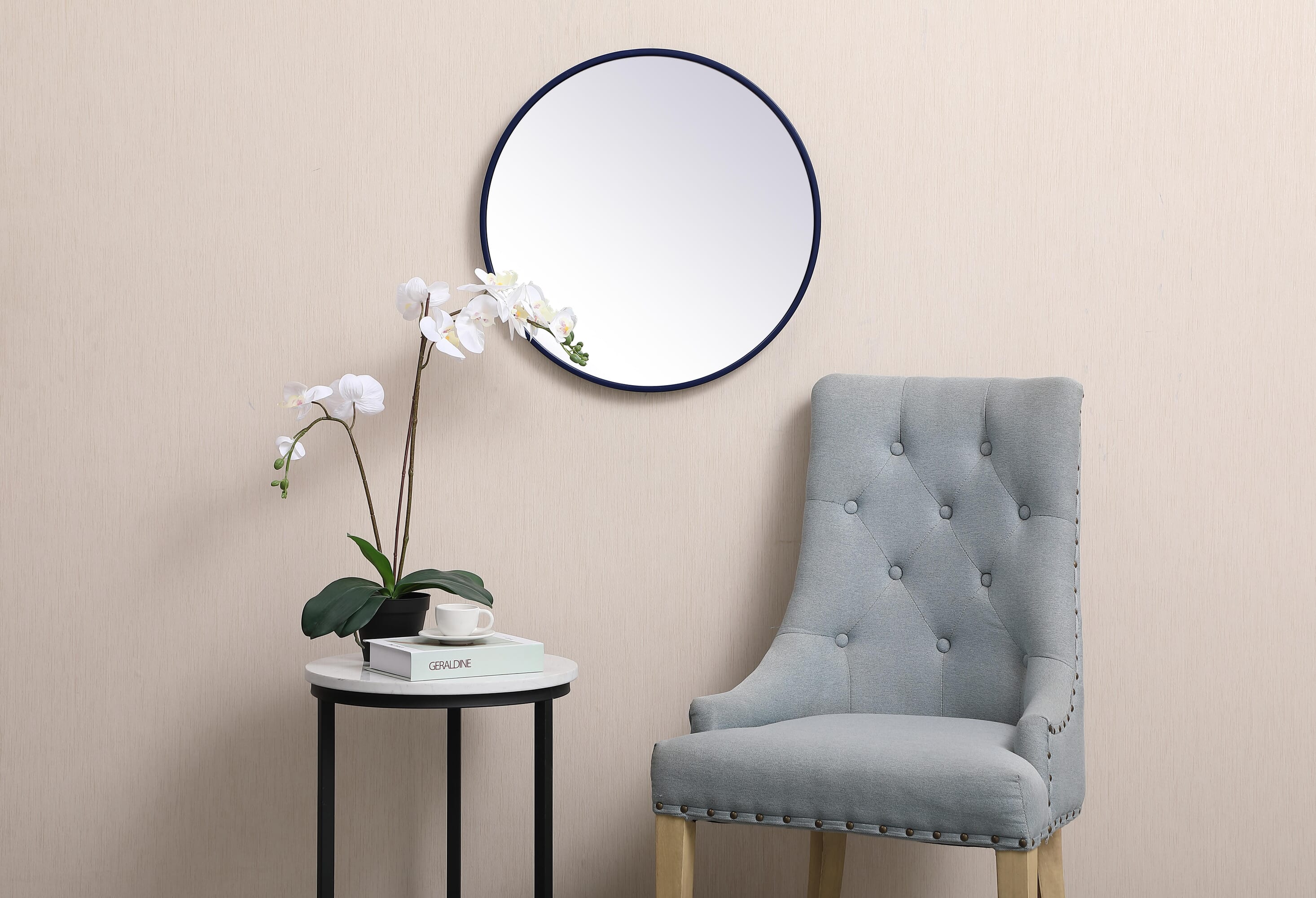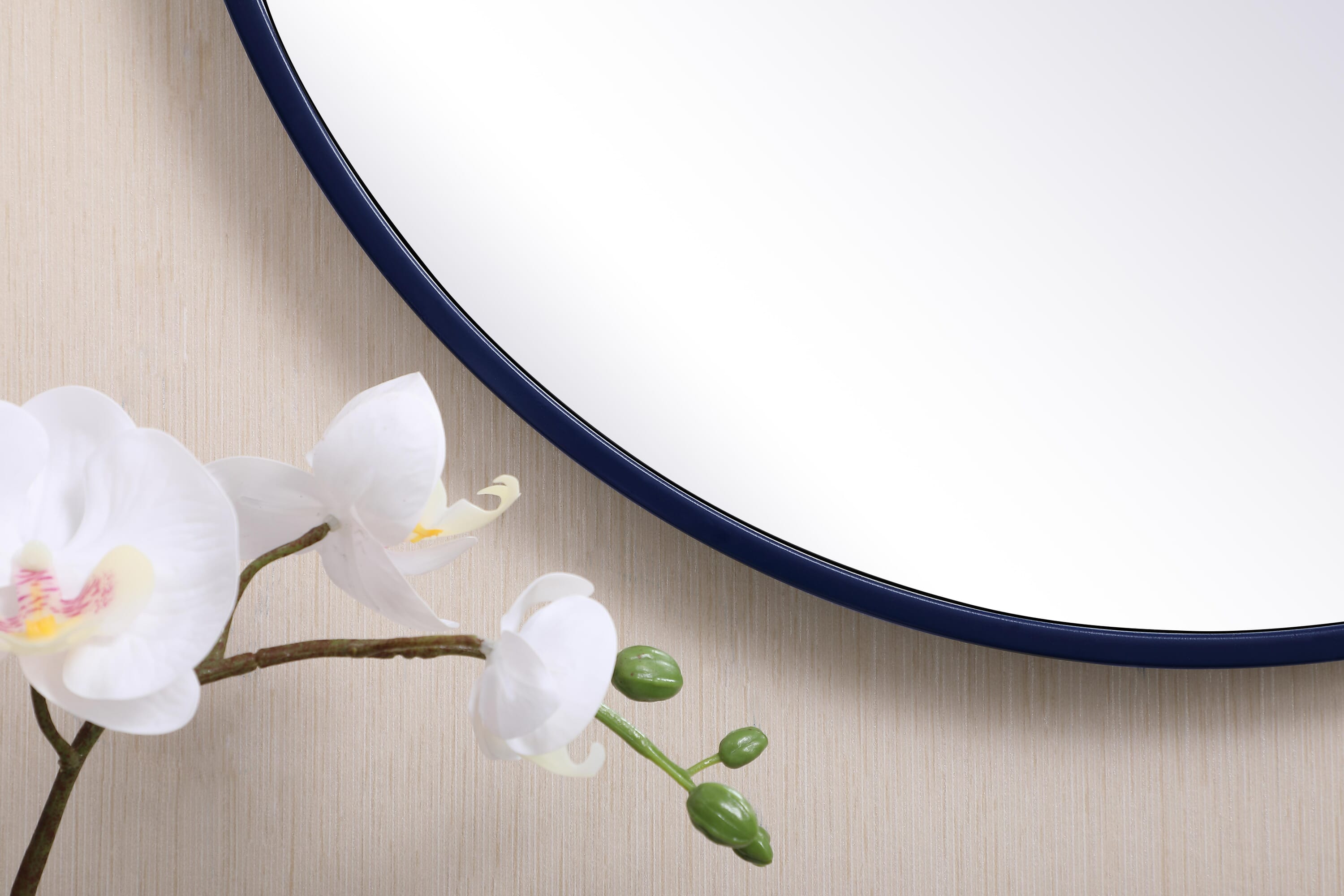 Dimensions Length: 21" Width: 1" Height: 21" Depth: 1" Specifications Product Type: Vanity Mirrors Wire Included: No Harware Material: metal Fixture Material: Metal and MDF Product Shape: Round Assembly Required: No Distressed Finish: No Mirror Frame Shape: Round Mirror Hanging Orientation: Vertical and Horizontal Mirror Mounting: Metal Inset hanger Mirror Type: clear mirror Frameless: No Weight: 7.9 Product Warranty: 1 year limited Shipment type: Small Parcel