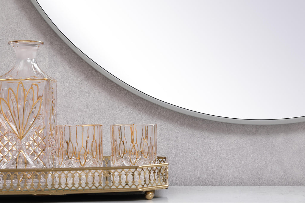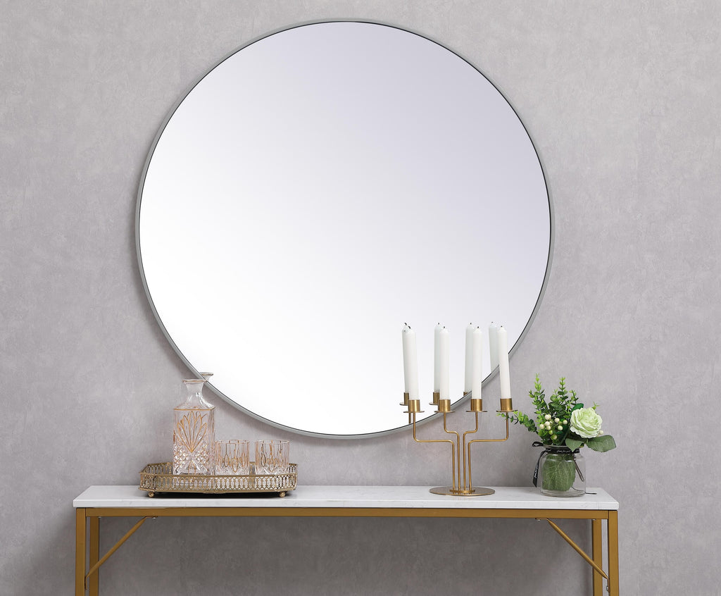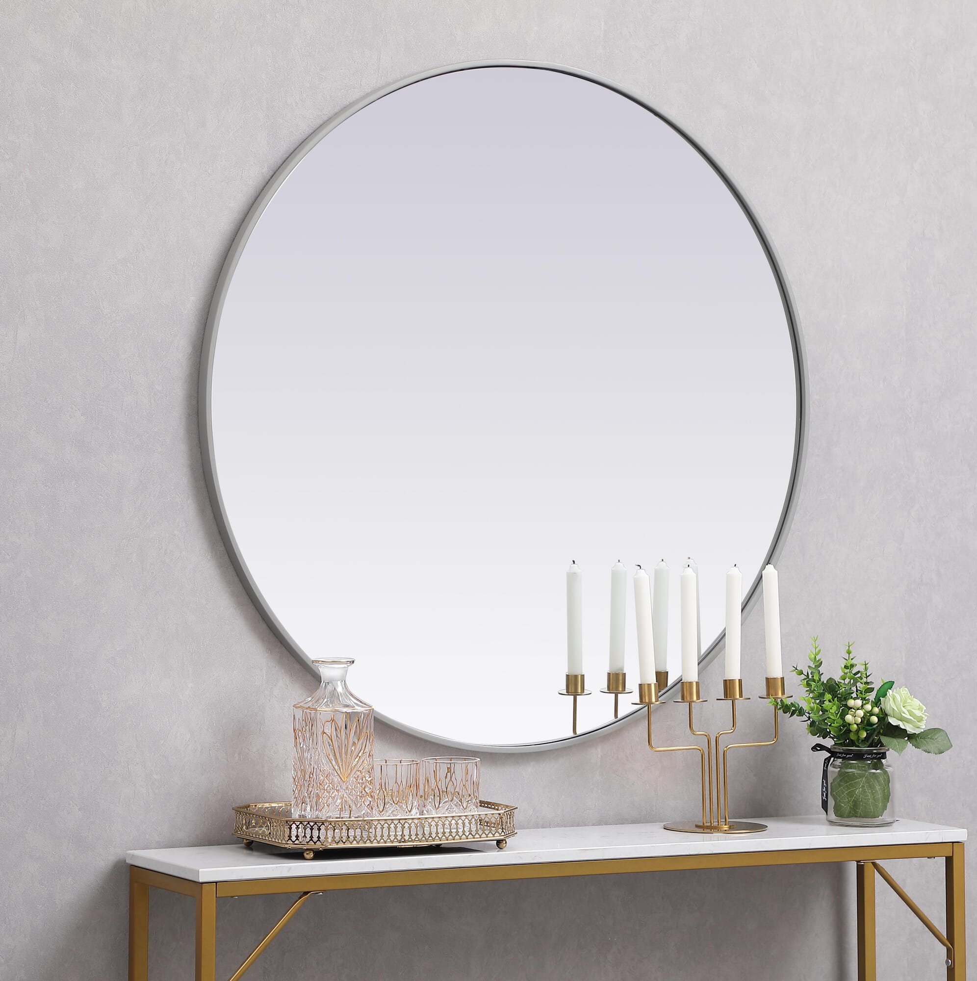 Dimensions Length: 39" Width: 1" Height: 39" Depth: 1" Specifications Product Type: Vanity Mirrors Wire Included: No Harware Material: metal Fixture Material: Metal and MDF Product Shape: Round Assembly Required: No Distressed Finish: No Mirror Frame Shape: Round Mirror Hanging Orientation: Vertical and Horizontal Mirror Mounting: Metal Inset hanger Mirror Type: clear mirror Frameless: No Weight: 24.2 Product Warranty: 1 year limited Shipment type: Oversized Ground