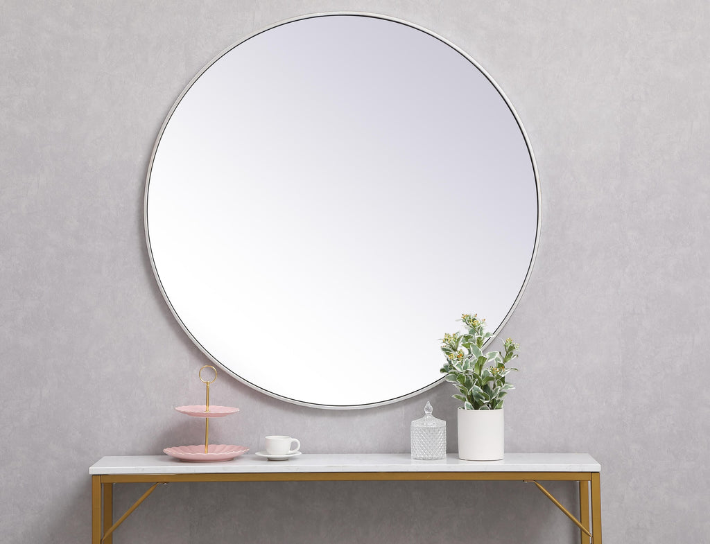 Dimensions Length: 39" Width: 1" Height: 39" Depth: 1" Specifications Product Type: Vanity Mirrors Wire Included: No Harware Material: metal Fixture Material: Metal and MDF Product Shape: Round Assembly Required: No Distressed Finish: No Mirror Frame Shape: Round Mirror Hanging Orientation: Vertical and Horizontal Mirror Mounting: Metal Inset hanger Mirror Type: clear mirror Frameless: No Weight: 24.2 Product Warranty: 1 year limited Shipment type: Oversized Ground