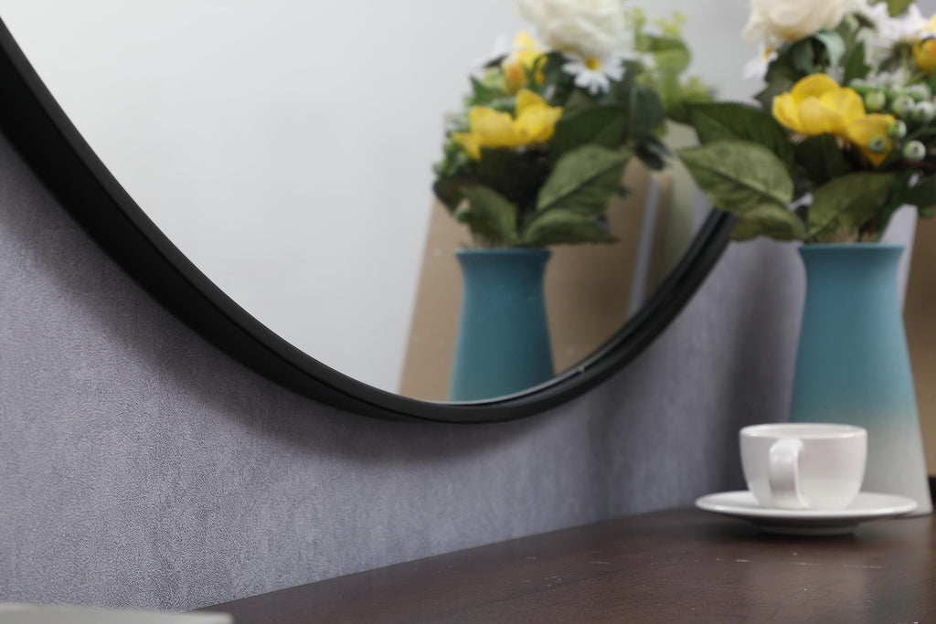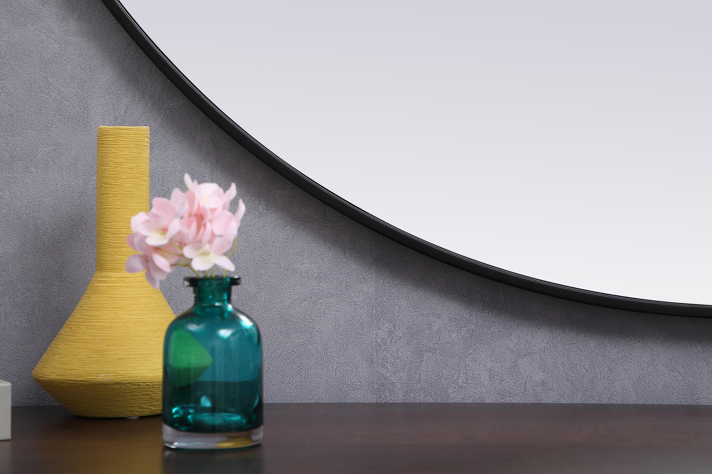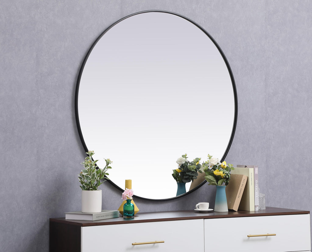 Dimensions Length: 45" Width: 1" Height: 45" Depth: 1" Specifications Product Type: Vanity Mirrors Wire Included: No Harware Material: metal Fixture Material: Metal and MDF Product Shape: Round Assembly Required: No Distressed Finish: No Mirror Frame Shape: Round Mirror Hanging Orientation: Vertical and Horizontal Mirror Mounting: Metal Inset hanger Mirror Type: clear mirror Frameless: No Weight: 31.7 Product Warranty: 1 year limited Shipment type: Oversized Ground