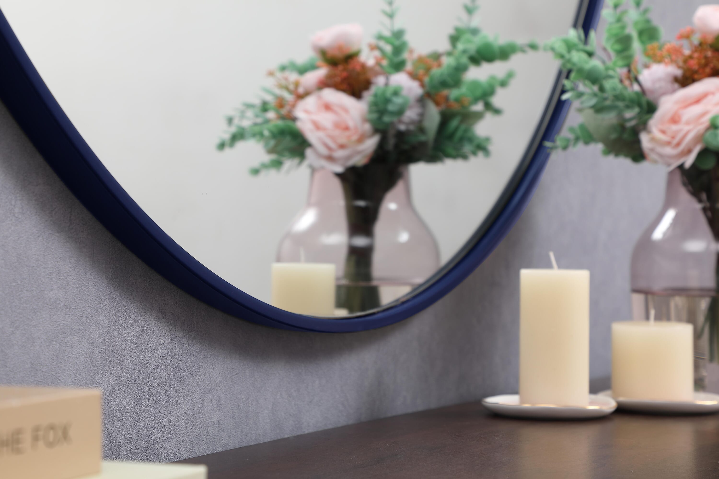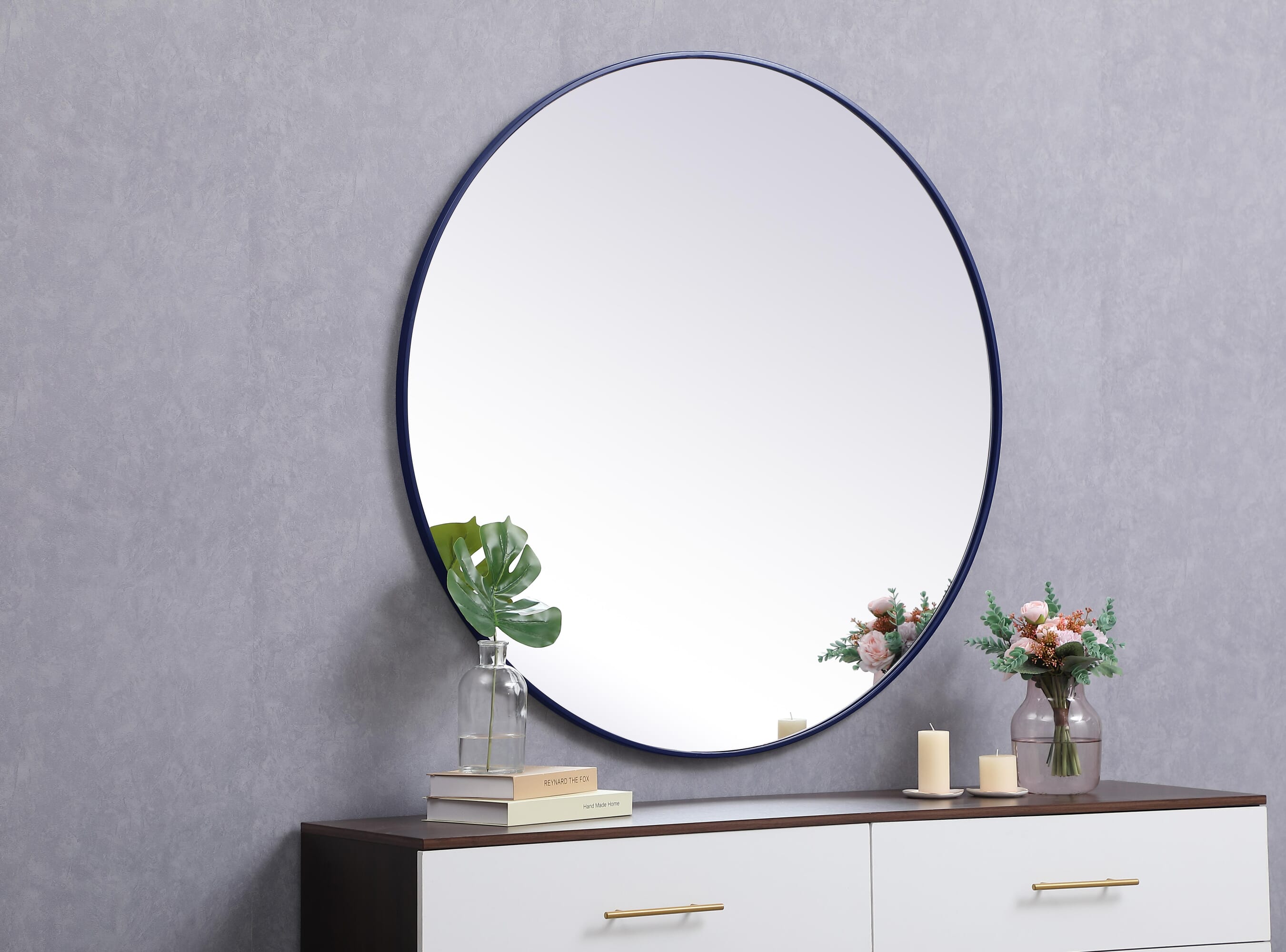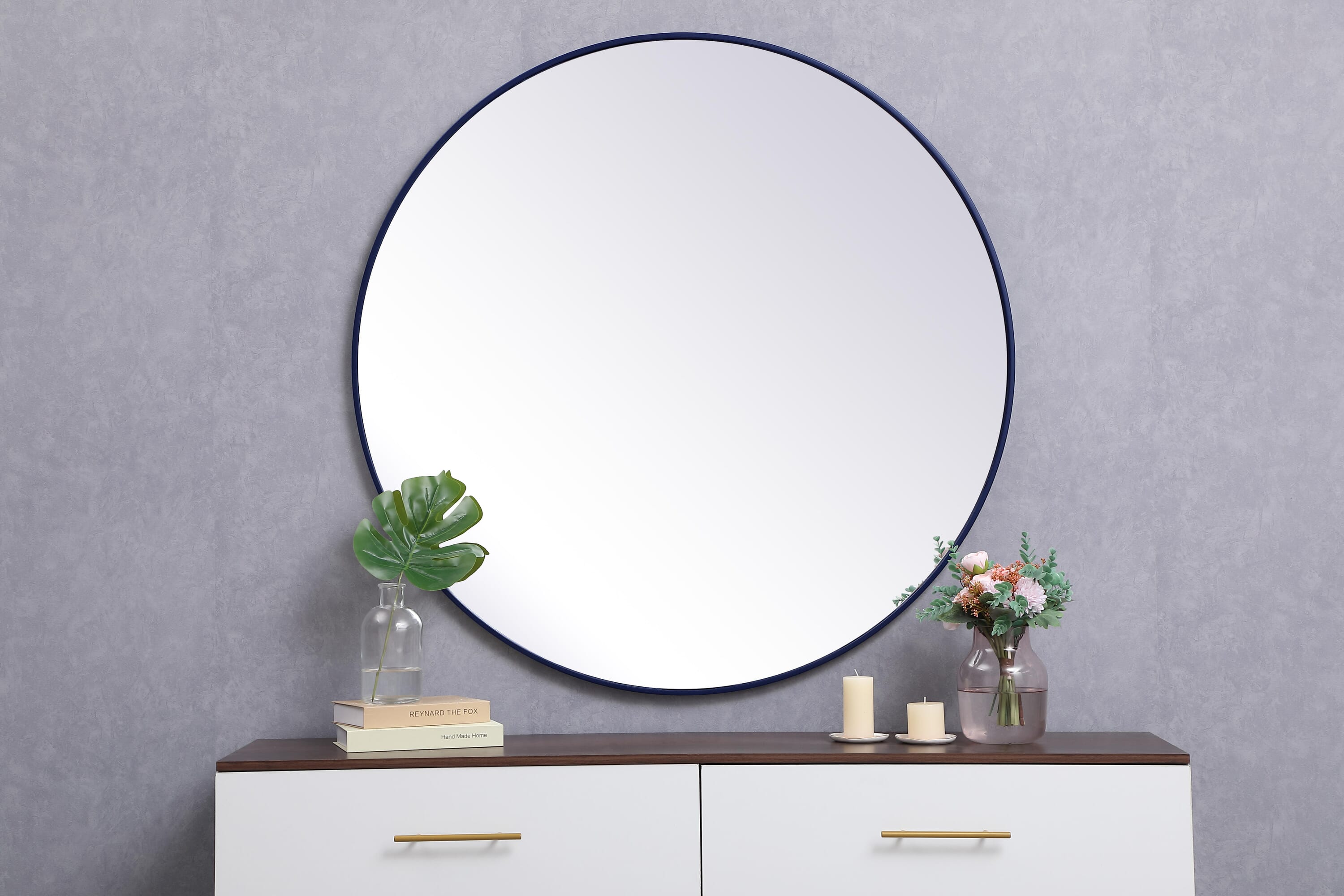 Dimensions Length: 45" Width: 1" Height: 45" Depth: 1" Specifications Product Type: Vanity Mirrors Wire Included: No Harware Material: metal Fixture Material: Metal and MDF Product Shape: Round Assembly Required: No Distressed Finish: No Mirror Frame Shape: Round Mirror Hanging Orientation: Vertical and Horizontal Mirror Mounting: Metal Inset hanger Mirror Type: clear mirror Frameless: No Weight: 31.7 Product Warranty: 1 year limited Shipment type: Oversized Ground