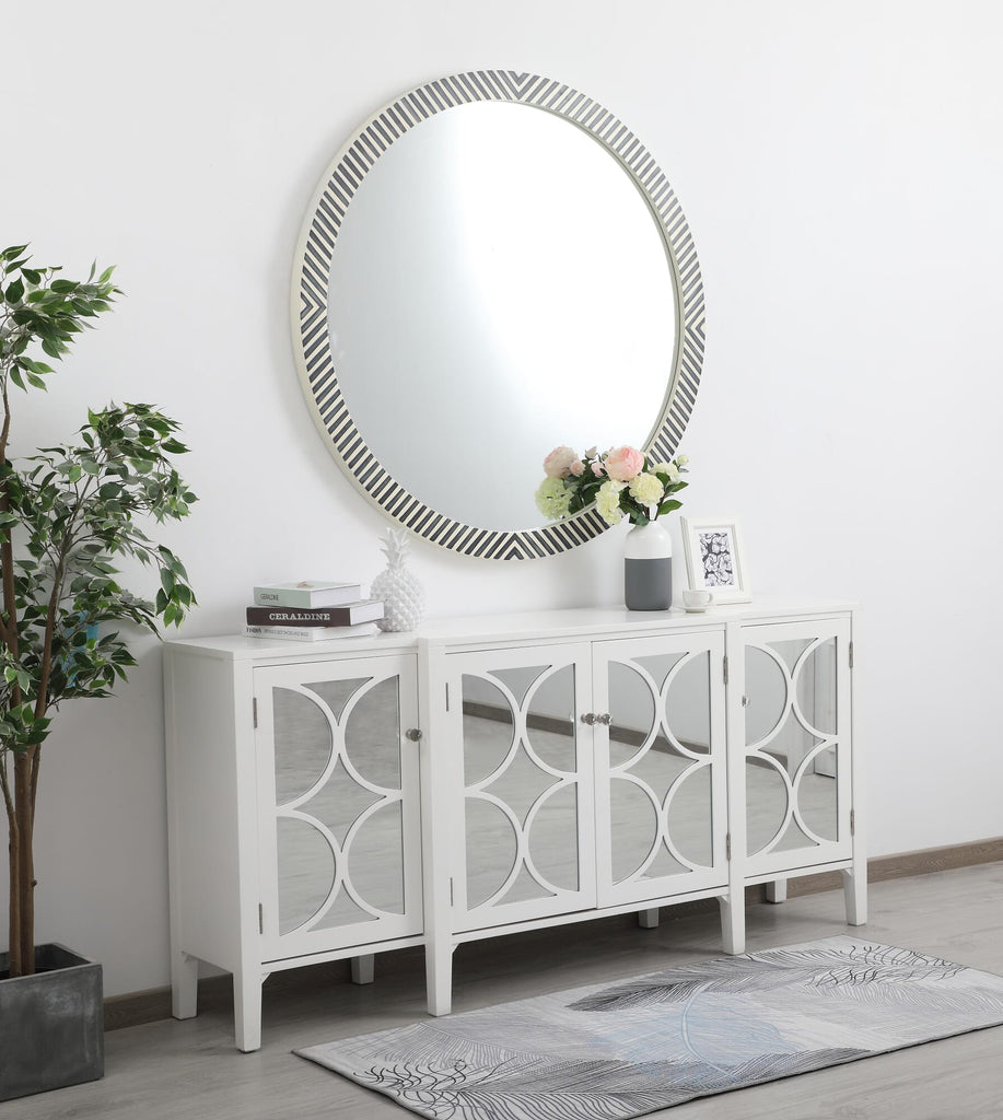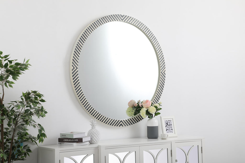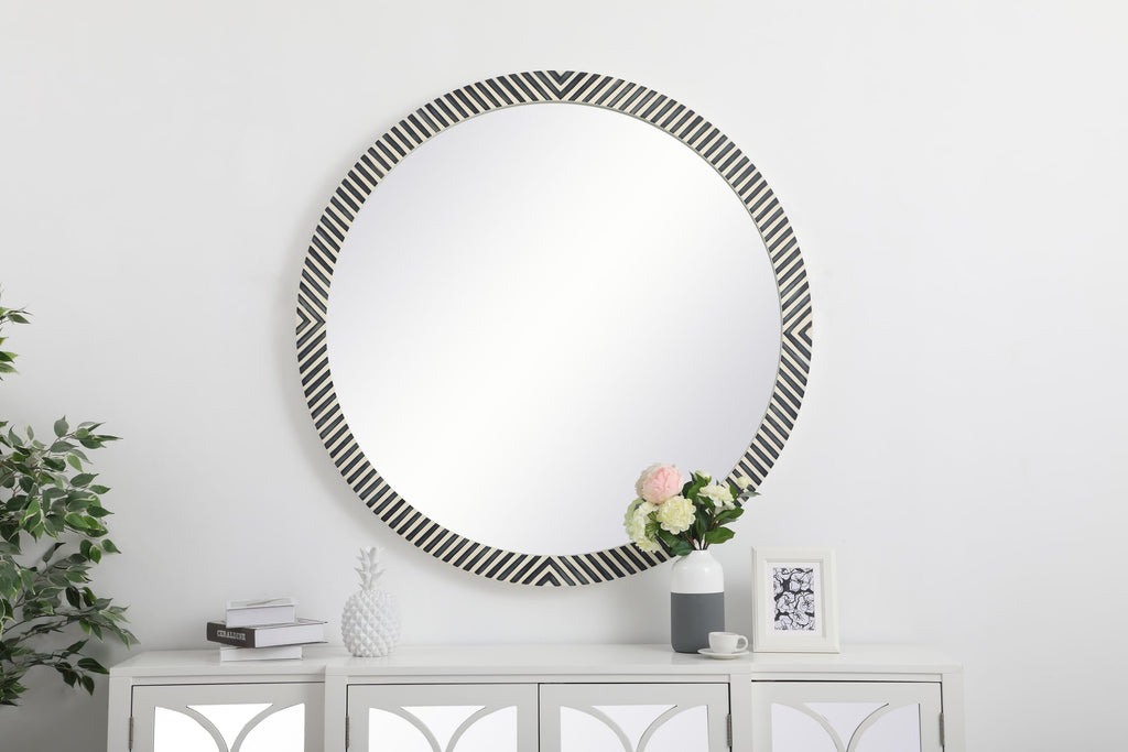 Dimensions Length: 48" Width: 2" Height: 48" Depth: 2" Specifications Product Type: Vanity Mirrors Wire Included: No Fixture Material: Glass and Wood Product Shape: Round Assembly Required: No Mirror Frame Shape: round Mirror Hanging Orientation: Vertical Mirror Mounting: Metal hook Mirror Type: Clear mirror Frameless: NO Weight: 20.6 Product Warranty: 1 year limited Shipment type: LTL