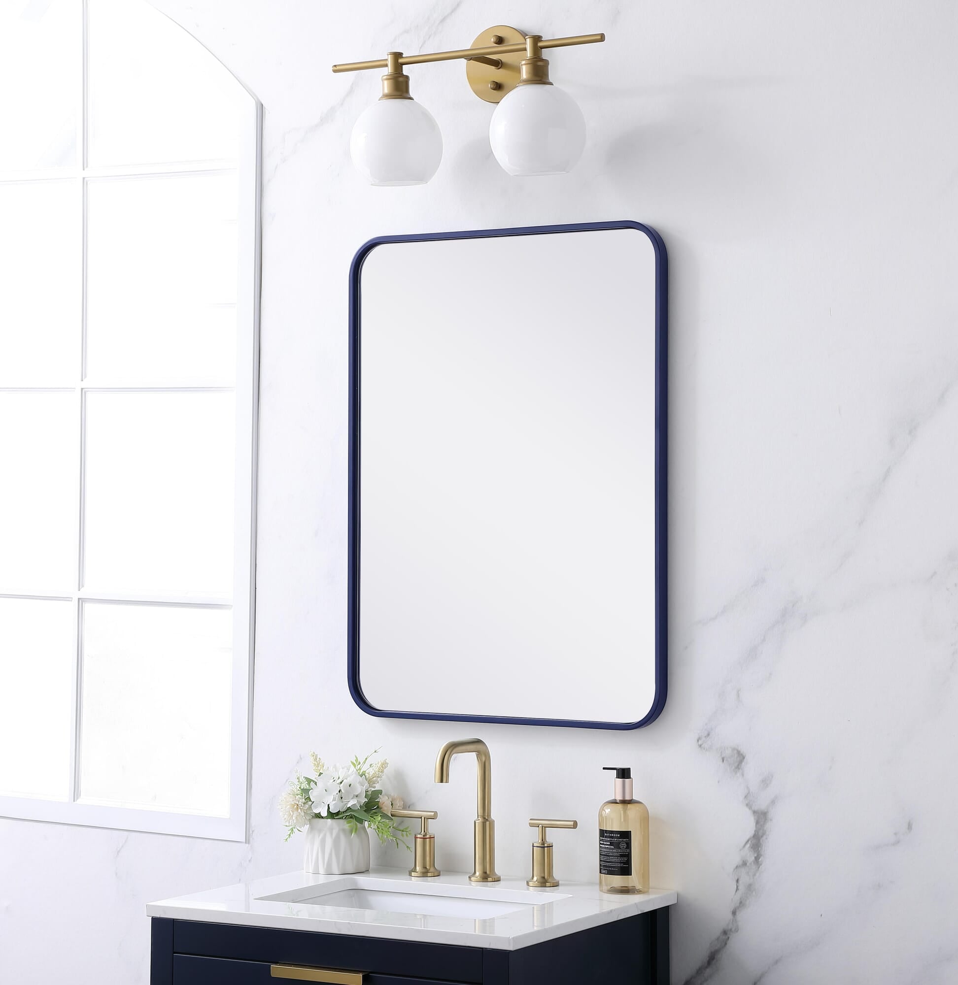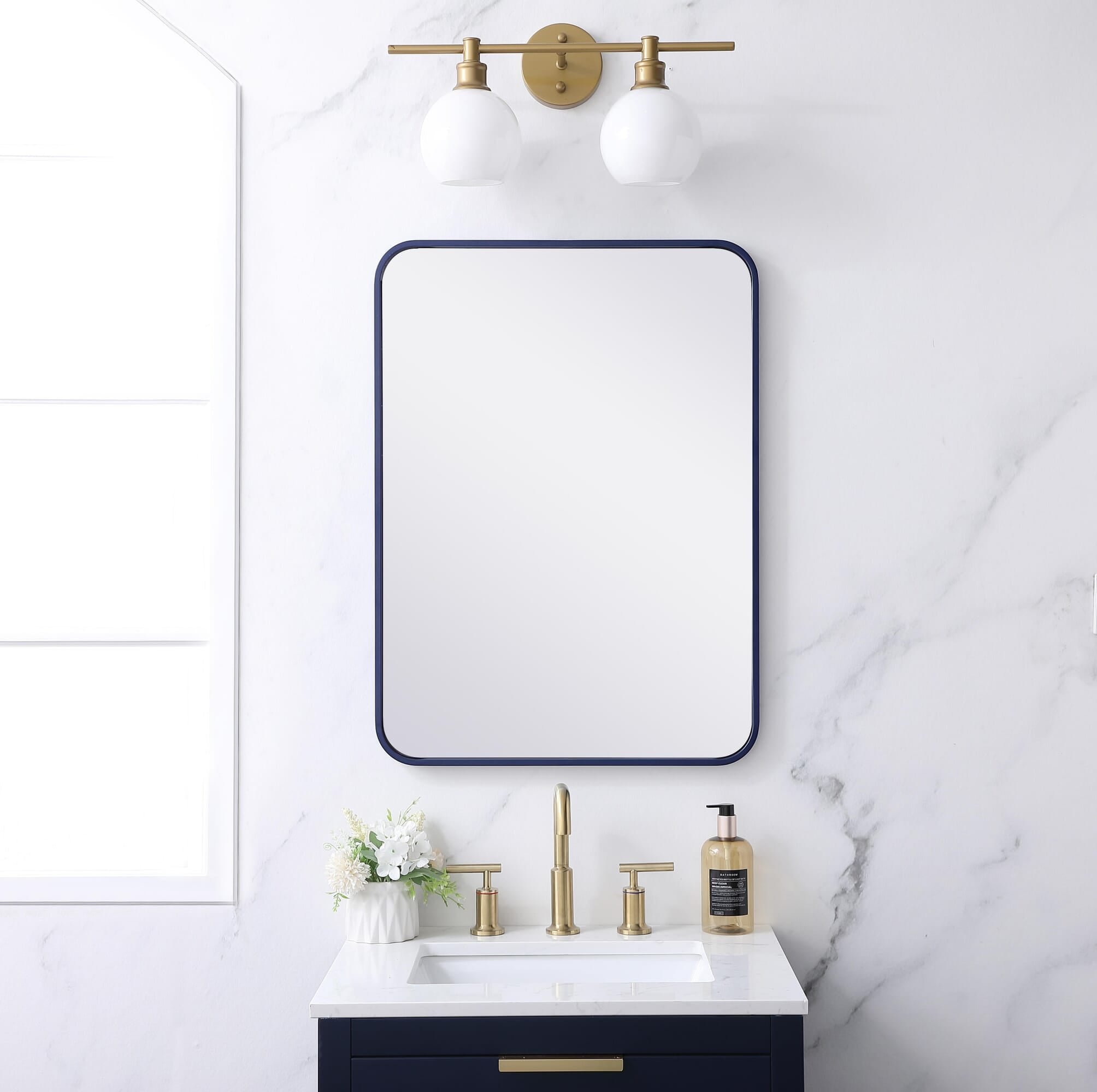 Dimensions Length: 22" Width: 1" Height: 30" Specifications Product Type: Vanity Mirrors Wire Included: No Harware Material: Metal Fixture Material: Metal and MDF Product Shape: Rectangle Assembly Required: no Distressed Finish: No Hardware Finish: Blue Mirror Frame Shape: Rectangle Mirror Hanging Orientation: Vertical and Horizontal Mirror Mounting: Metal Inset hanger Frameless: No Weight: 14 Product Warranty: 1 year limited Shipment type: Small Parcel