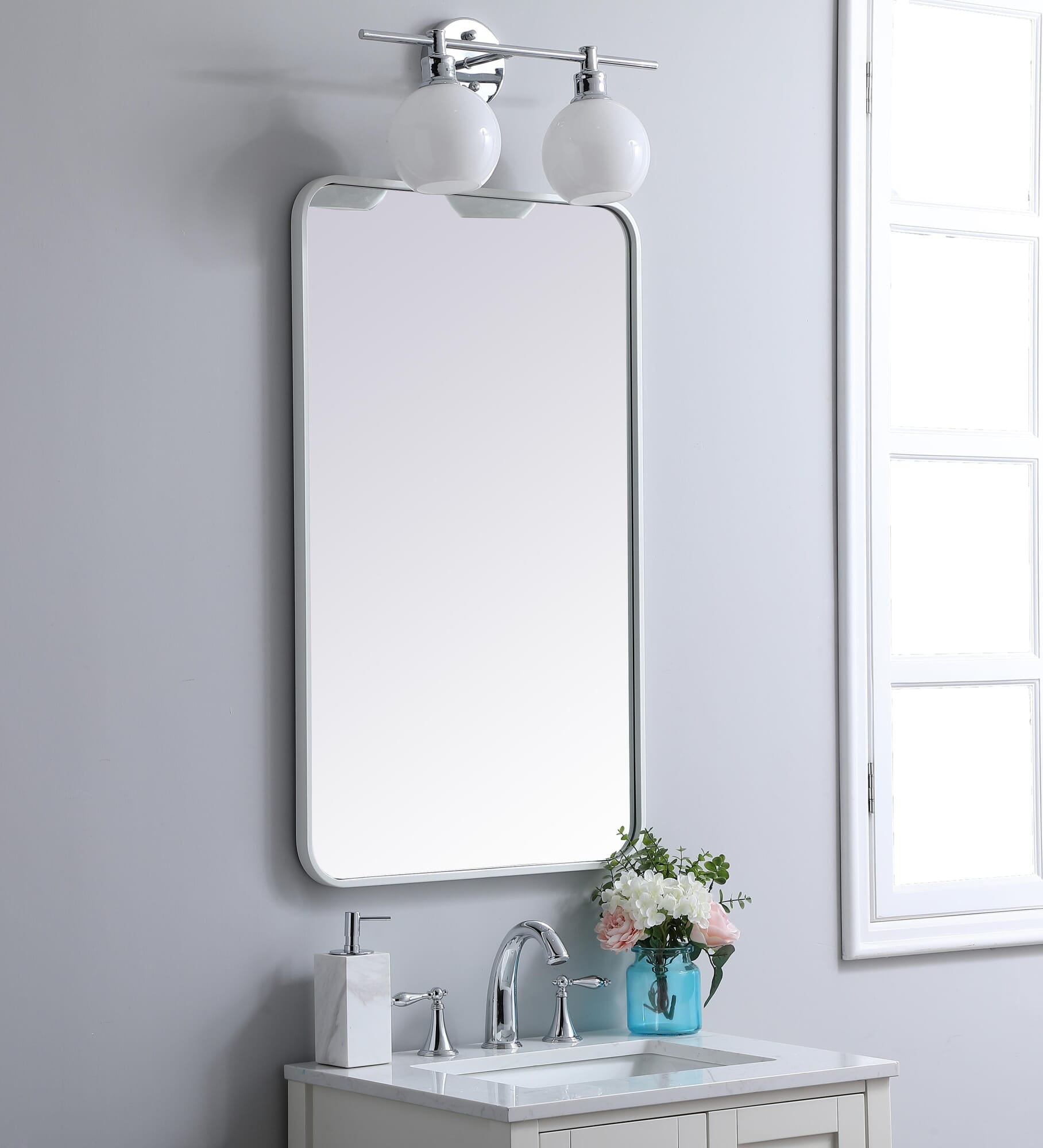 Dimensions Length: 22" Width: 1" Height: 36" Specifications Product Type: Vanity Mirrors Wire Included: No Harware Material: Metal Fixture Material: Metal and MDF Product Shape: Rectangle Assembly Required: no Distressed Finish: No Hardware Finish: White Mirror Frame Shape: Rectangle Mirror Hanging Orientation: Vertical and Horizontal Mirror Mounting: Metal Inset hanger Frameless: No Weight: 17 Product Warranty: 1 year limited Shipment type: Small Parcel